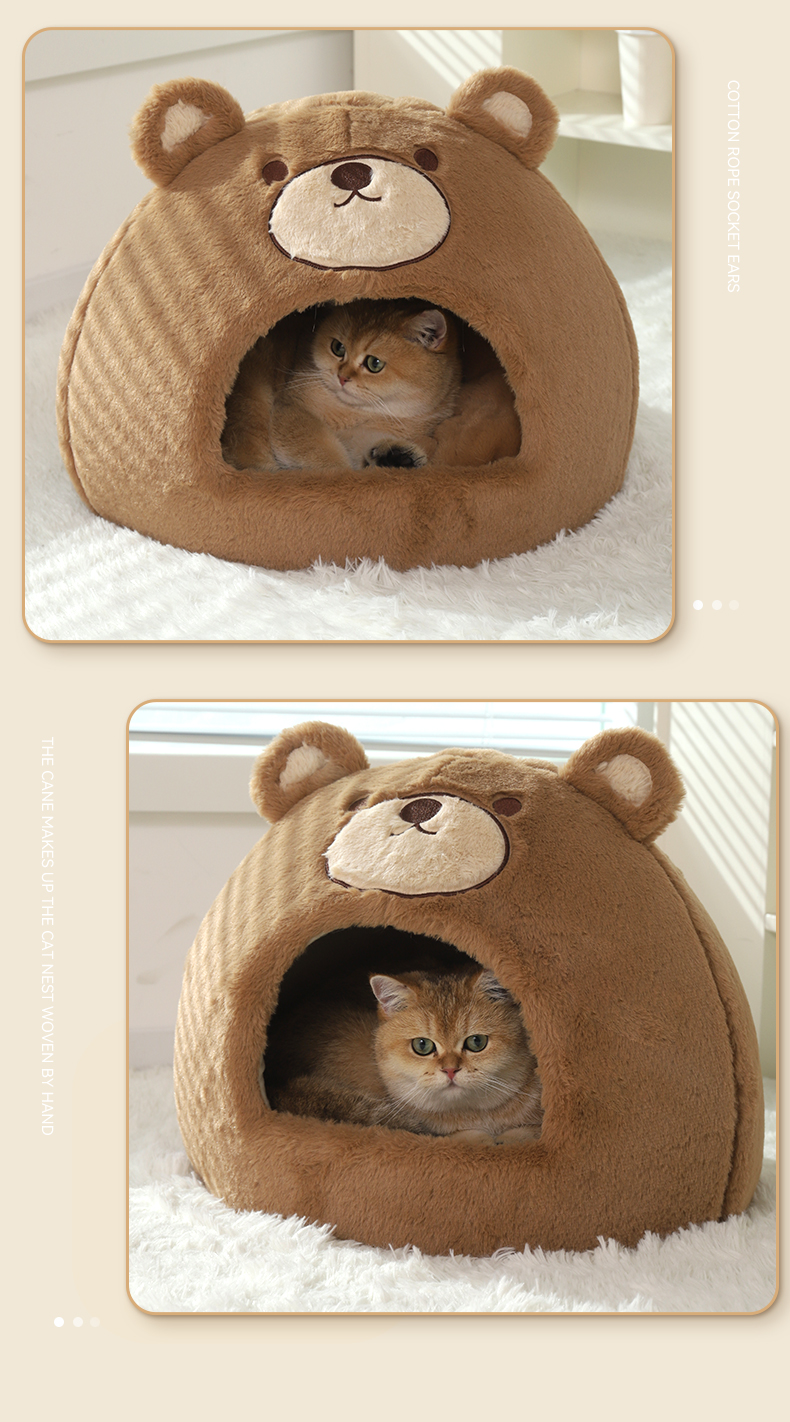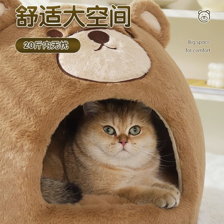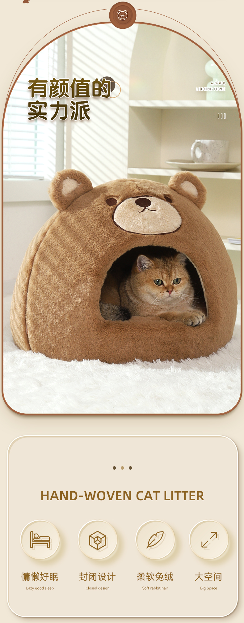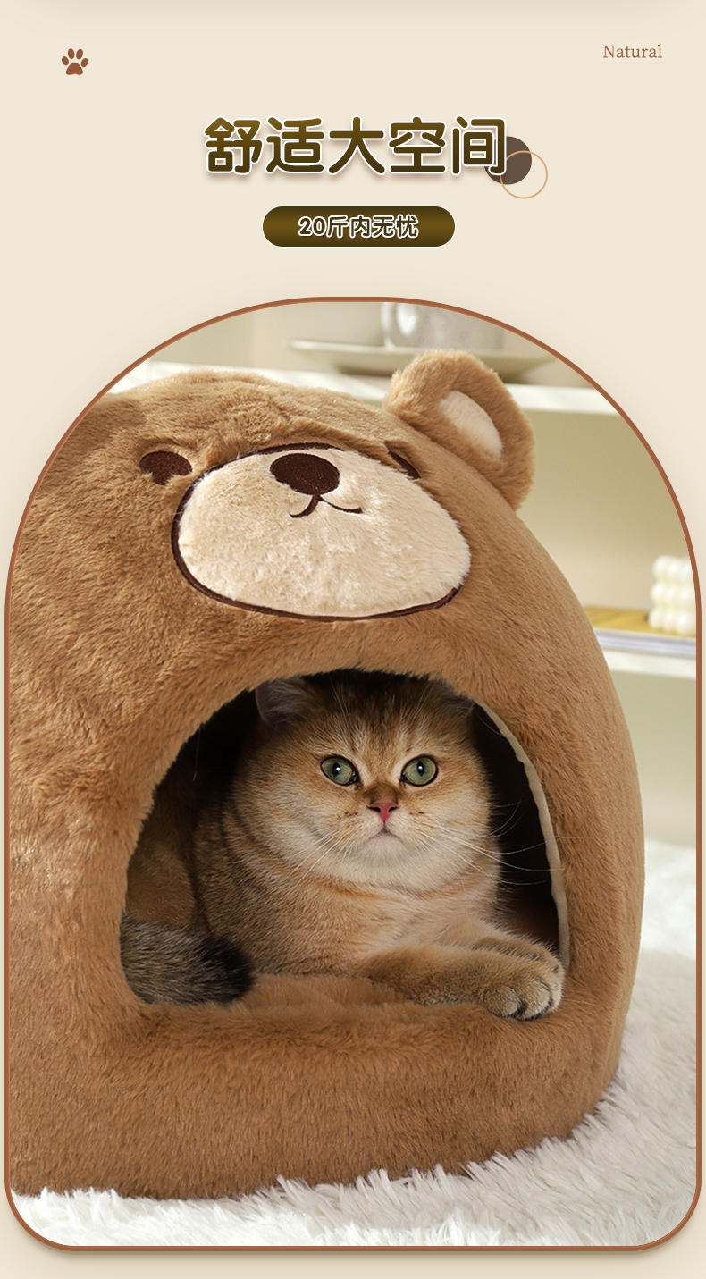 【品名】:咖色小熊蒙古包窝(S/M)/好暖椰-猫咪睡袋(S/M)