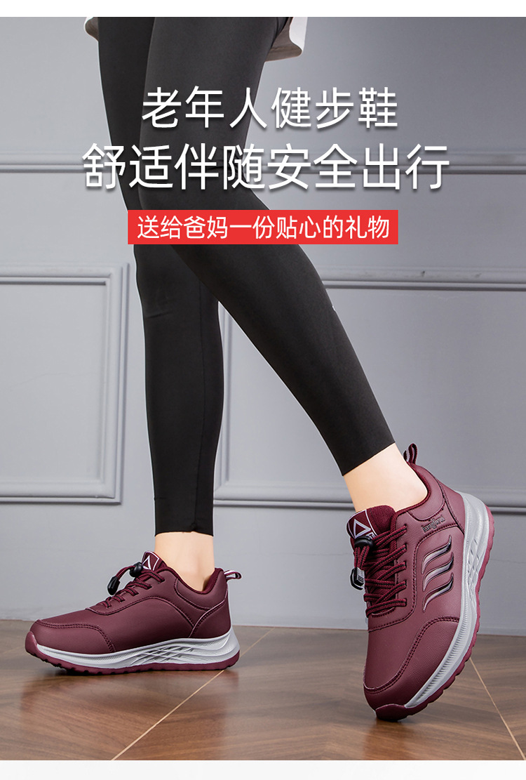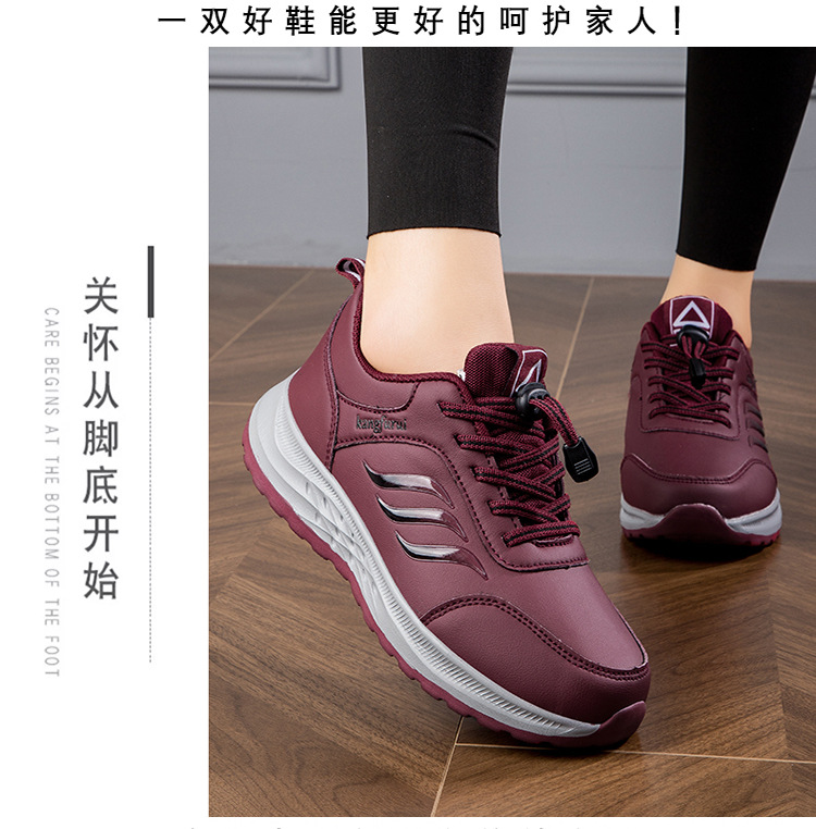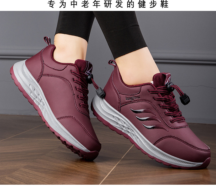 2023 Осенне-зимняя обувь для пожилых людей Женская кожаная непромокаемая прогулочная обувь для мам среднего возраста с расширенным и откормом, нескользящая кожаная обувь на мягкой подошве