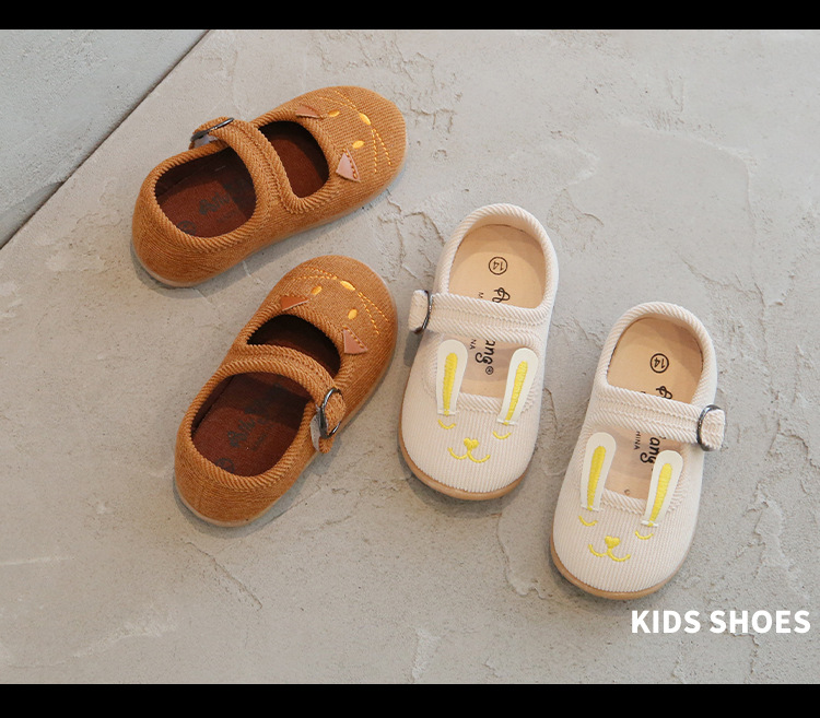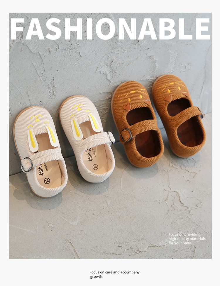 Весенняя коллекция 2025: Детские туфли в корейском стиле с квадратным носком и мультяшными рисунками кролика и кошки для девочек 1-7 лет (для малышей и дошкольников)