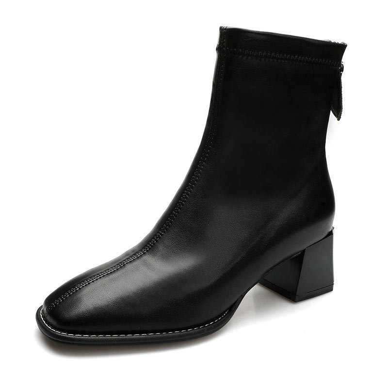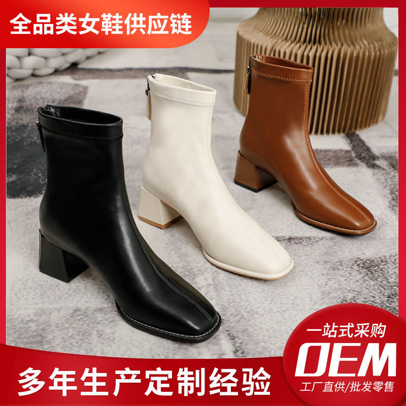 Индивидуальные женские короткие сапоги на высоком и массивном каблуке, новинка 2025 года, сапоги с французским квадратным носком, весенне-осенние сапоги, модные облегающие сапоги средней длины.