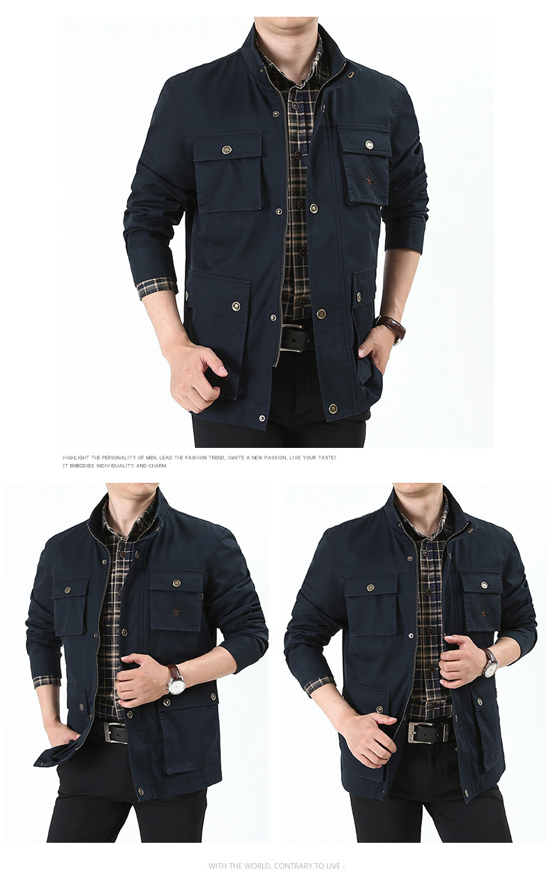 Весенне-осенняя новая куртка, Мужская куртка больших размеров, молодежная Повседневная куртка для спецодежды средней длины, весенне-осенняя куртка больших размеров 8566
