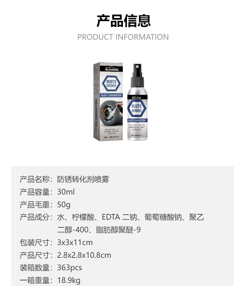 Rayhong антикоррозийный конверсионный агент спрей для автомобильных колес стальное кольцо дверной замок очистка Удаление ржавчины ремонтная смазка