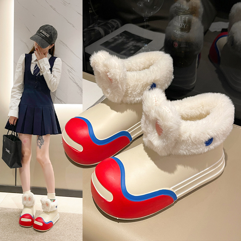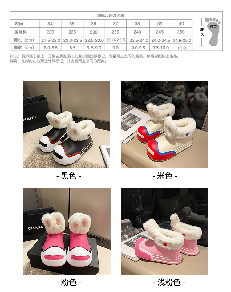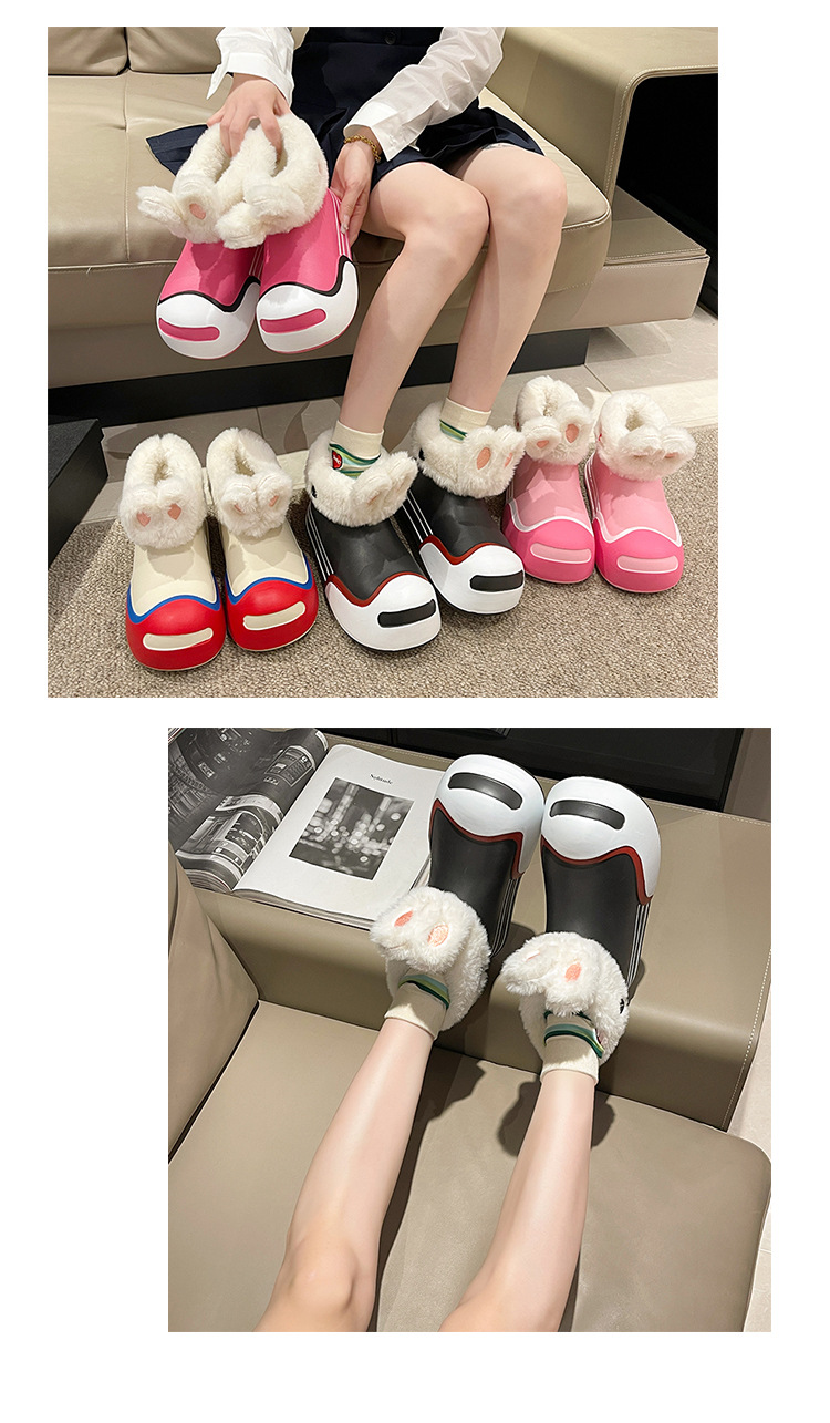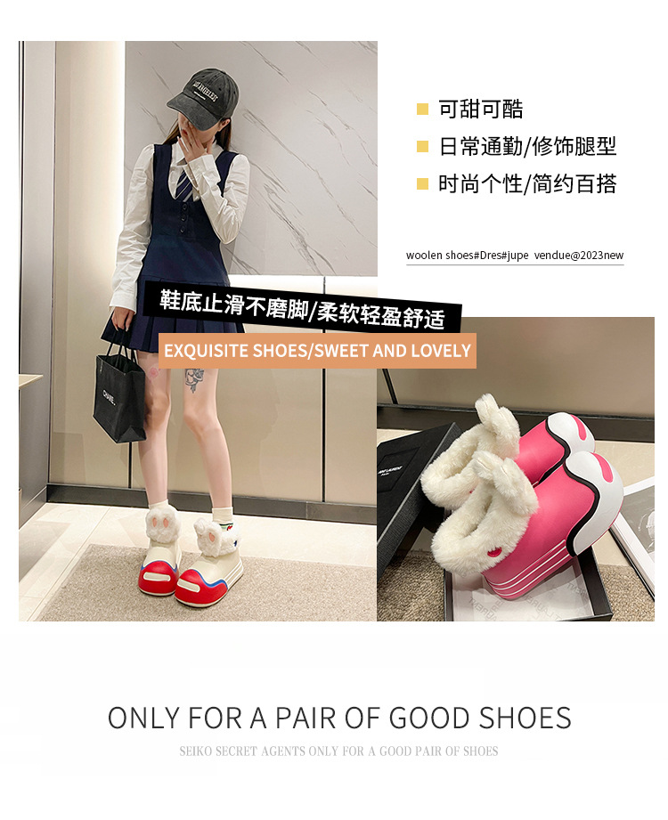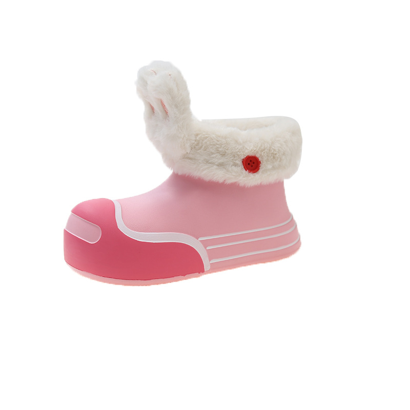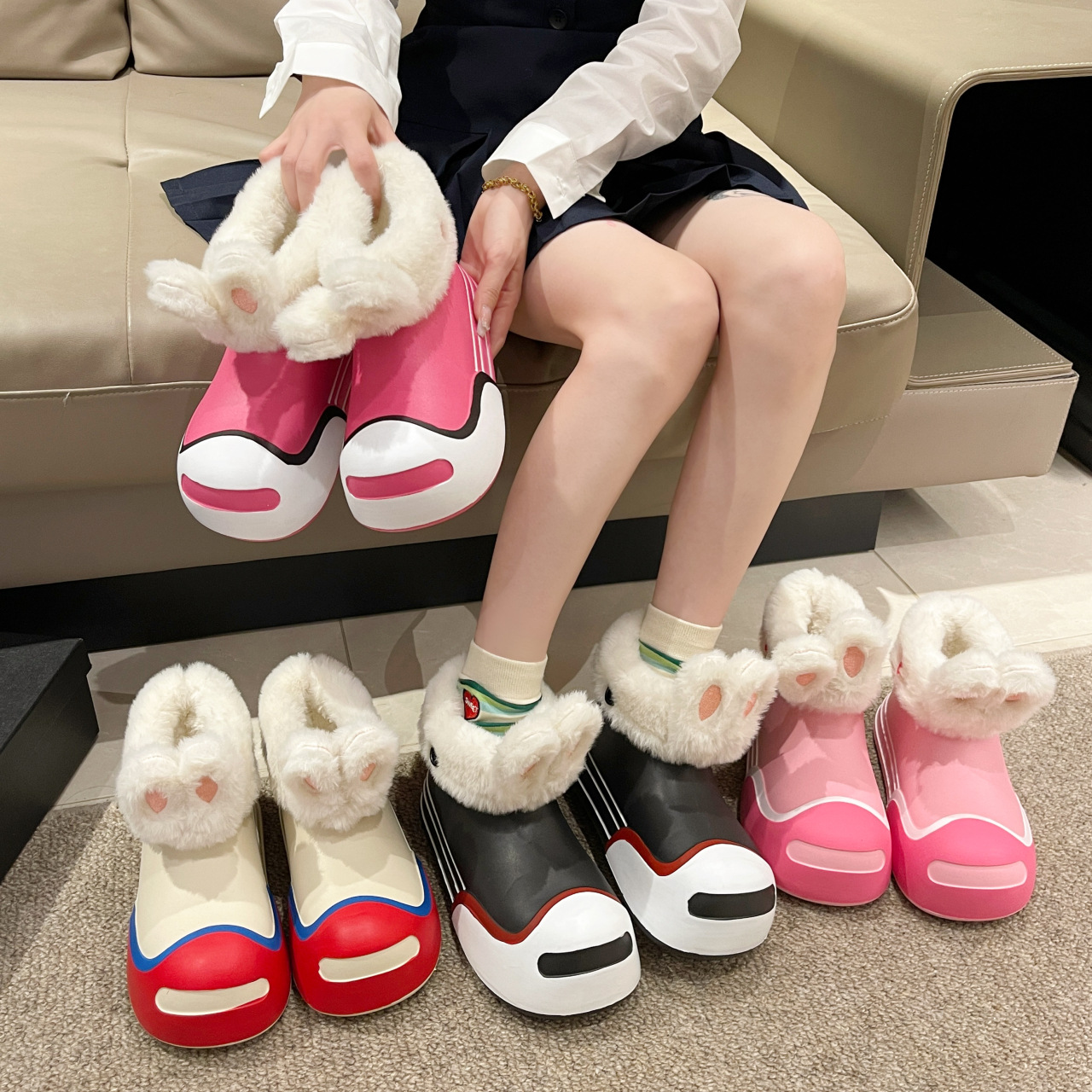 Новые резиновые сапоги средней трубы, женские осенне-зимние сапоги с шерстяной флисовой подкладкой, универсальные модные зимние сапоги с милыми маленькими кроликами