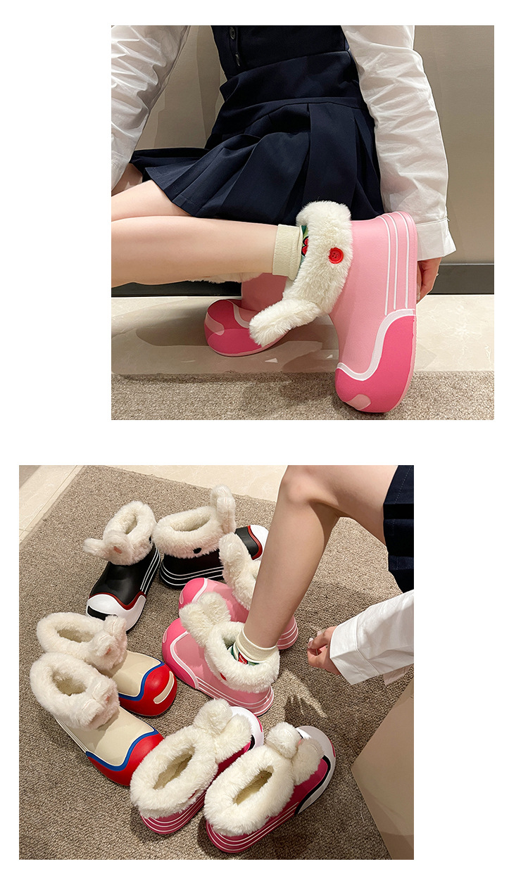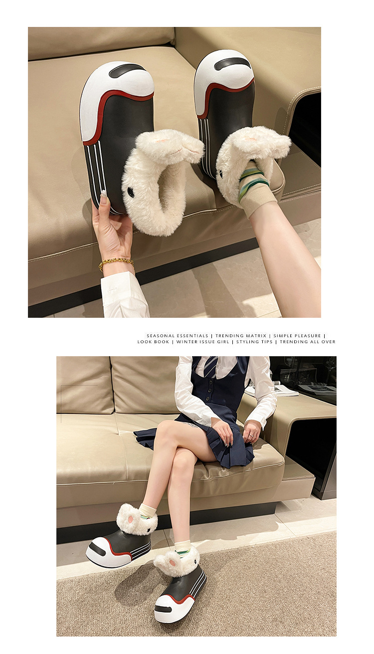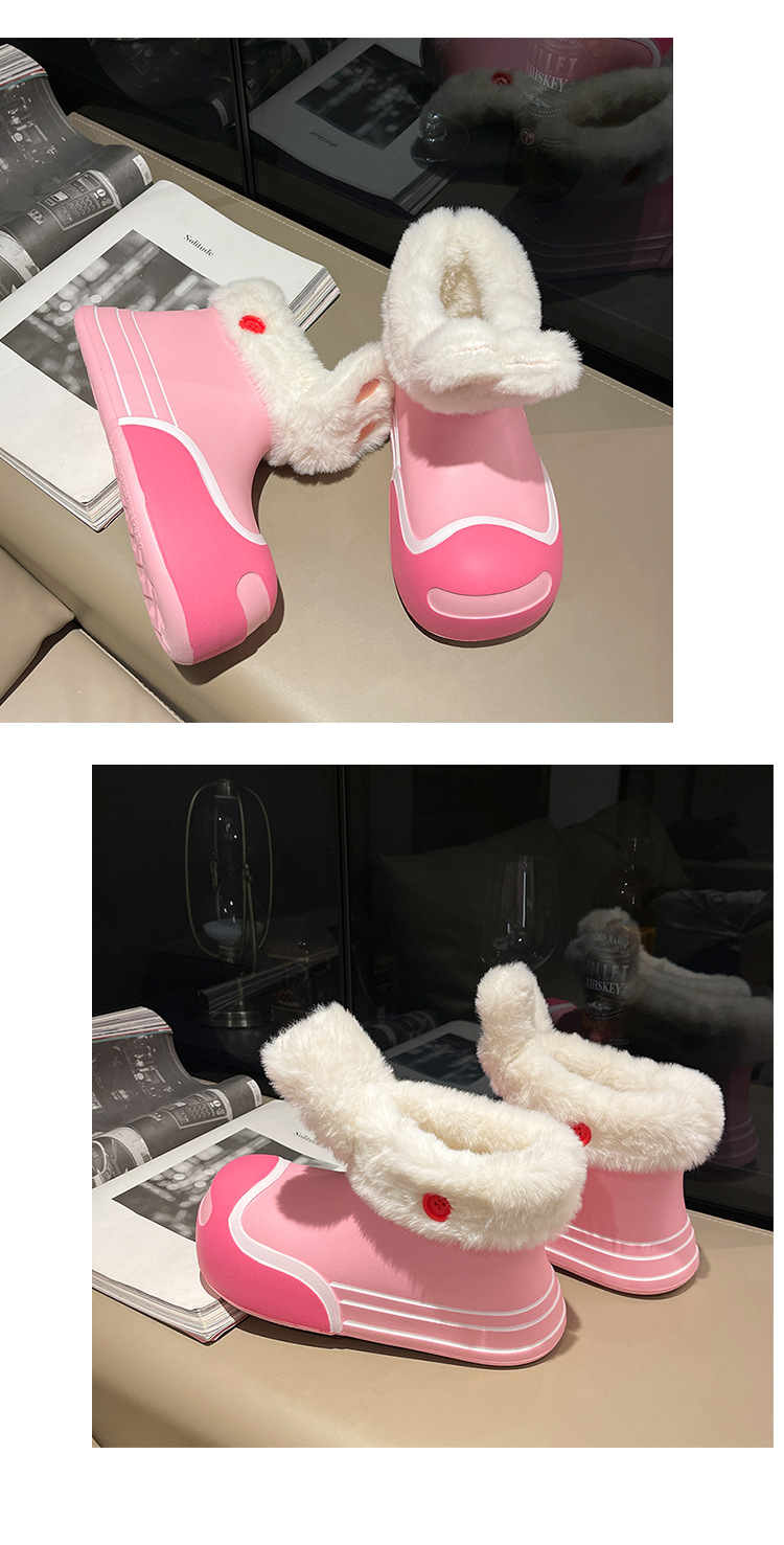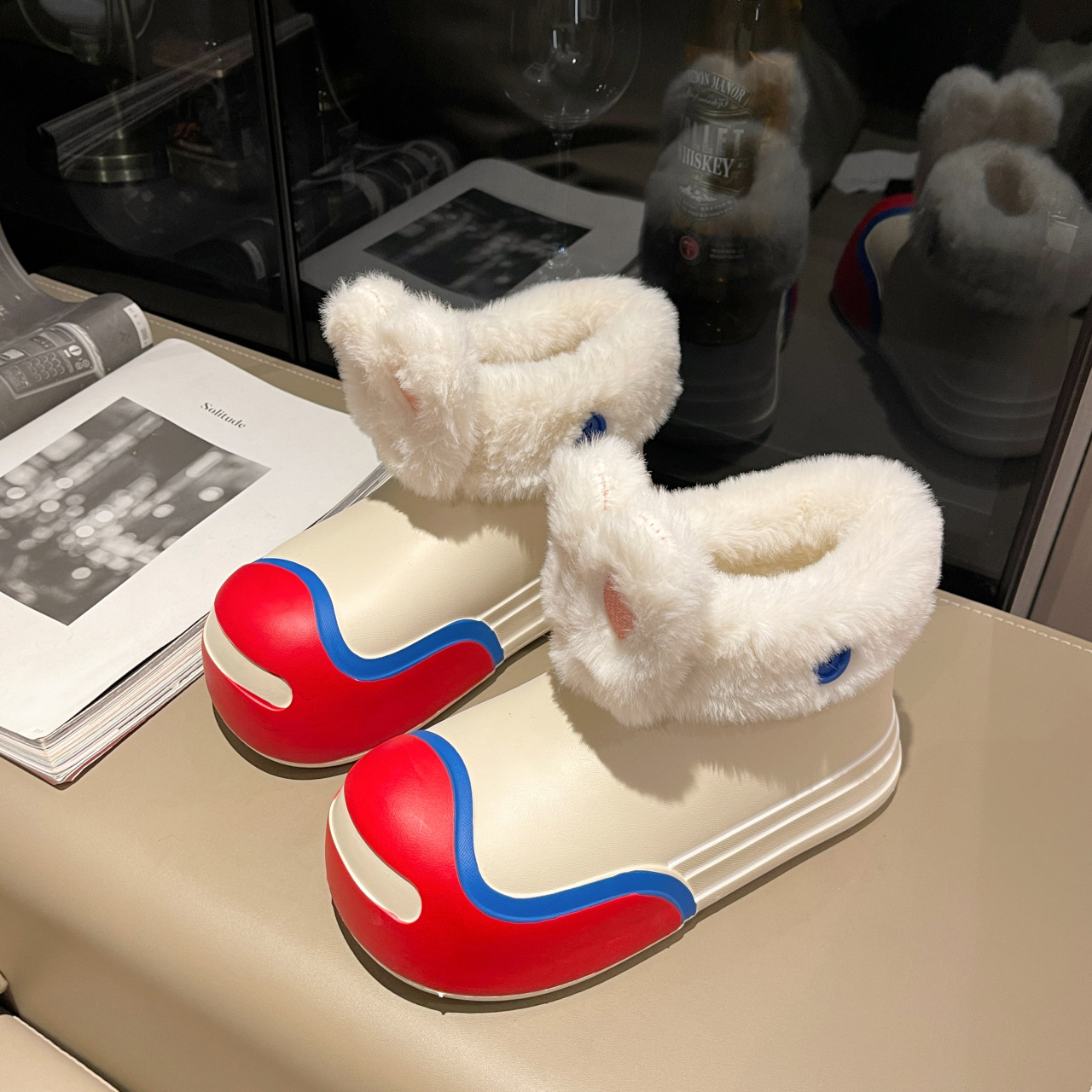 Новые резиновые сапоги средней трубы, женские осенне-зимние сапоги с шерстяной флисовой подкладкой, универсальные модные зимние сапоги с милыми маленькими кроликами