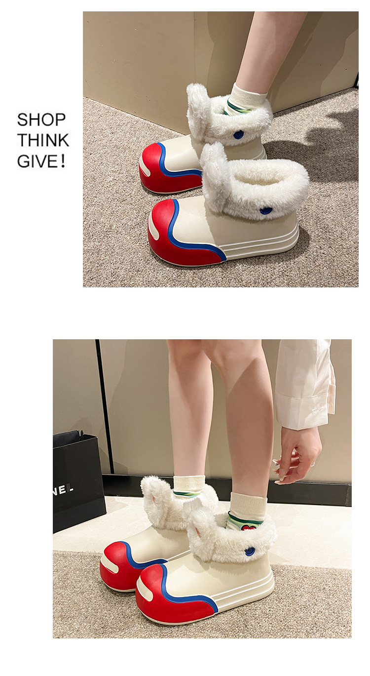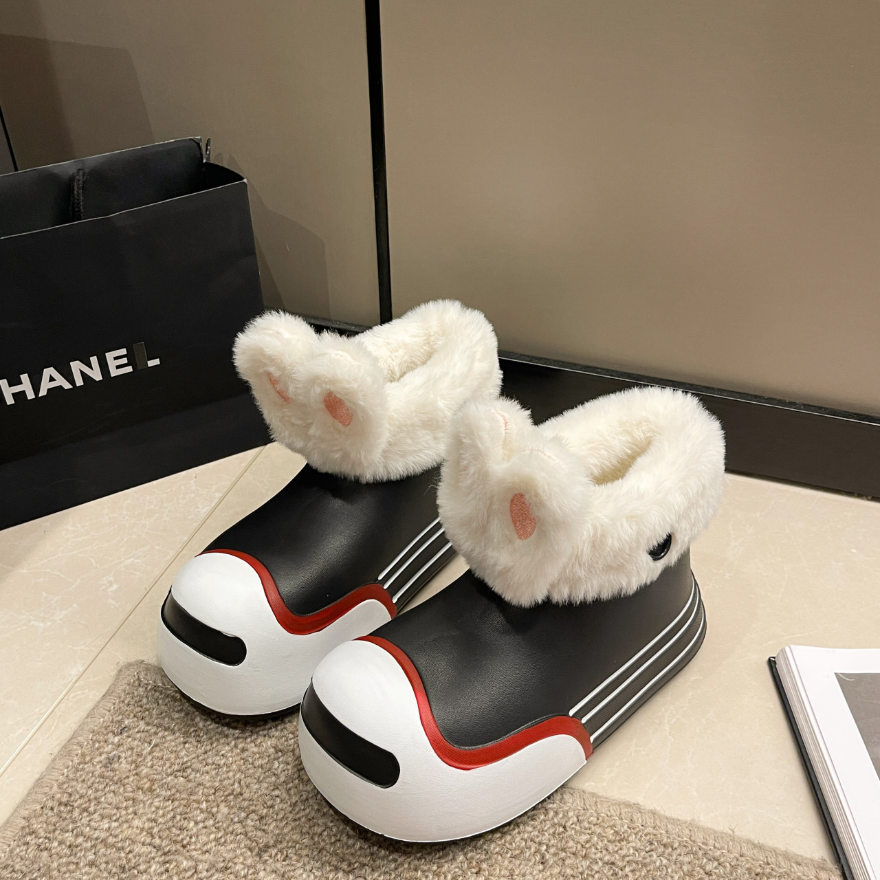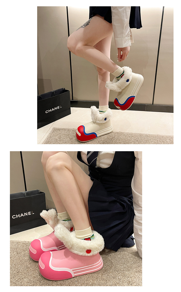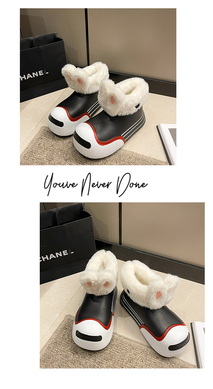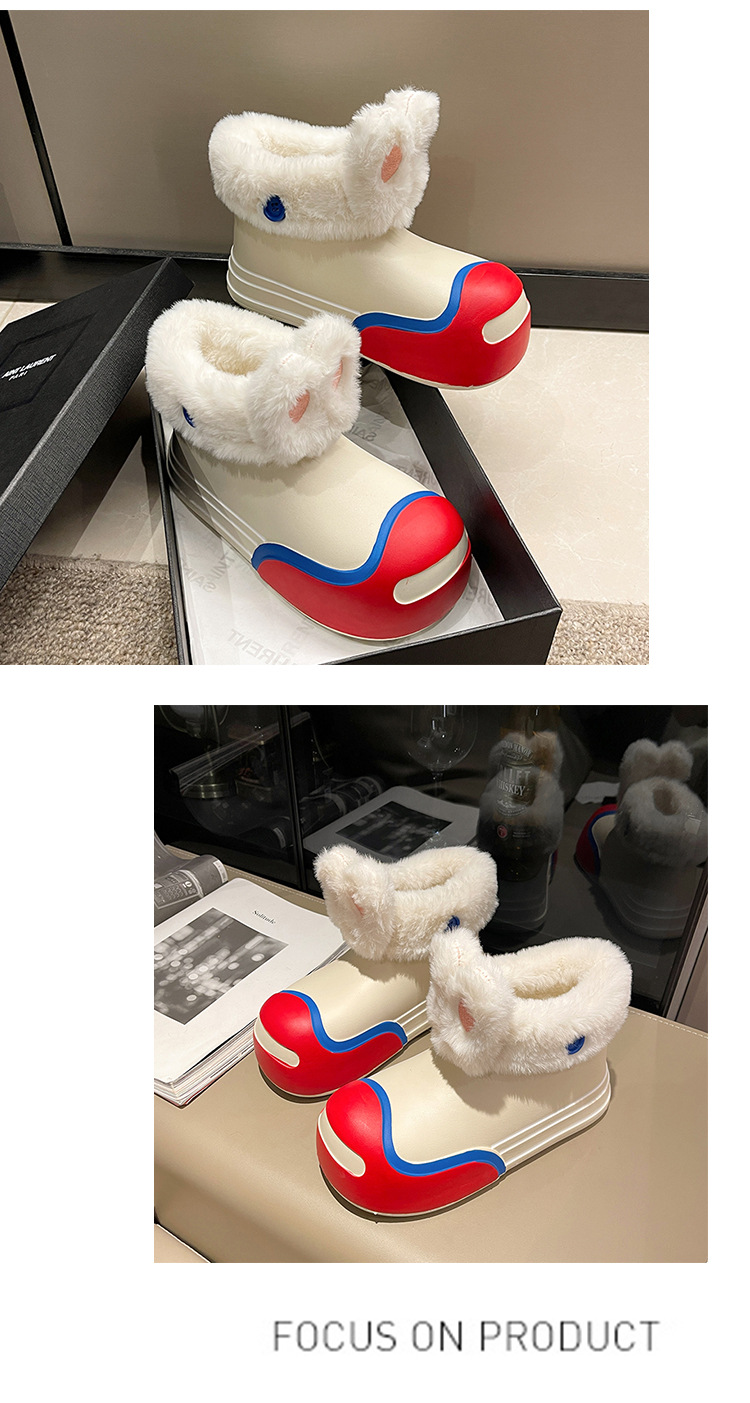 Новые резиновые сапоги средней трубы, женские осенне-зимние сапоги с шерстяной флисовой подкладкой, универсальные модные зимние сапоги с милыми маленькими кроликами