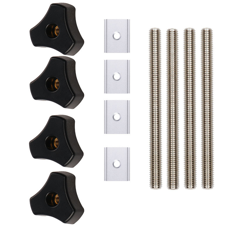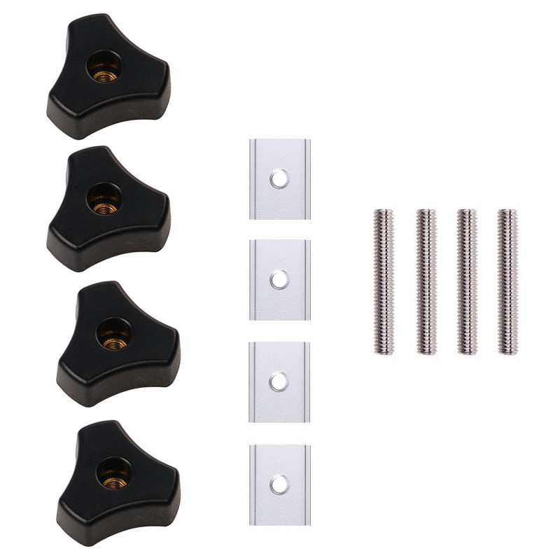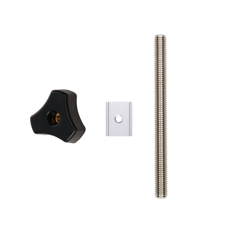 1 ручка M8 1 винт T; 4 шт. T винты 4 шт. M8 ручки; 1 М8 ручка 1 М8 слайдер 1 штанга; 4 М8 ручки 4 М8 ползунки 4 штанги; 4 ручки M6; 4 ручки M8; 5 ползунков M6; 5 ползунков M8; 1 М6 ручка 1 М6 ползунок 1 штанга; 4 М6 ручки 4 М6 ползунки 4 штанги; 1 лист из алюминиевого сплава
