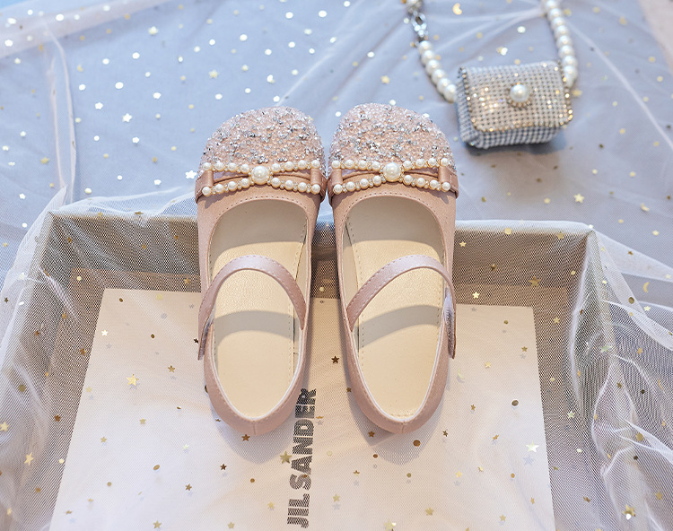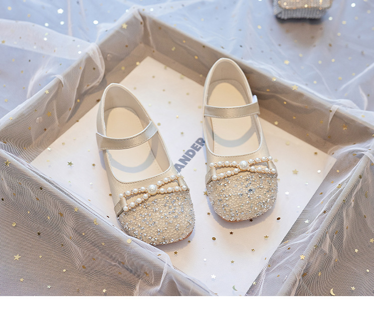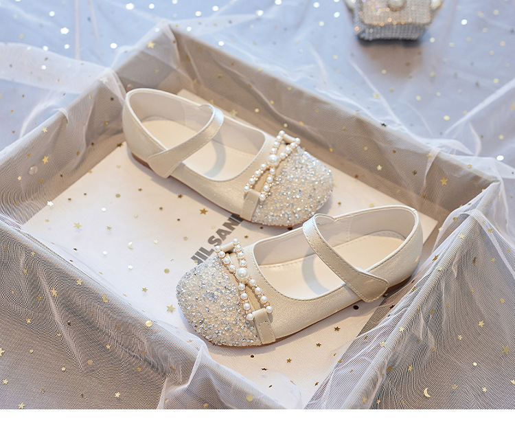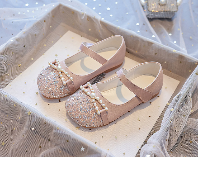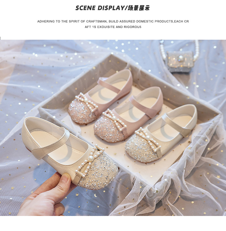 Детские туфли-балетки для девочек 2025 года, весна-осень, с блестками, из натуральной кожи, на мягкой подошве, подходят к платью, блестящие
