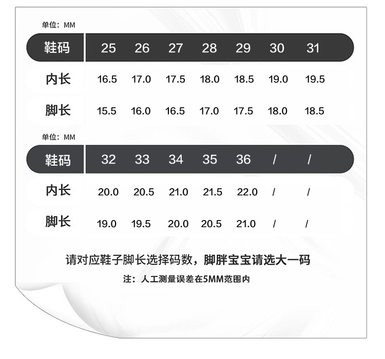 25 (внутренняя длина 16,5 см); 26 (внутренняя длина 17 см); 27 (внутренняя длина 17,5 см); 28 (внутренняя длина 18 см); 29 (внутренняя длина 18,5 см); 30 (внутренняя длина 19 см); 31 (внутренняя длина 19,5 см); 32 (внутренняя длина 20 см); 33 (внутренняя длина 20,5 см); 34 (внутренняя длина 21 см); 35 (внутренняя длина 21,5 см); 36 (внутренняя длина 22 см)