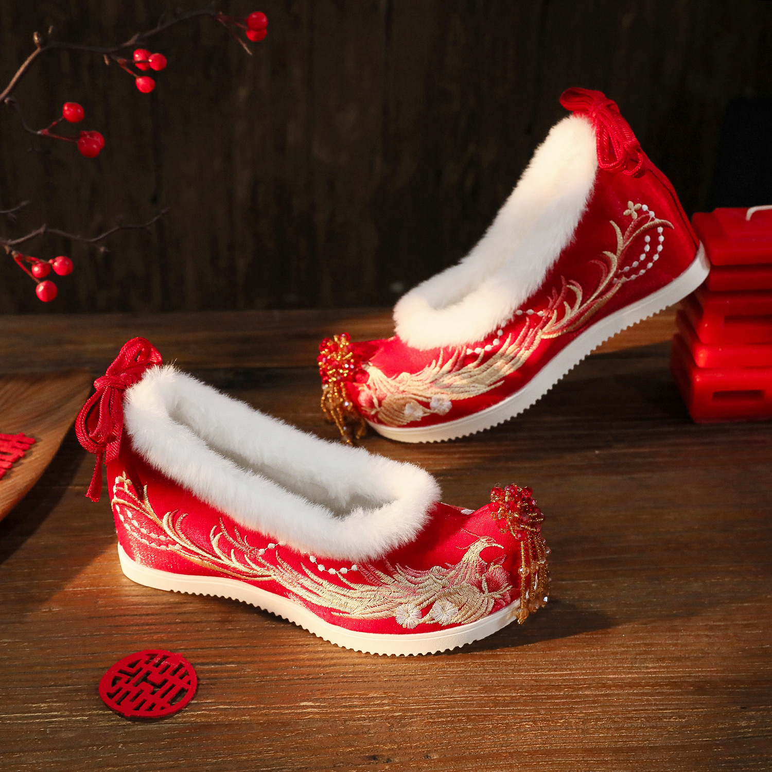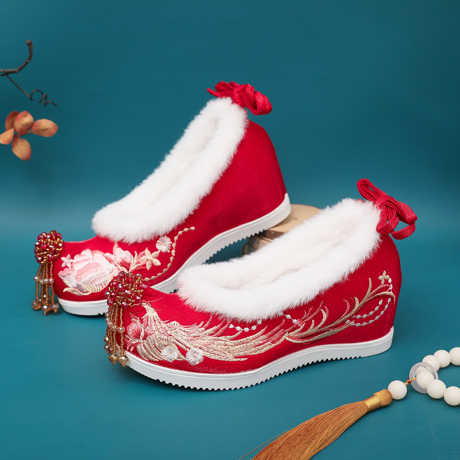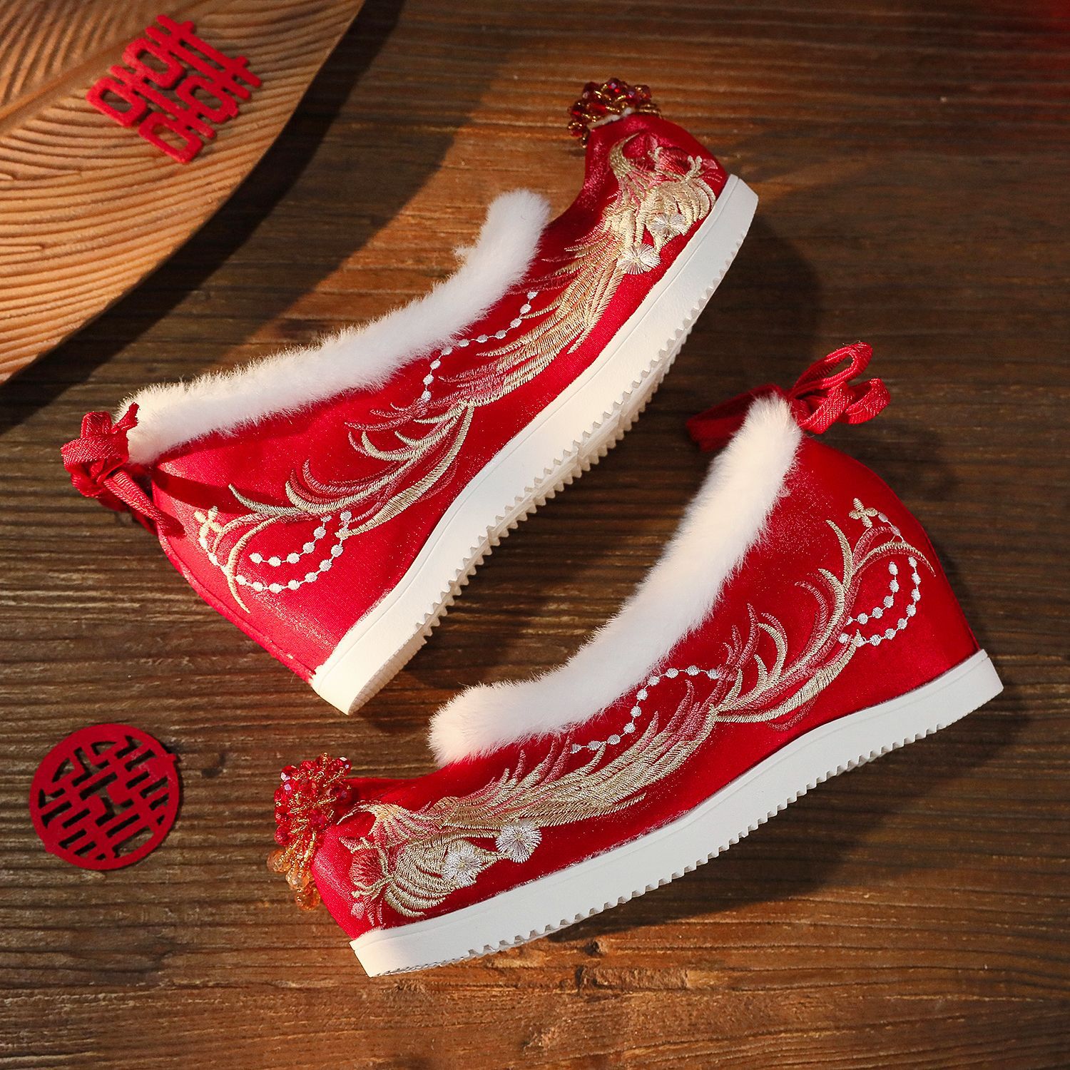 [Fenglaiyi] новые туфли ханьфу с кисточками в старинном стиле вышитые туфли невесты Xiuhe свадебные туфли в китайском стиле тканевые туфли для увеличения внутреннего роста