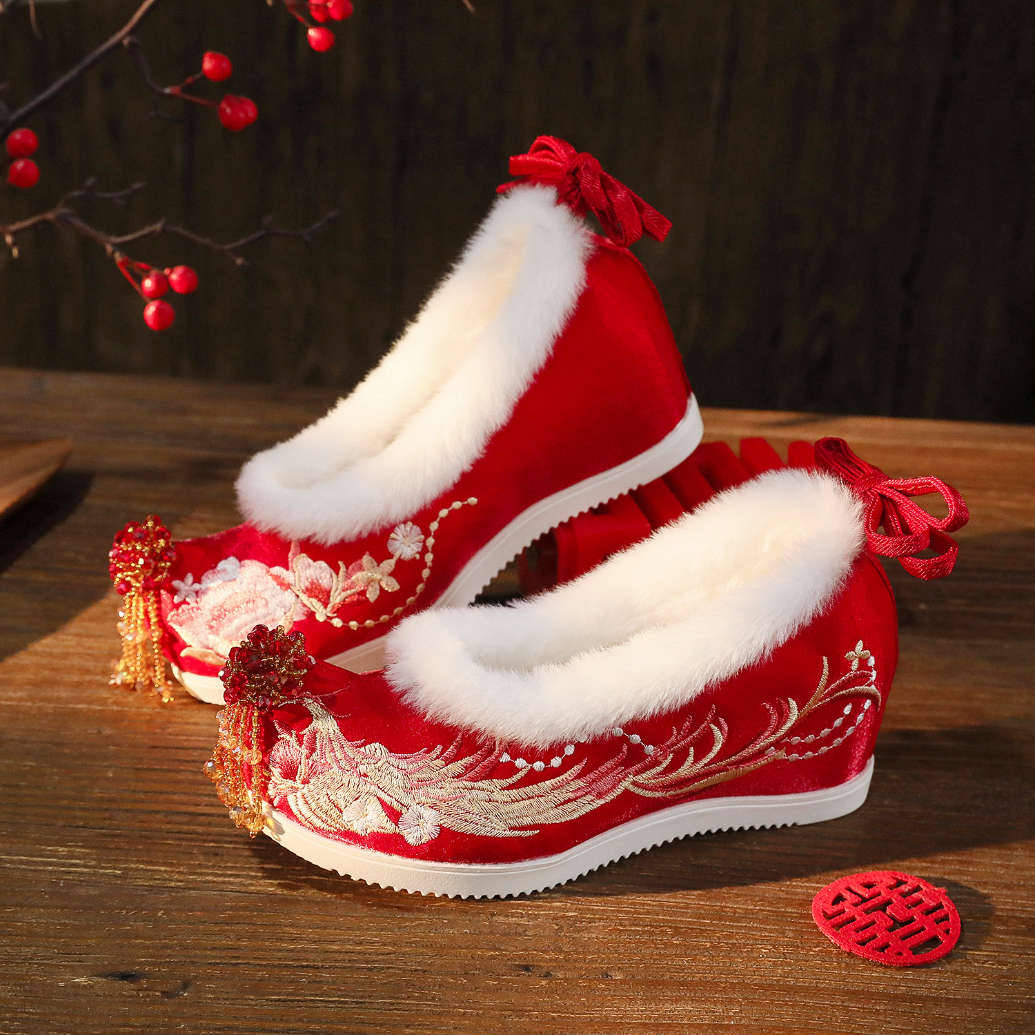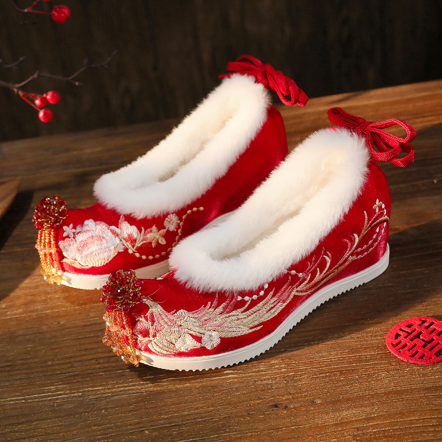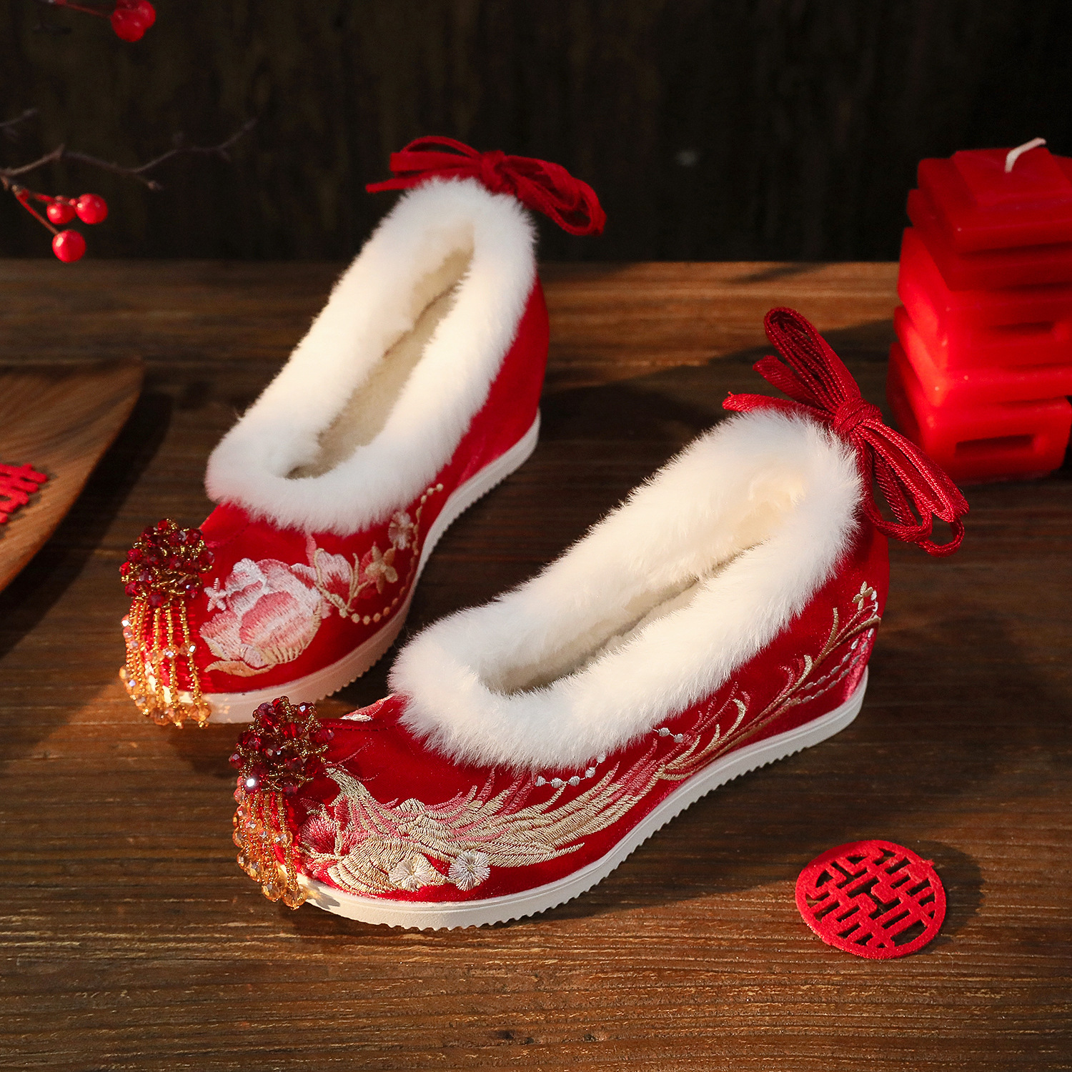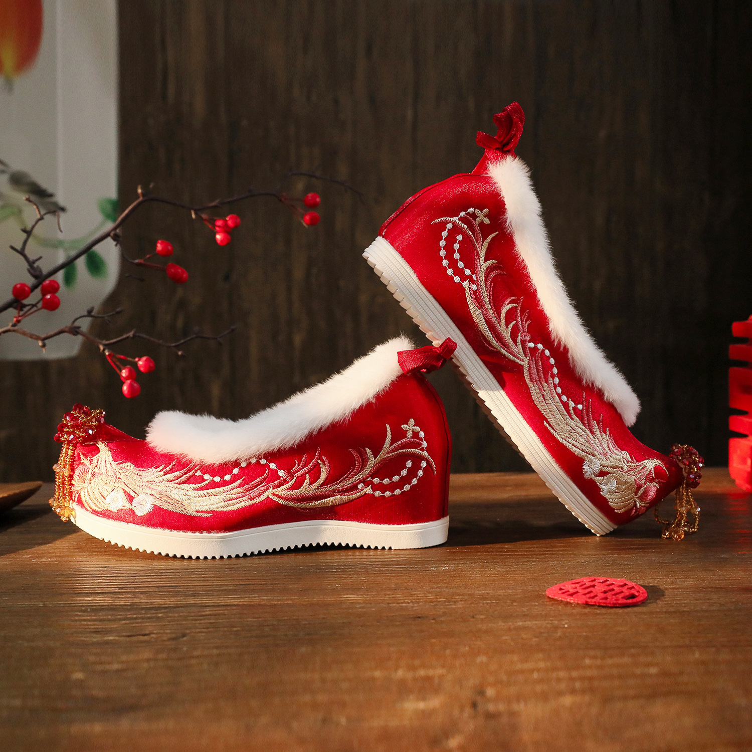 [Fenglaiyi] новые туфли ханьфу с кисточками в старинном стиле вышитые туфли невесты Xiuhe свадебные туфли в китайском стиле тканевые туфли для увеличения внутреннего роста
