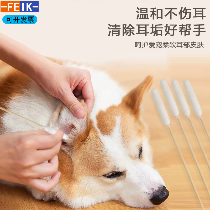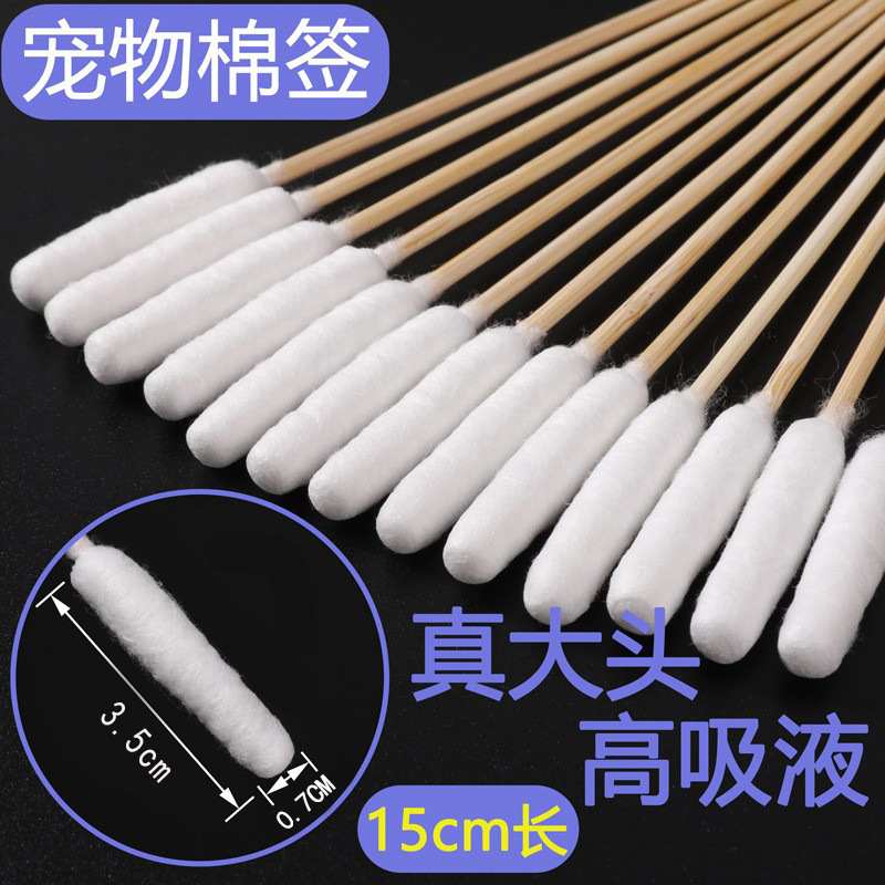 Чистка собак и кошек Ватный тампон с большой головой для домашних животных Удлиненная бамбуковая палочка Большая хлопковая чистка головы, ушей и ануса