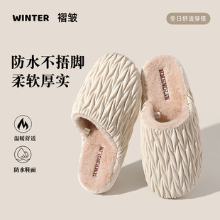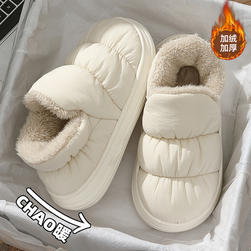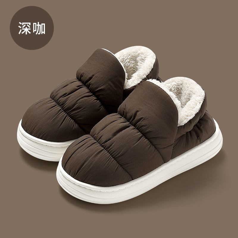 Водонепроницаемые хлопковые тапочки для женщин, зимние утепленные плюшевые домашние тапочки с закрытой пяткой для мужчин, оптом.