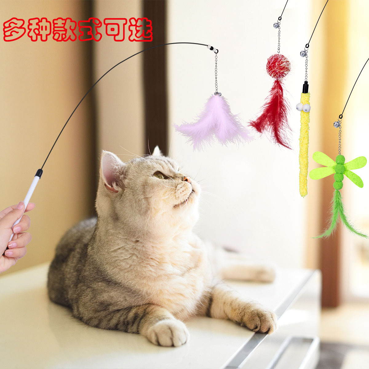 Забавная кошачья палочка прямо с фабрики оптом стальная проволока колокольчик перо эластичный стальной винтовой стержень кошка игрушка зоотовары кошка самостоятельно