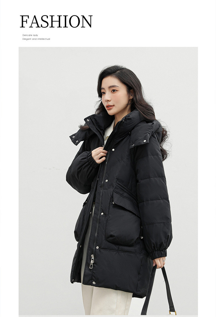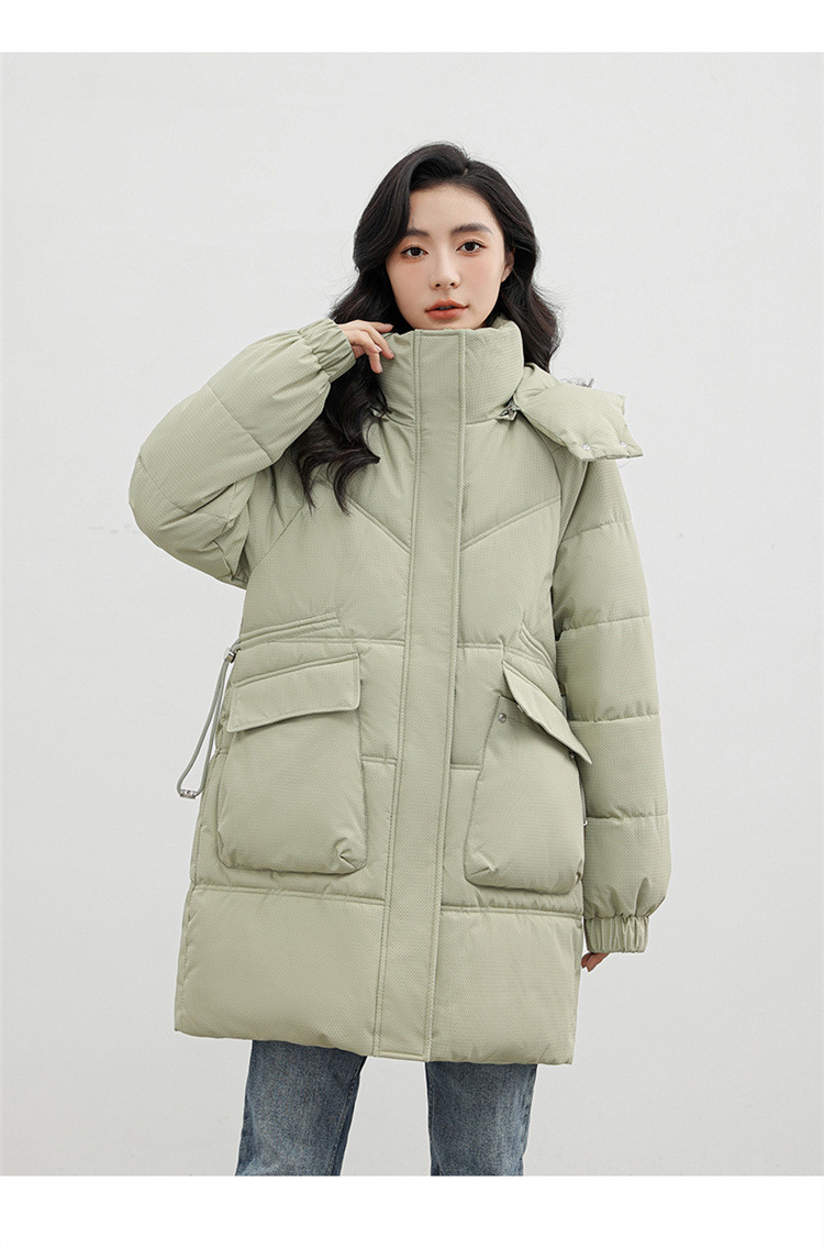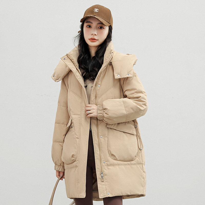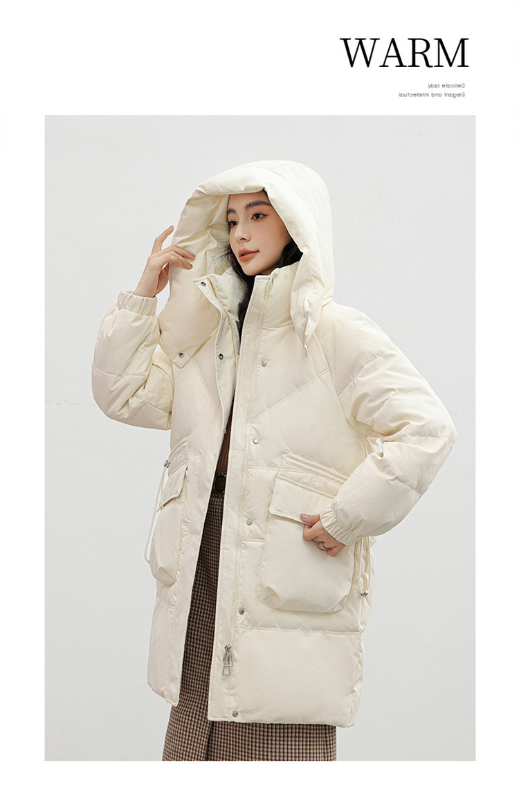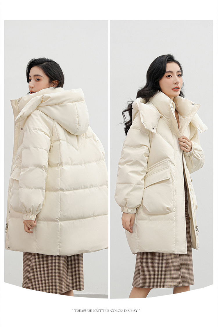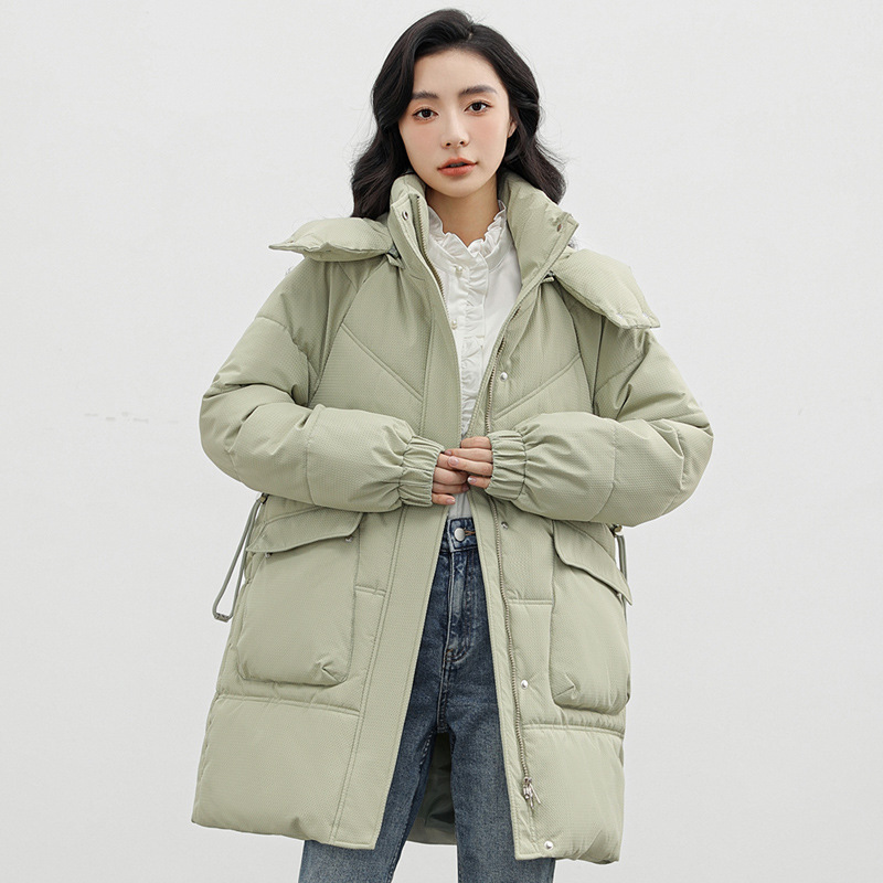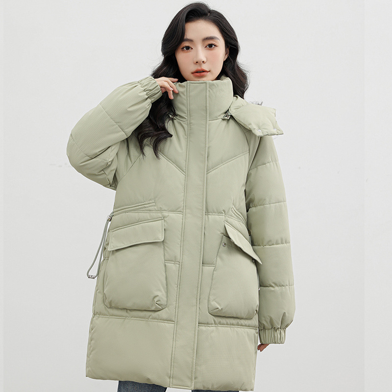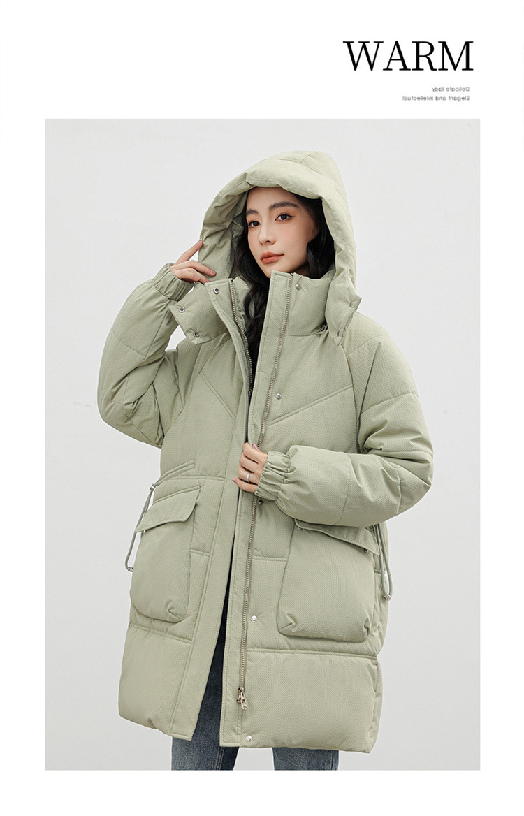 2023 Зимняя новая трансграничная свободная модная прямая пуховая куртка с капюшоном и хлопковой подкладкой, женская утепленная холодостойкая стеганая куртка средней длины с хлопковой подкладкой