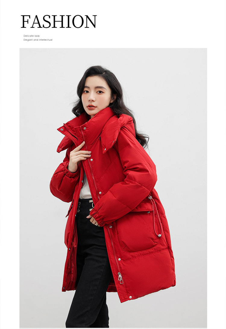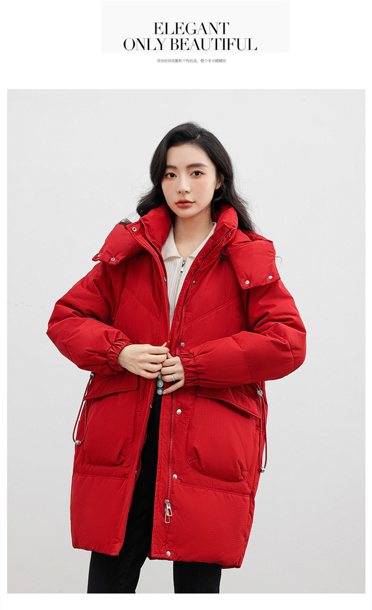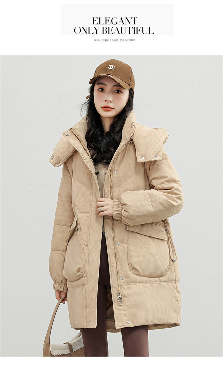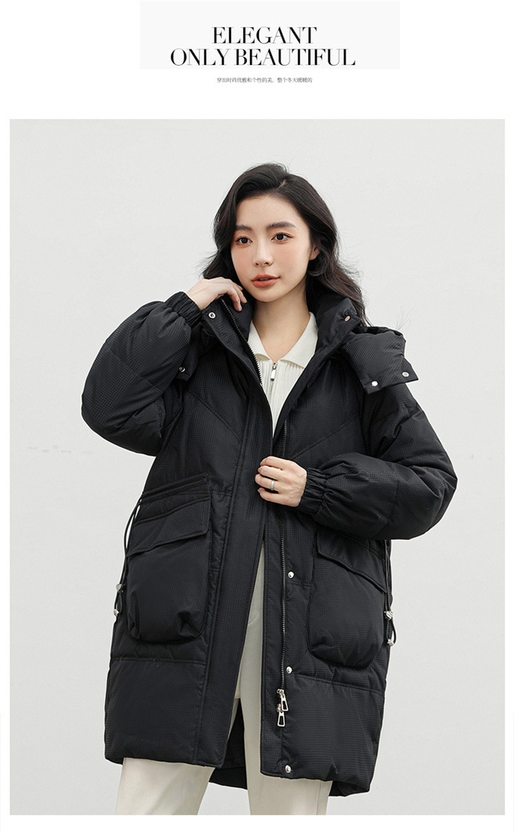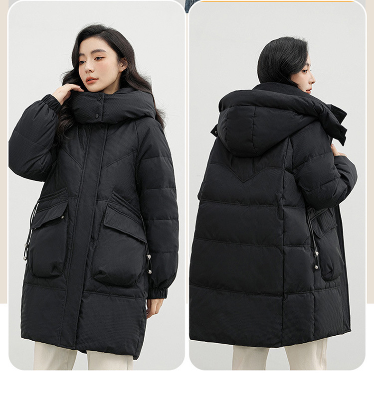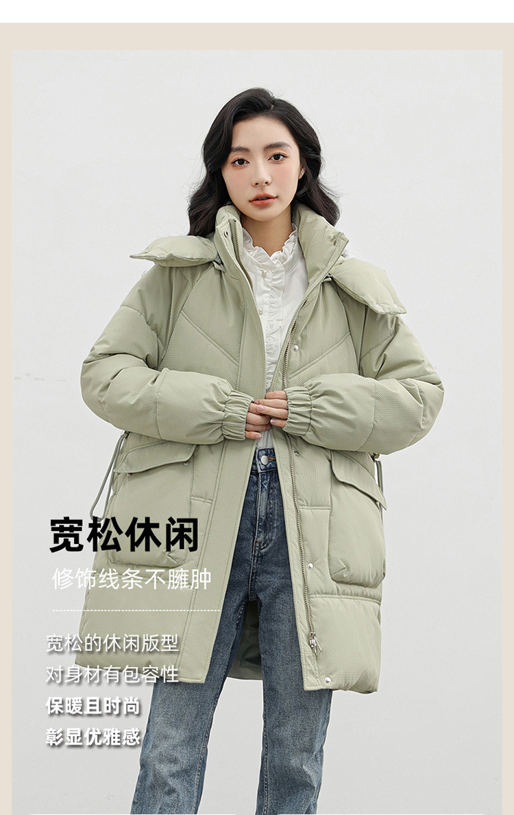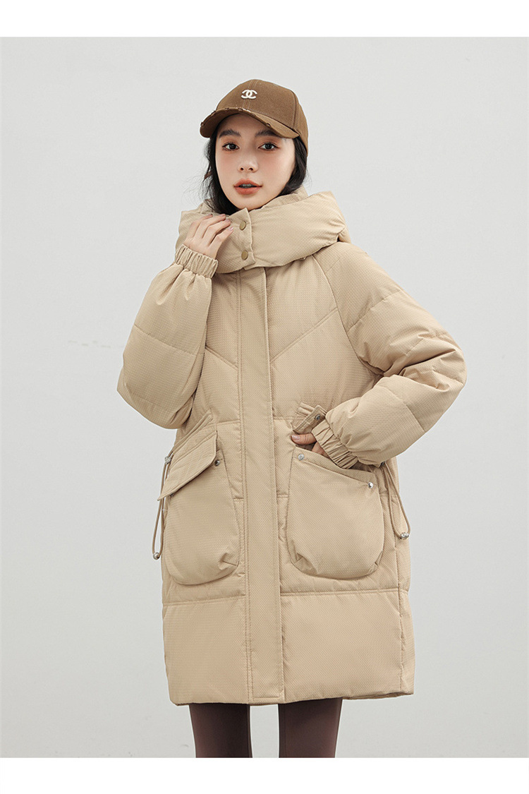 2023 Зимняя новая трансграничная свободная модная прямая пуховая куртка с капюшоном и хлопковой подкладкой, женская утепленная холодостойкая стеганая куртка средней длины с хлопковой подкладкой
