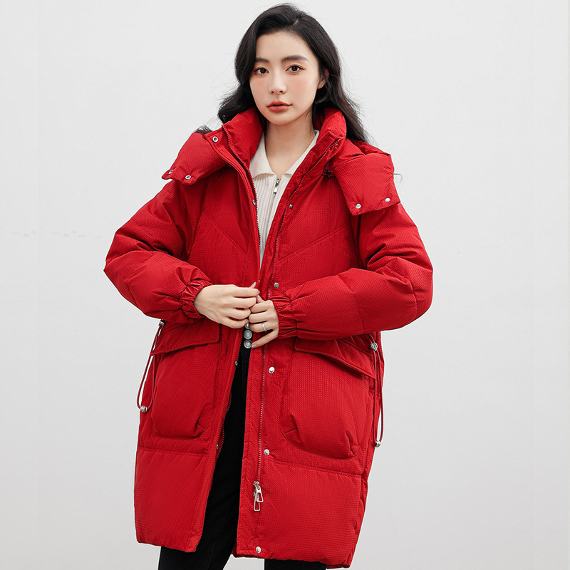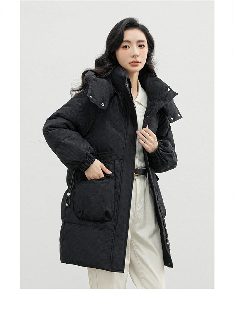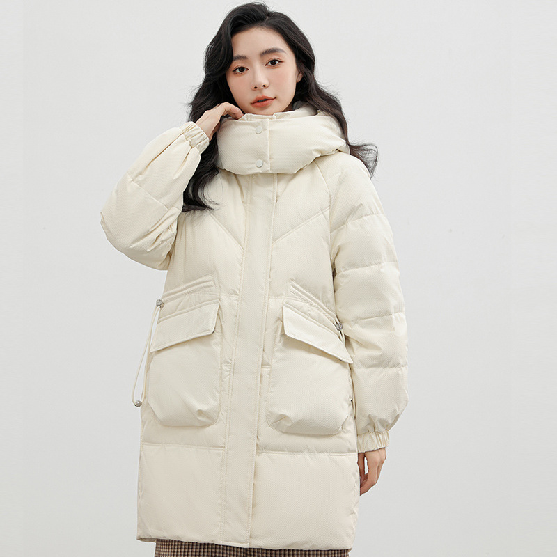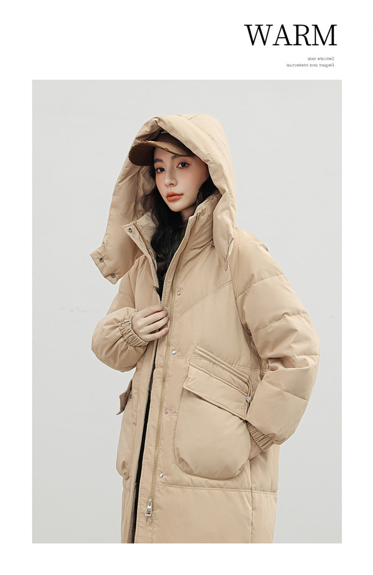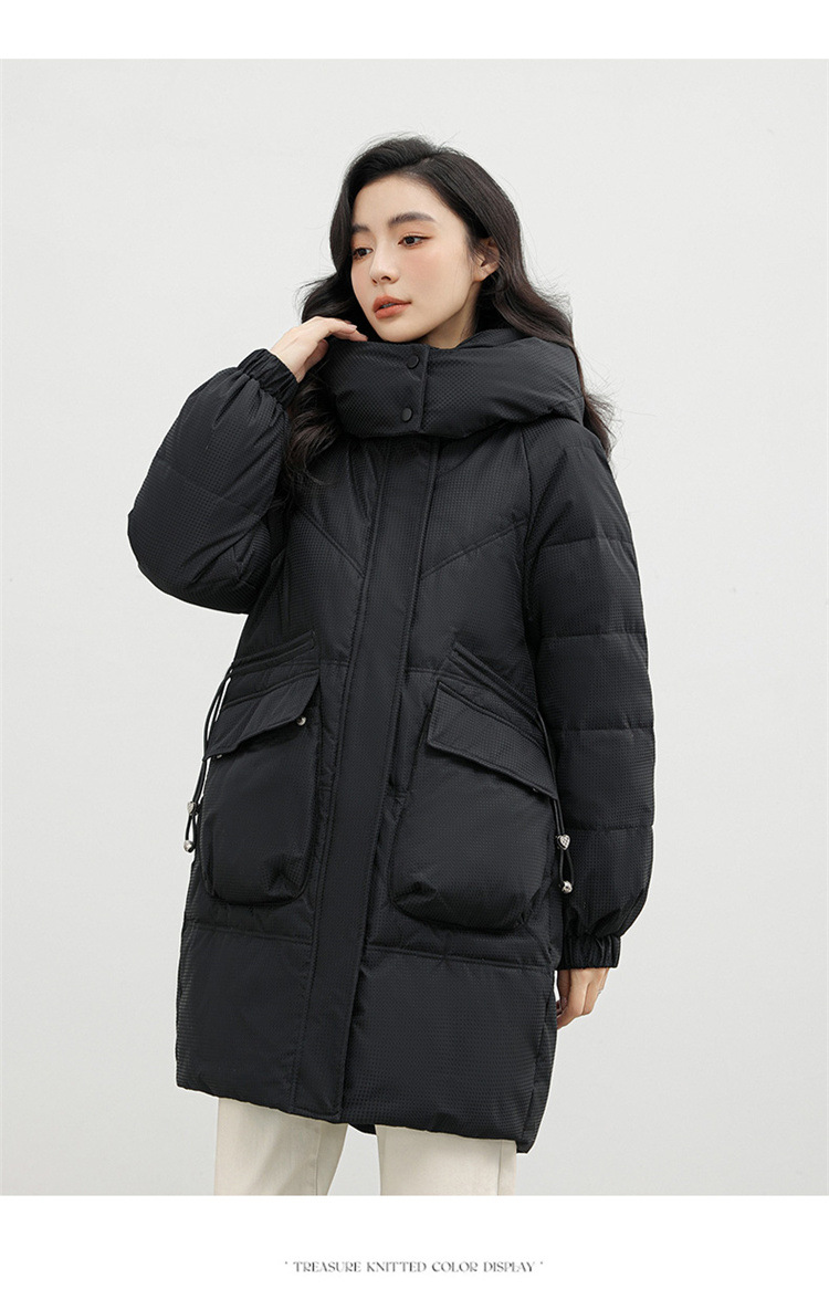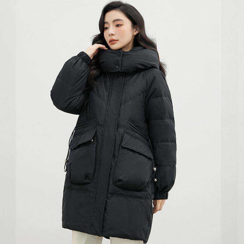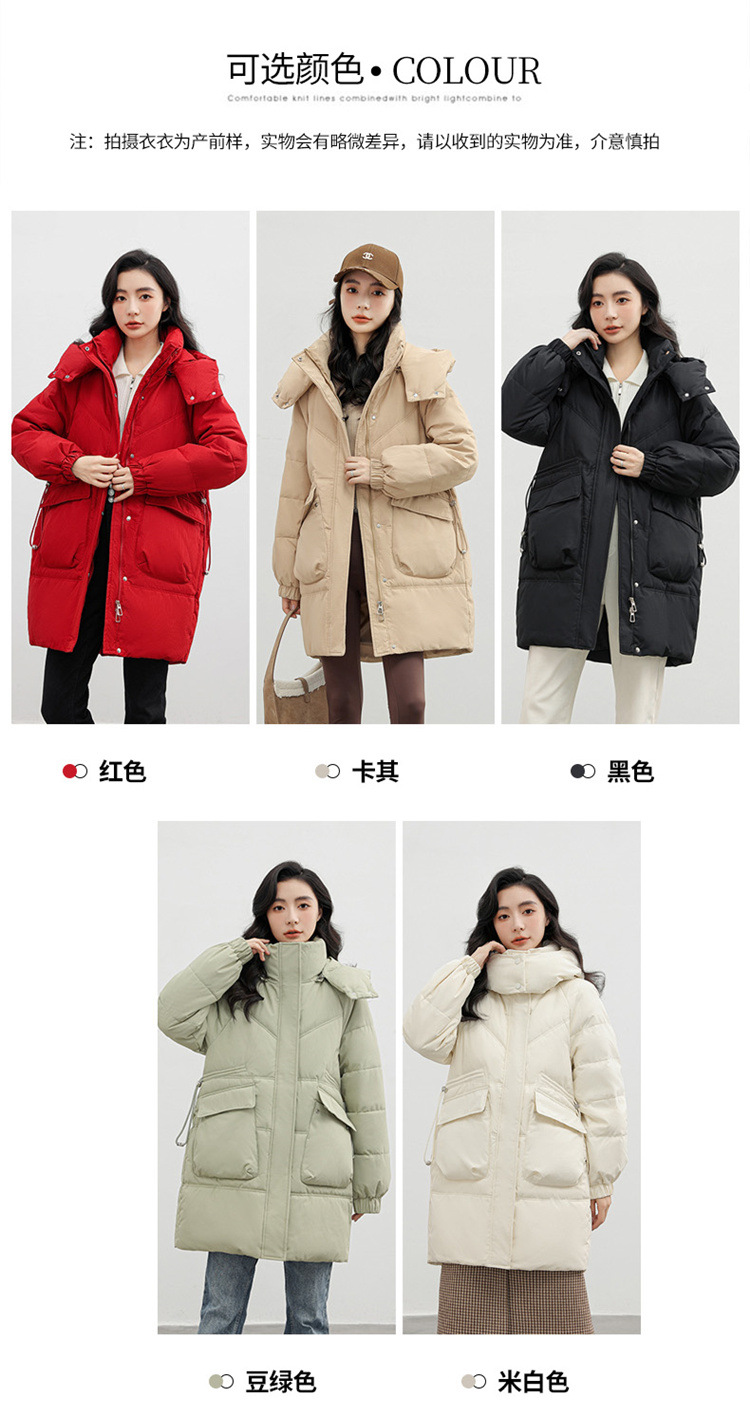 2023 Зимняя новая трансграничная свободная модная прямая пуховая куртка с капюшоном и хлопковой подкладкой, женская утепленная холодостойкая стеганая куртка средней длины с хлопковой подкладкой