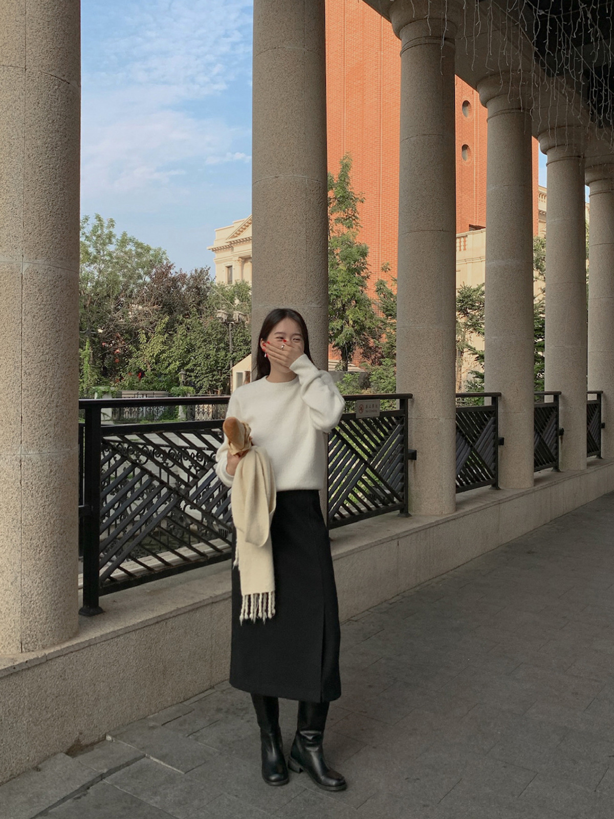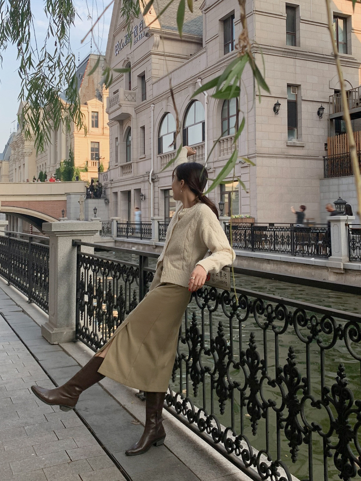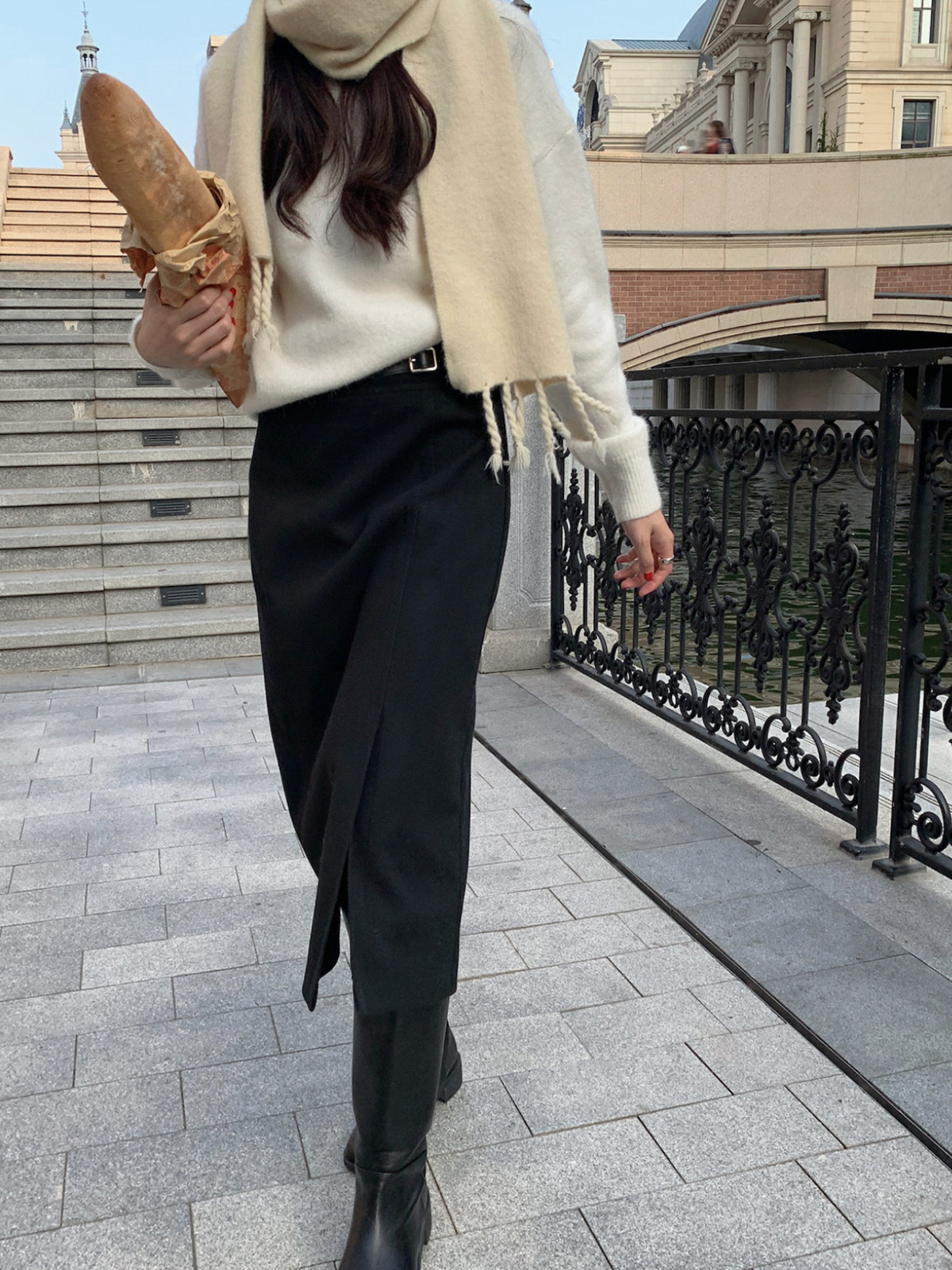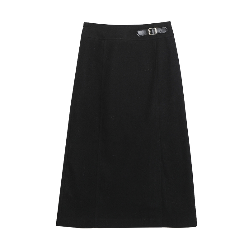 [Не втягивается] боковая кожаная пряжка с высокой талией Женская Длинная тонкая юбка женская универсальная прямая юбка с разрезом