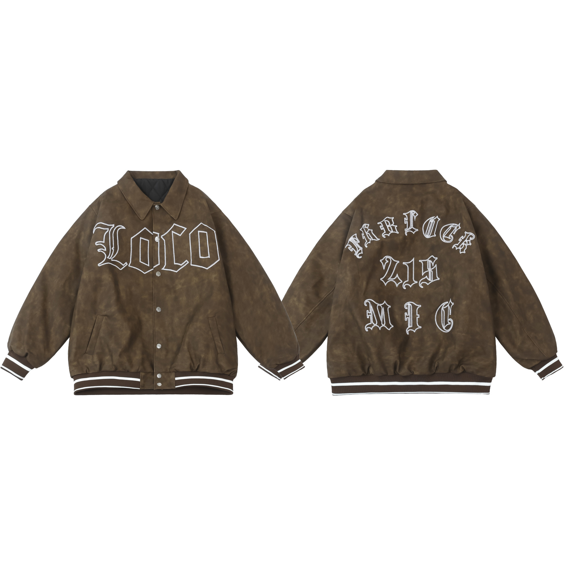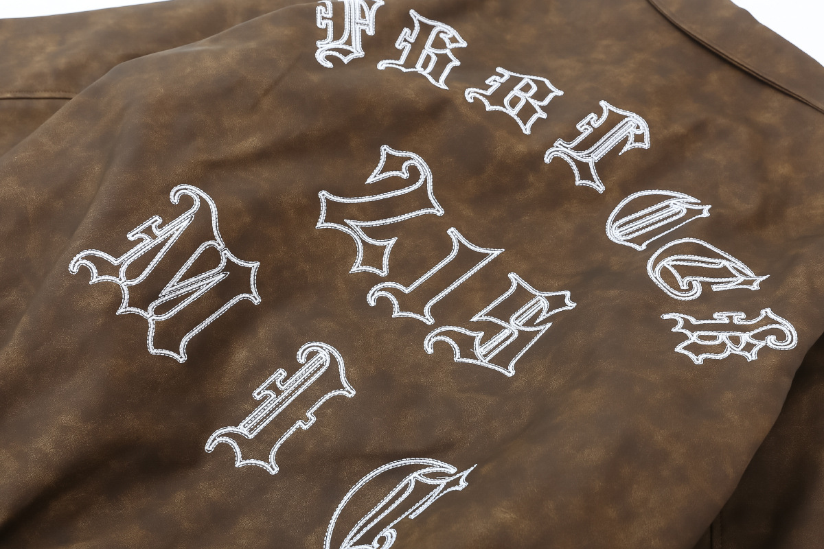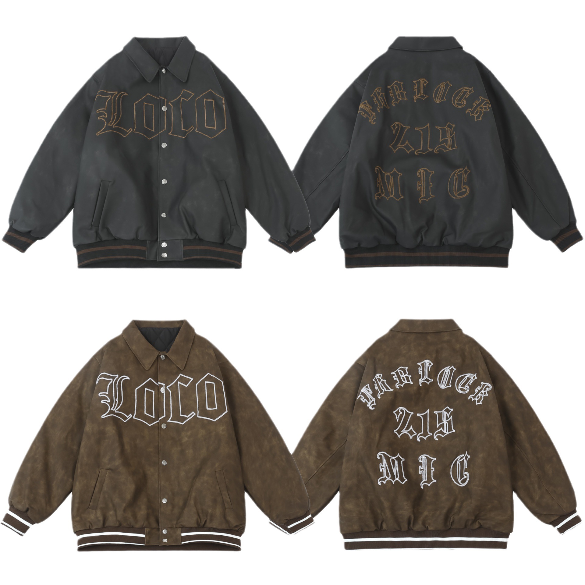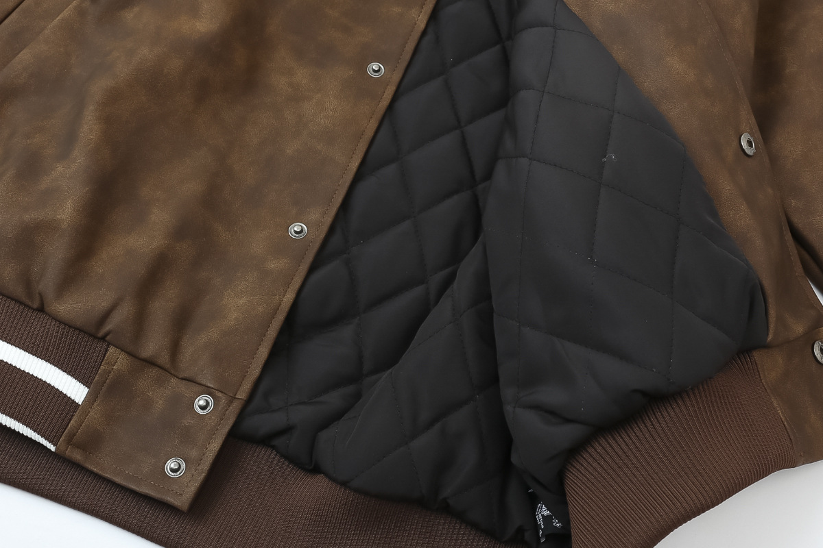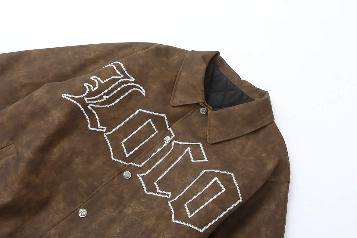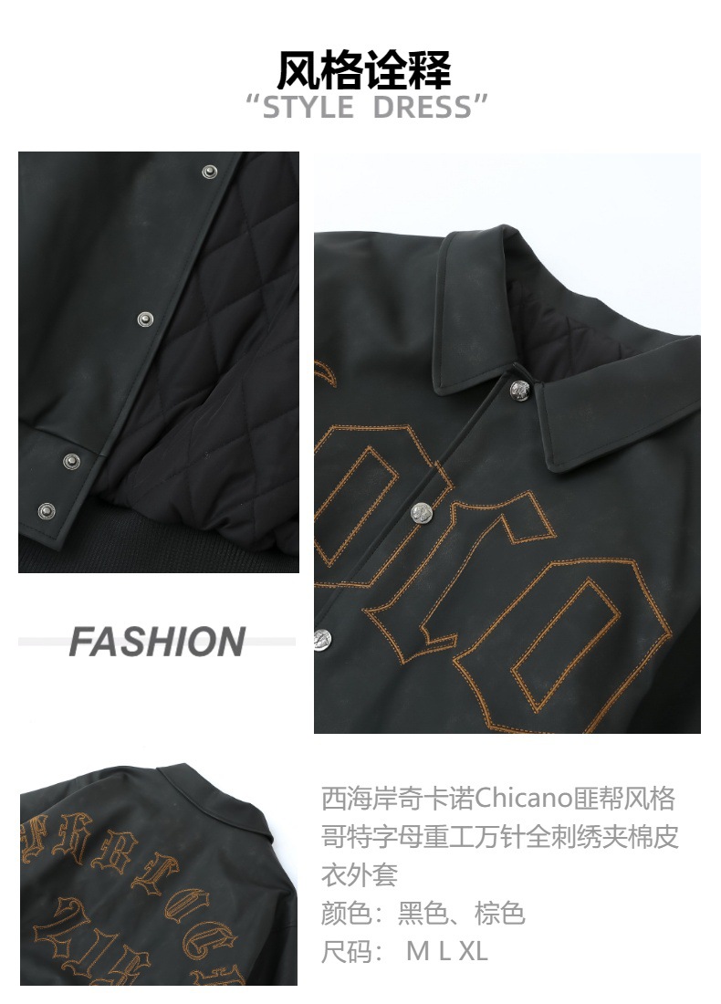 Американский vitage Винтажная куртка с хлопковой подкладкой с цветочной вышивкой Утолщенная кожаная куртка большого размера