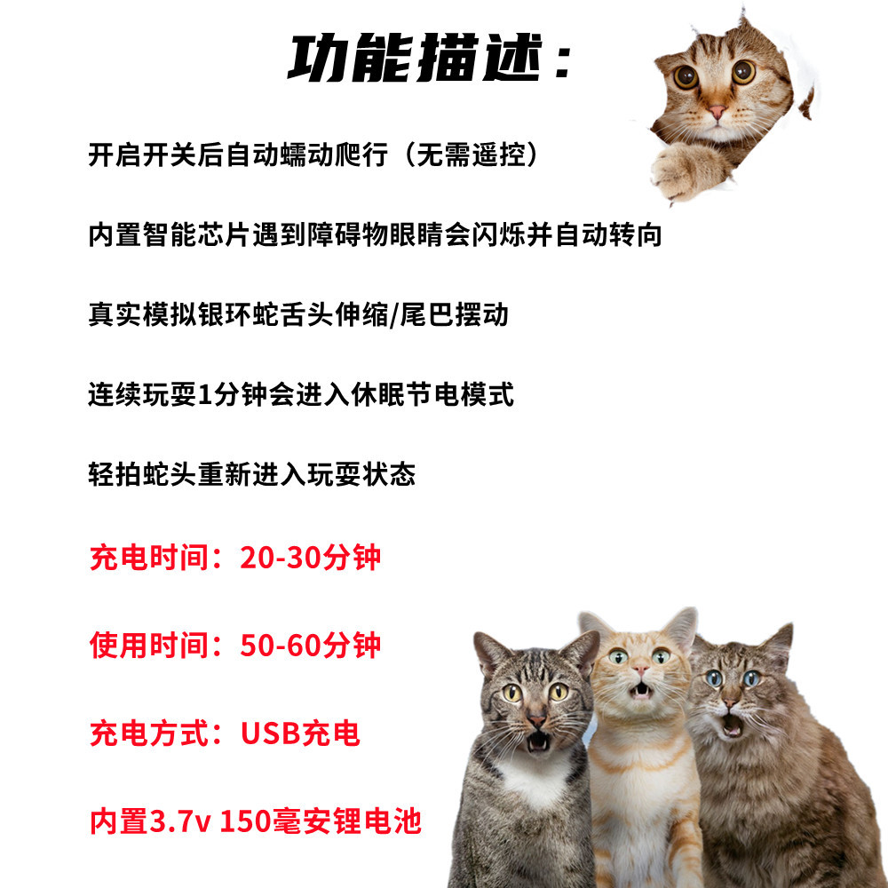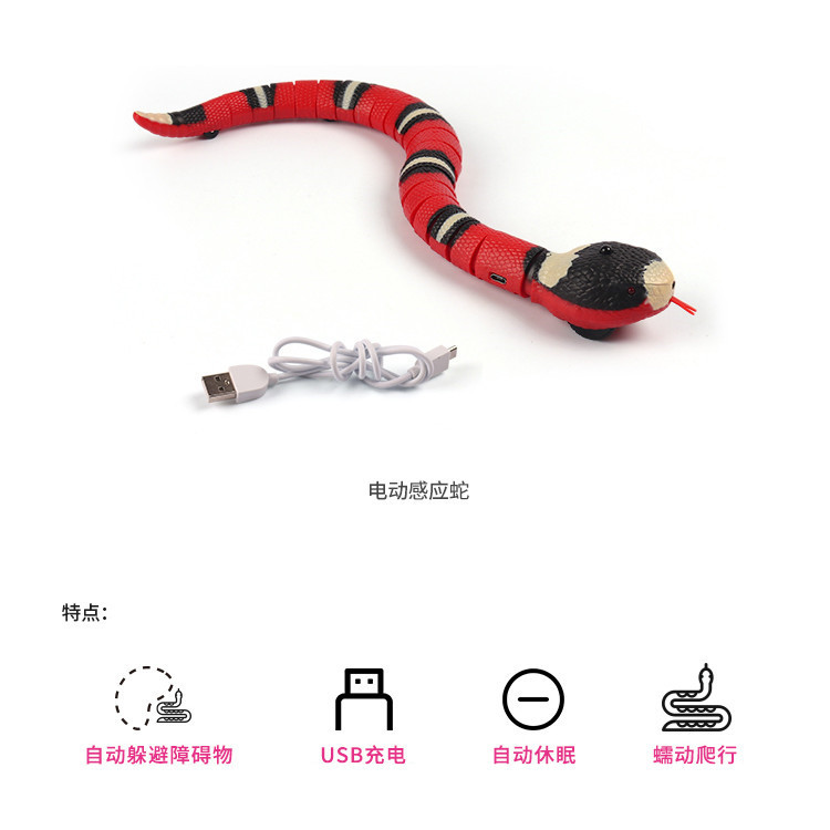 Умная забавная игрушка для кошек Автоматическая индукция предотвращения препятствий Змея Самостоятельное решение Скучная зарядка через USB Bungarus Моделирование Игрушка для домашних животных