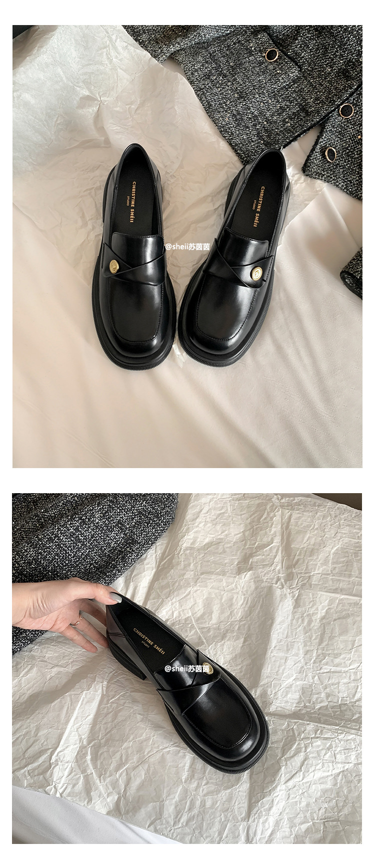 Версия из воловьей кожи ~ Су Иньинь с маленькой Золотой монетой, толстая нижняя ступенька с ленивым толстым каблуком, полностью кожаные лоферы, женские маленькие кожаные туфли