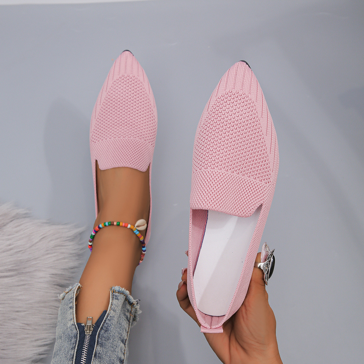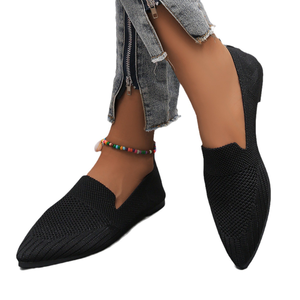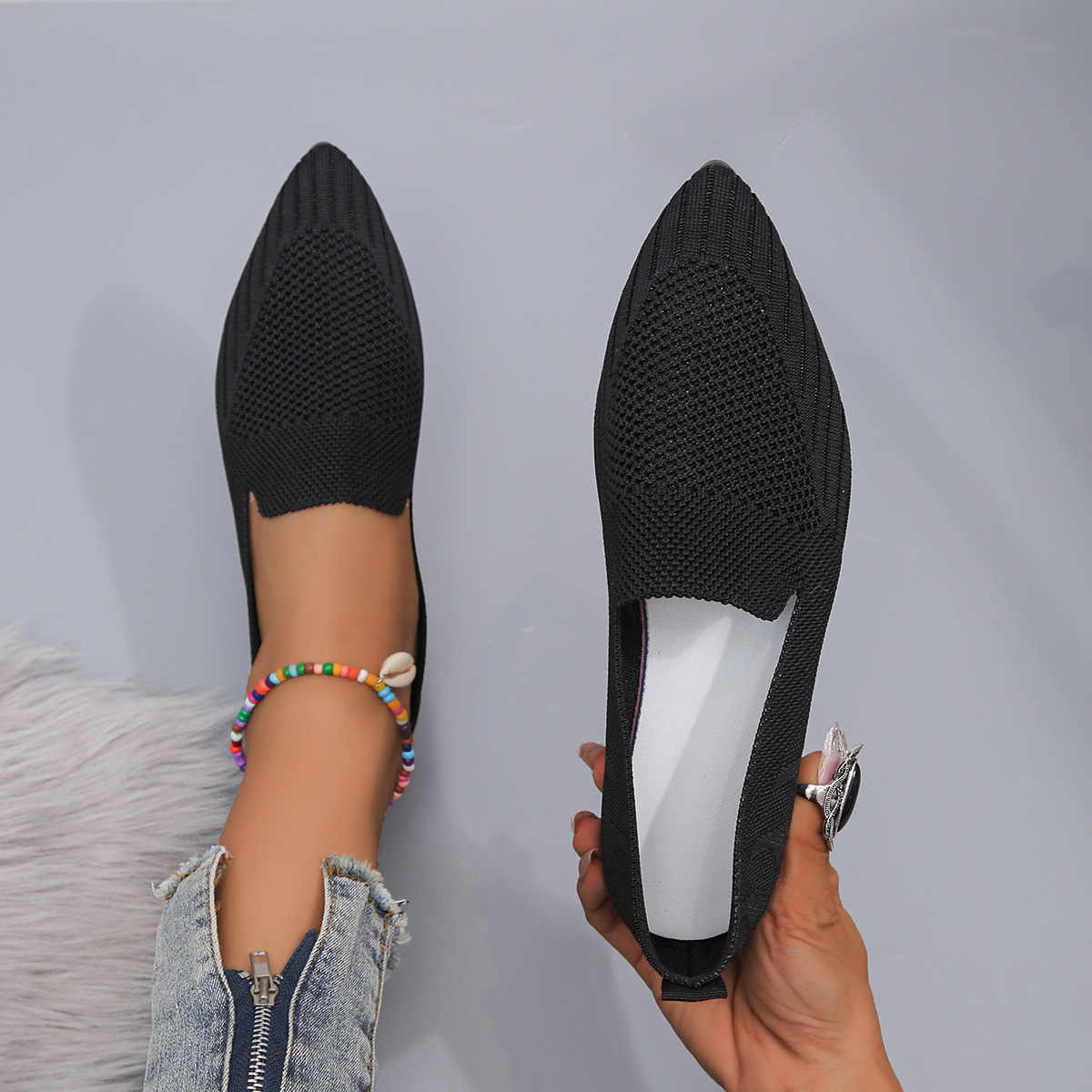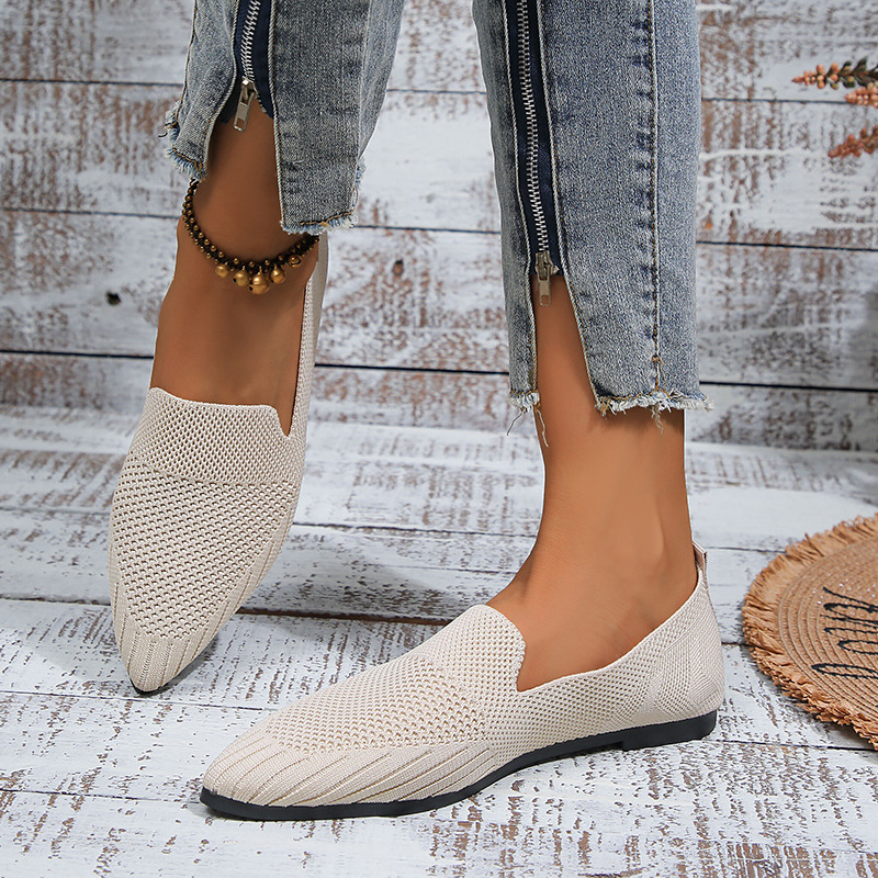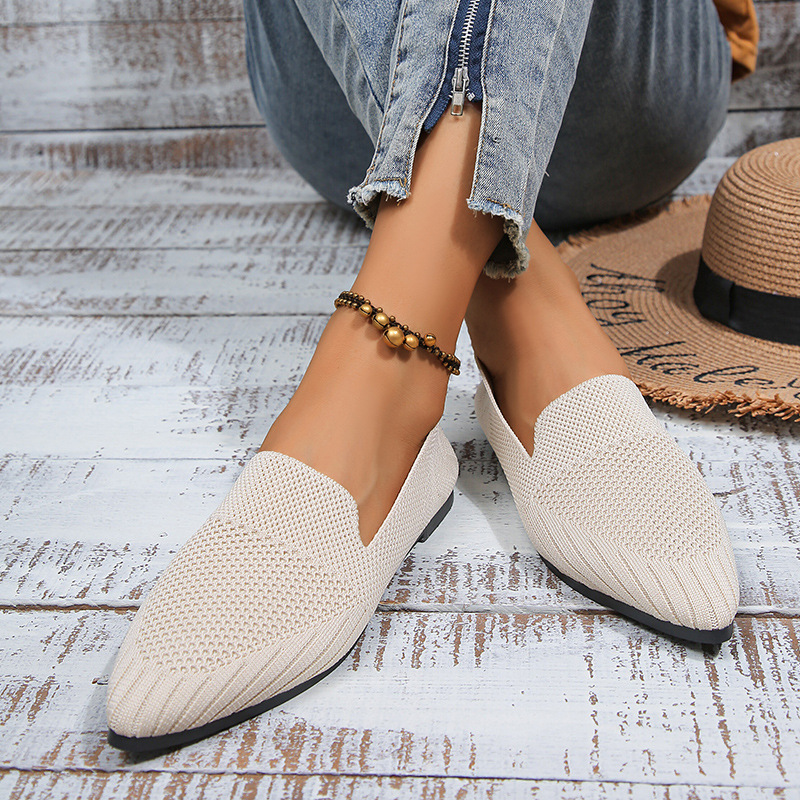 2023 осень Новая женская обувь больших размеров для внешней торговли, повседневная женская обувь Flyknit с заостренным носком и низким каблуком, маленькая Однослойная обувь для женщин LL