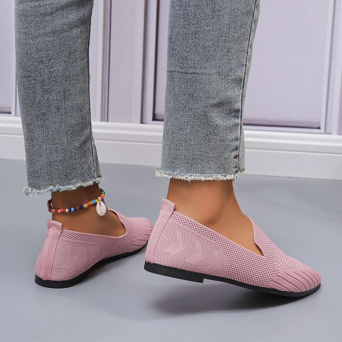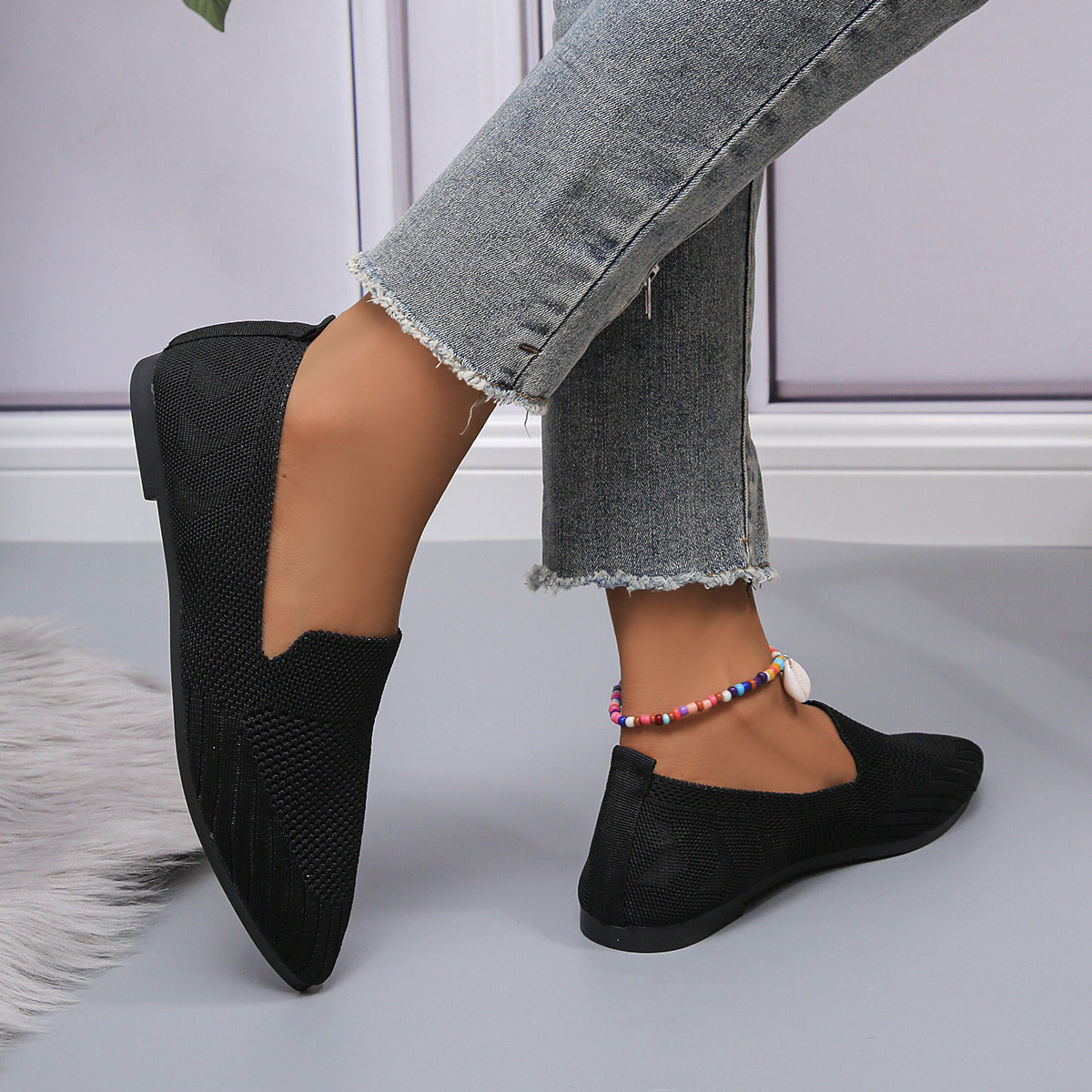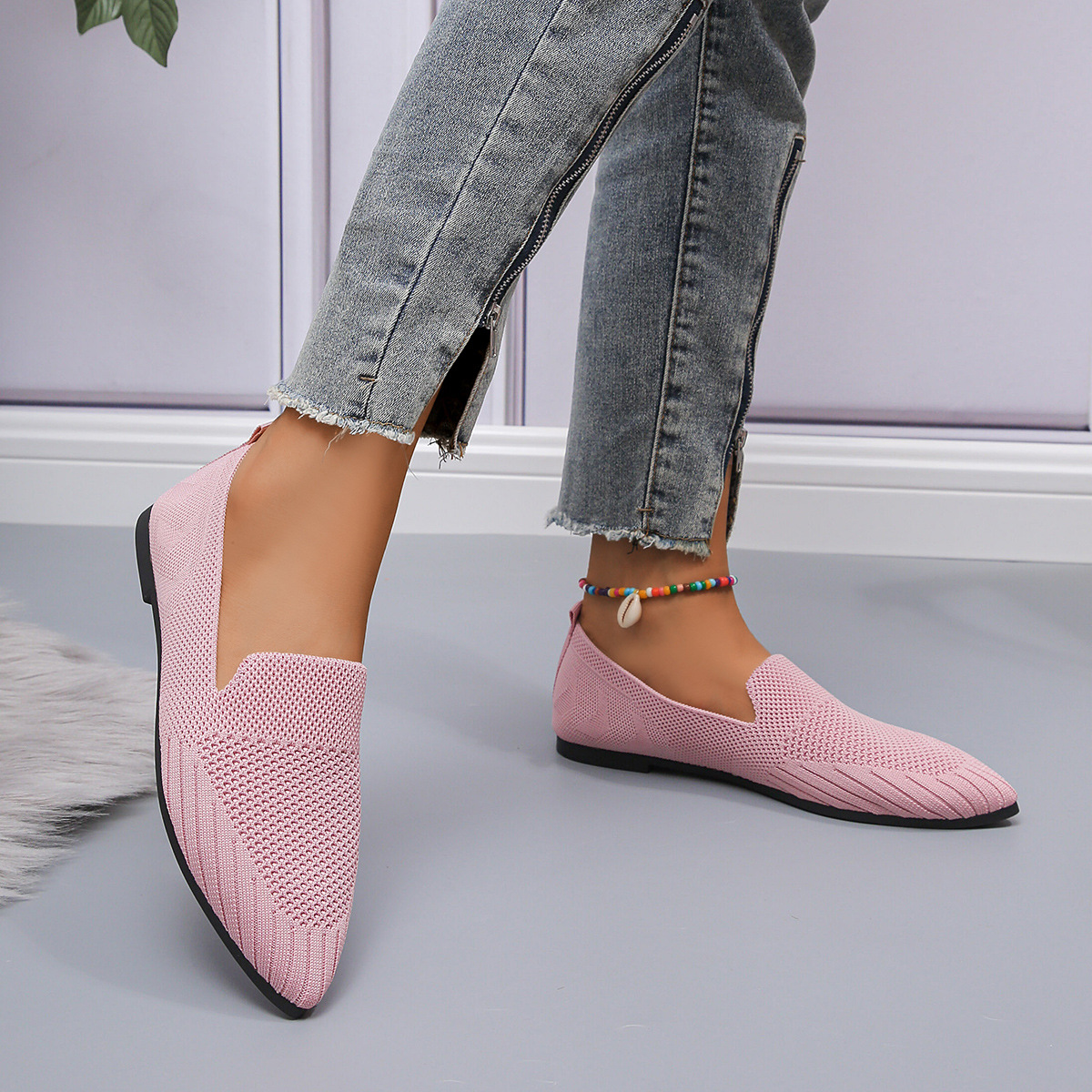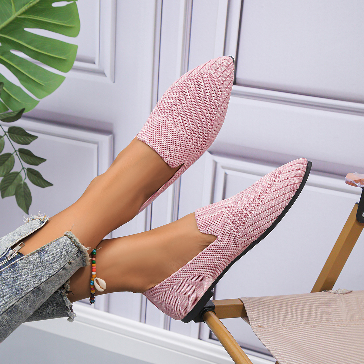 2023 осень Новая женская обувь больших размеров для внешней торговли, повседневная женская обувь Flyknit с заостренным носком и низким каблуком, маленькая Однослойная обувь для женщин LL