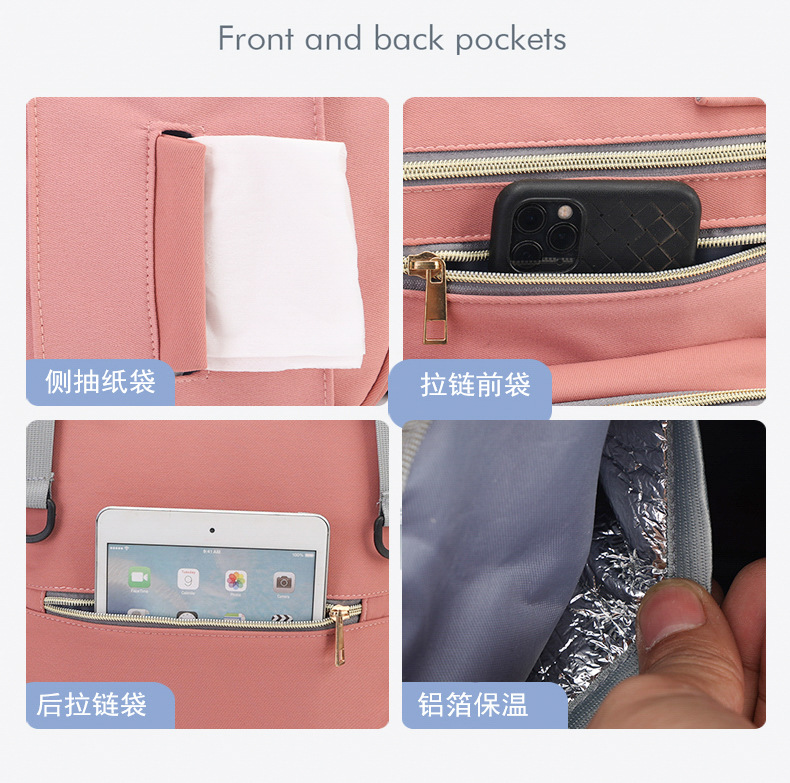 Передняя сумка для мамы с двойной молнией, противоугонная дорожная сумка для мумии, фабричная ткань Оксфорд, тележка для воды, подвесная сумка