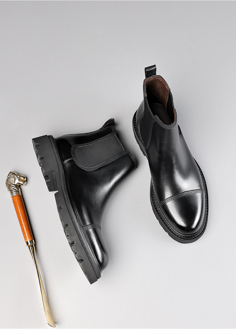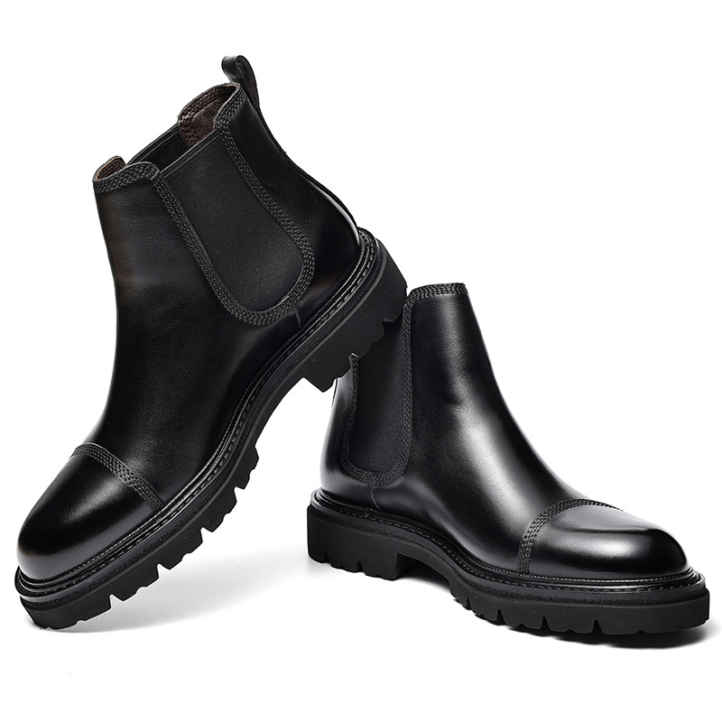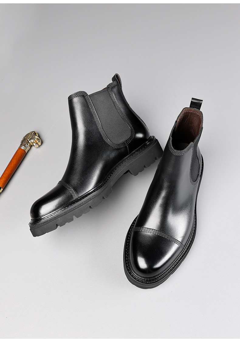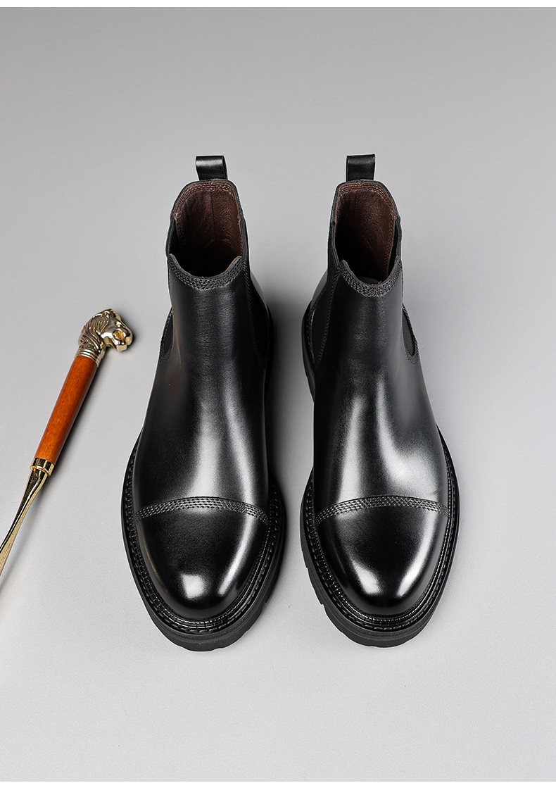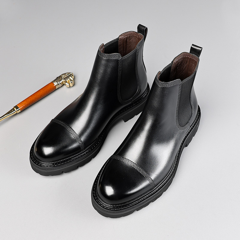 Ботинки Челси, мужские британские высокие кожаные туфли на толстой подошве, мужское Деловое платье, ботинки из воловьей кожи, кожаные ботинки Martin с тремя коннектором