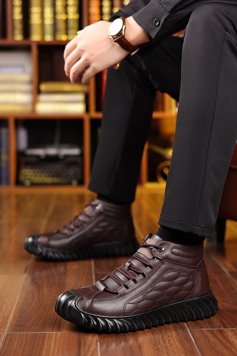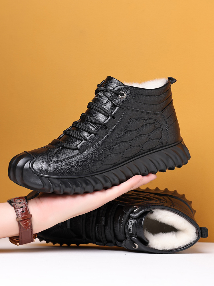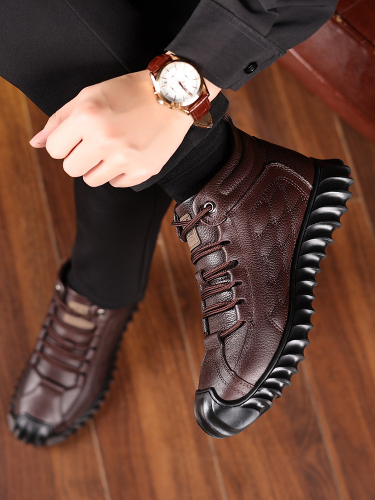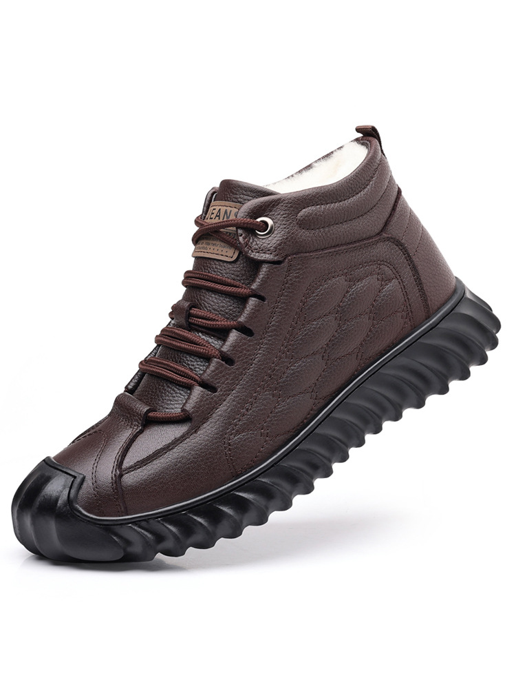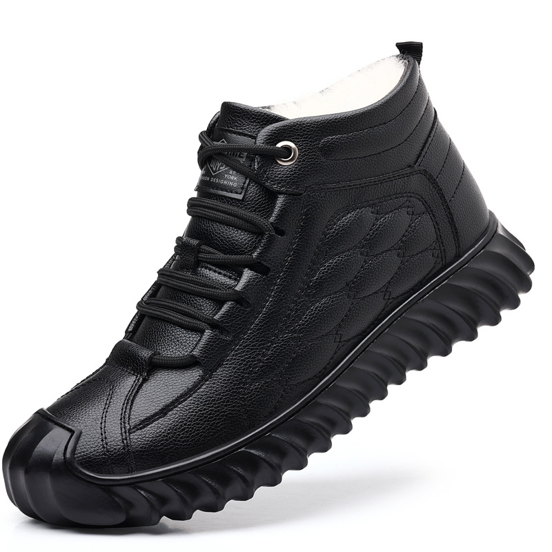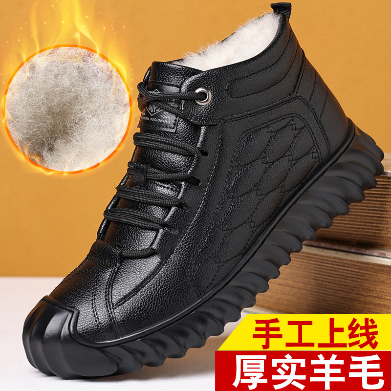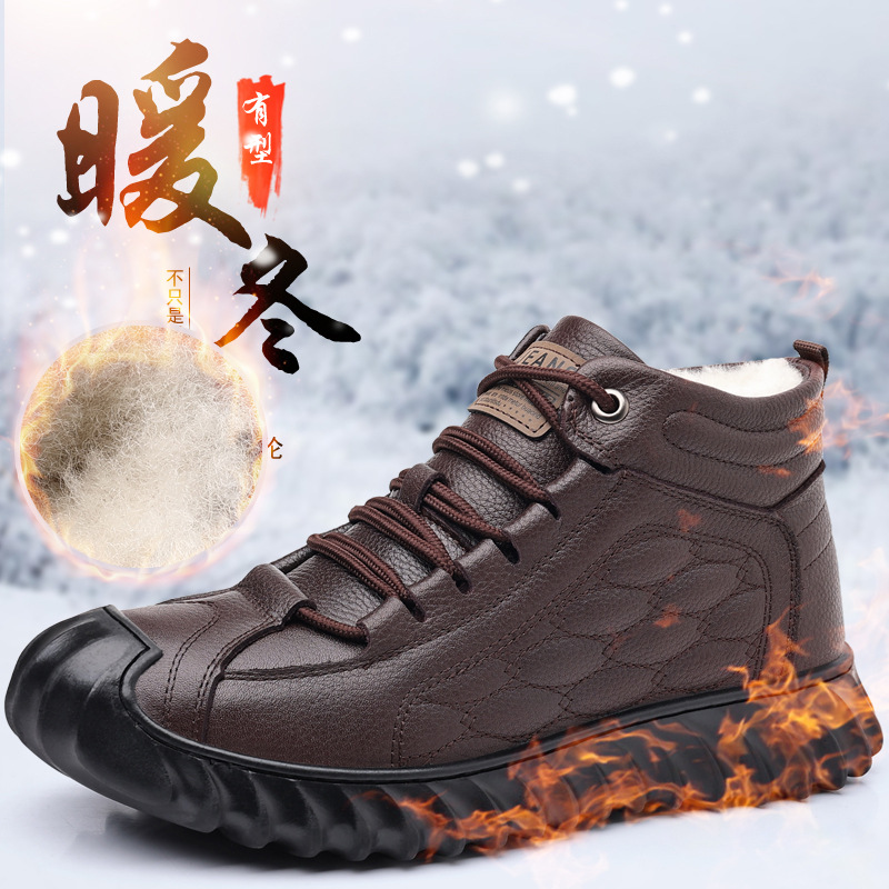 Прямая поставка с фабрики первого слоя из воловьей кожи, зимняя теплая утолщенная Повседневная Высокая хлопчатобумажная кожаная обувь с высоким верхом, зимние сапоги