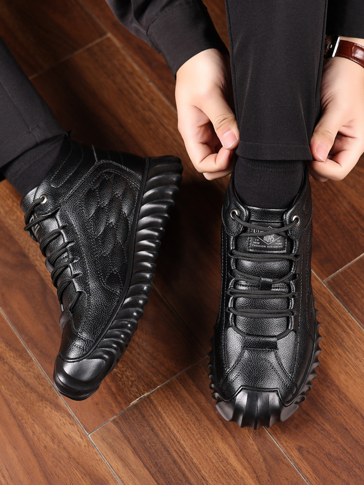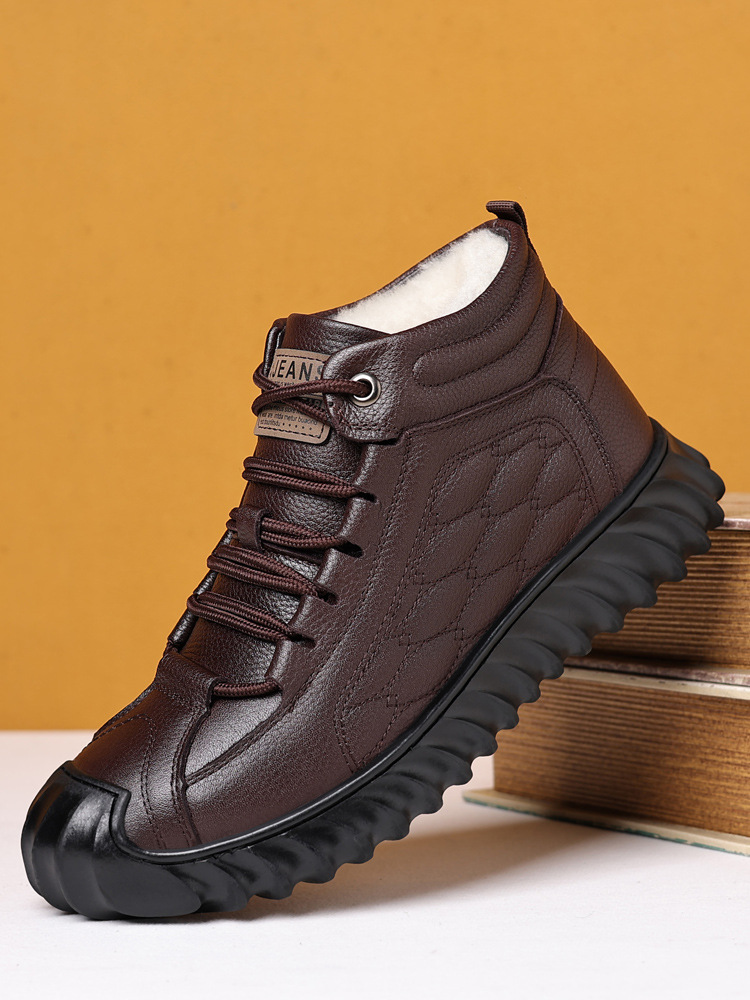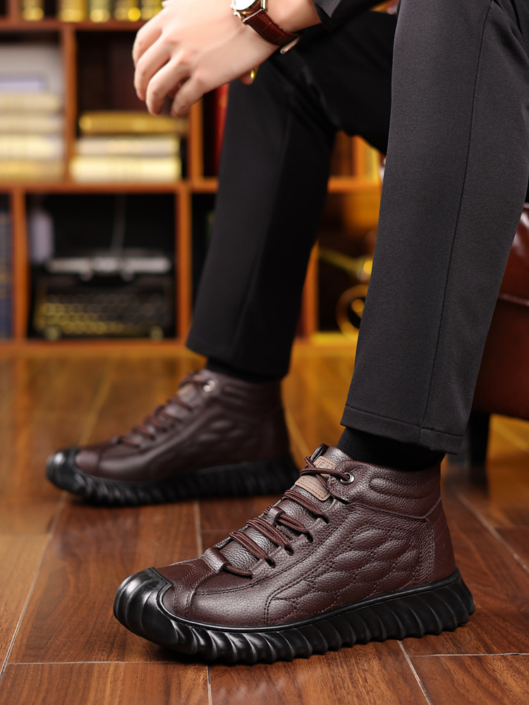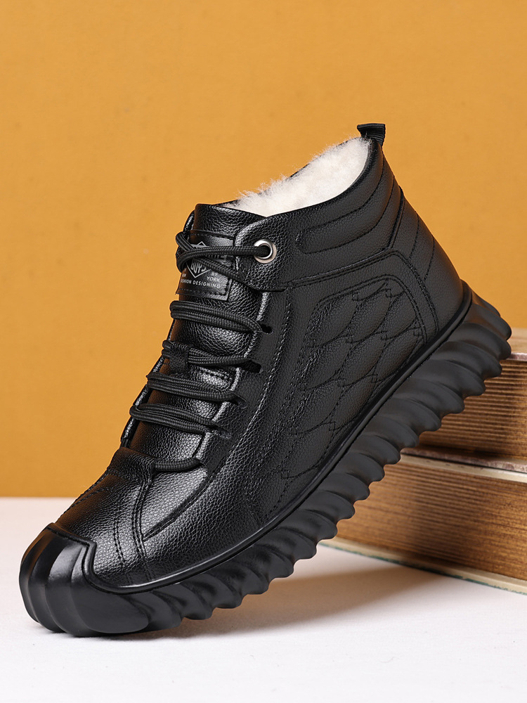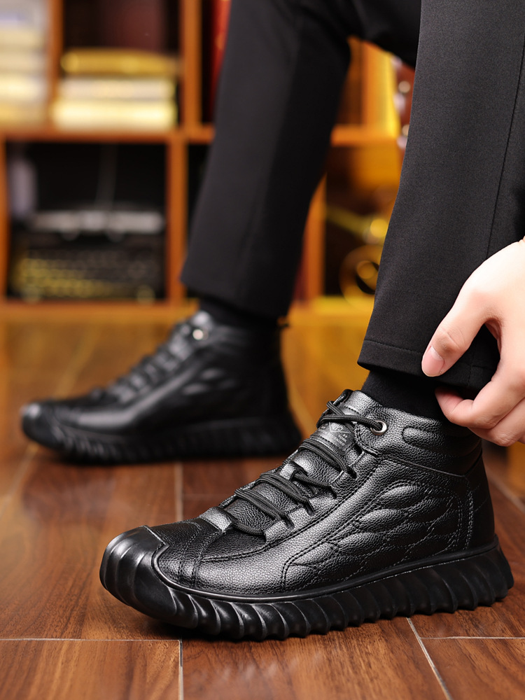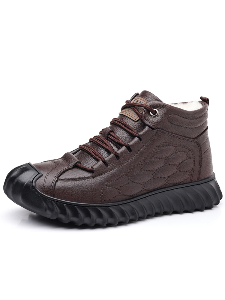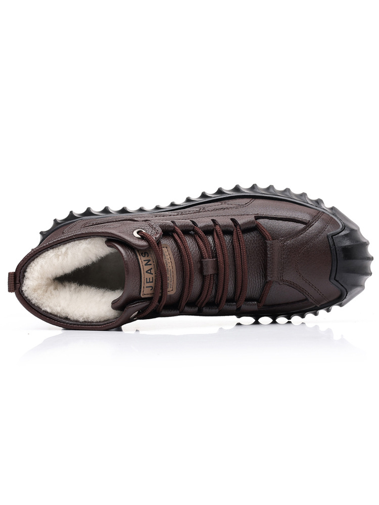 Прямая поставка с фабрики первого слоя из воловьей кожи, зимняя теплая утолщенная Повседневная Высокая хлопчатобумажная кожаная обувь с высоким верхом, зимние сапоги