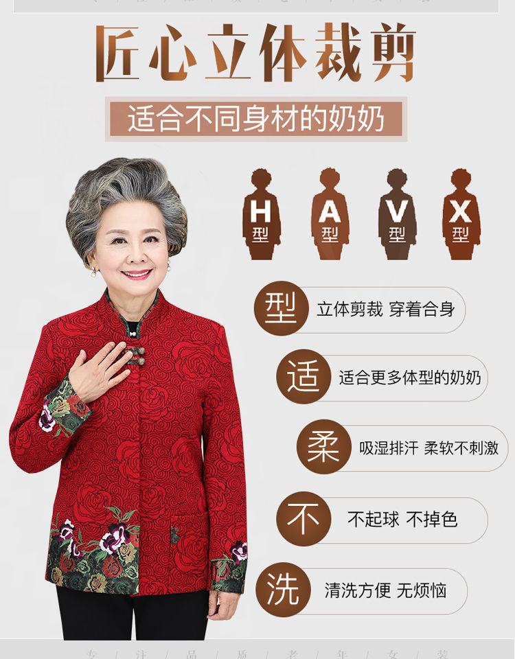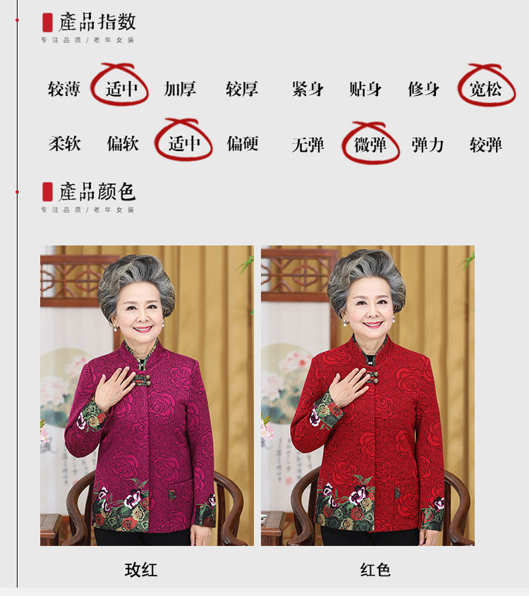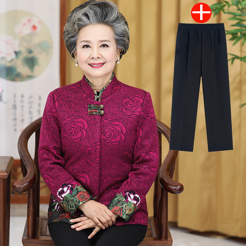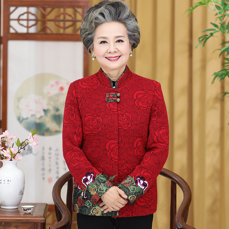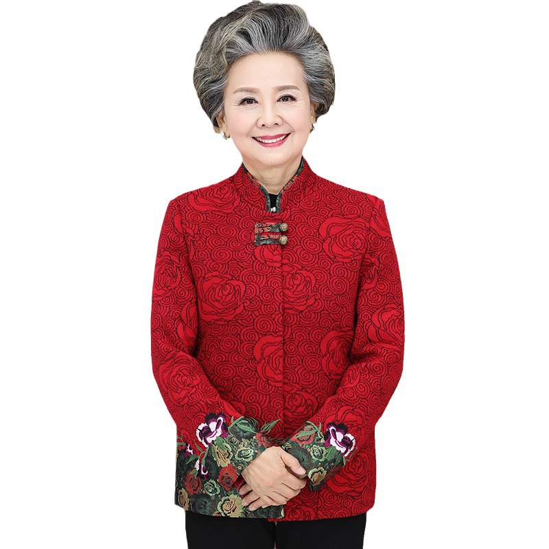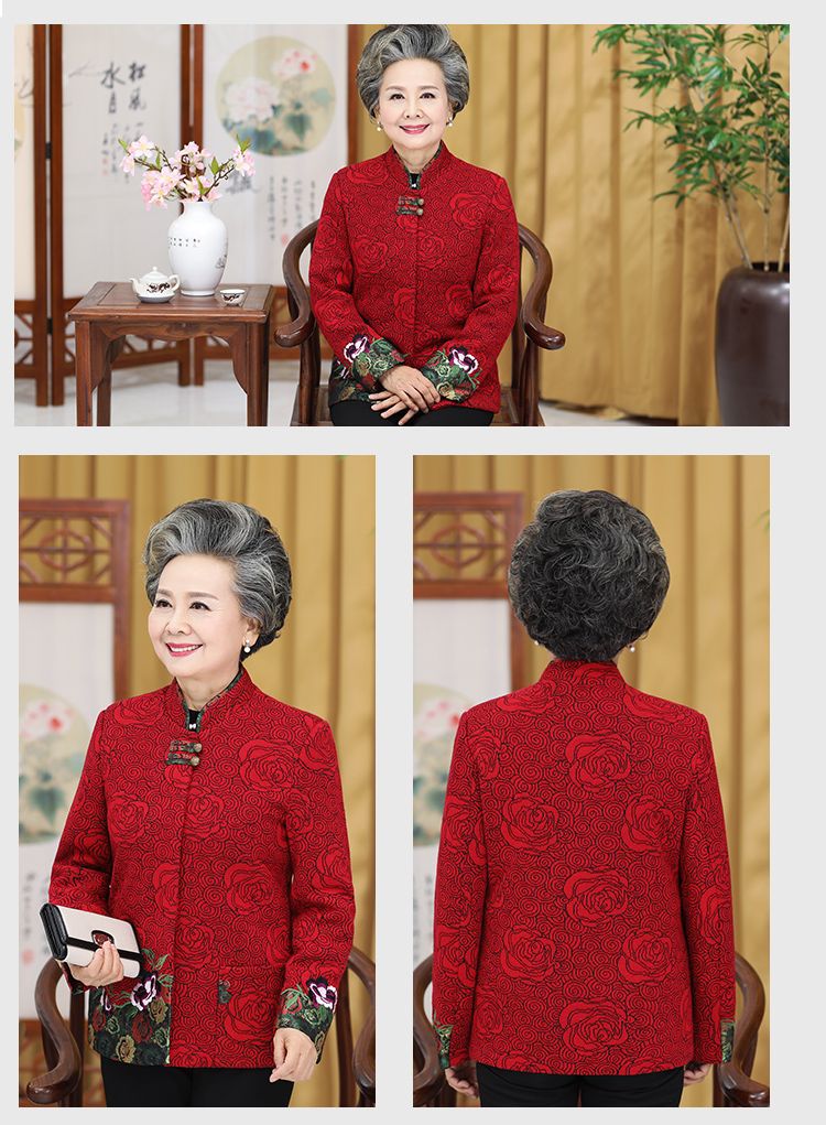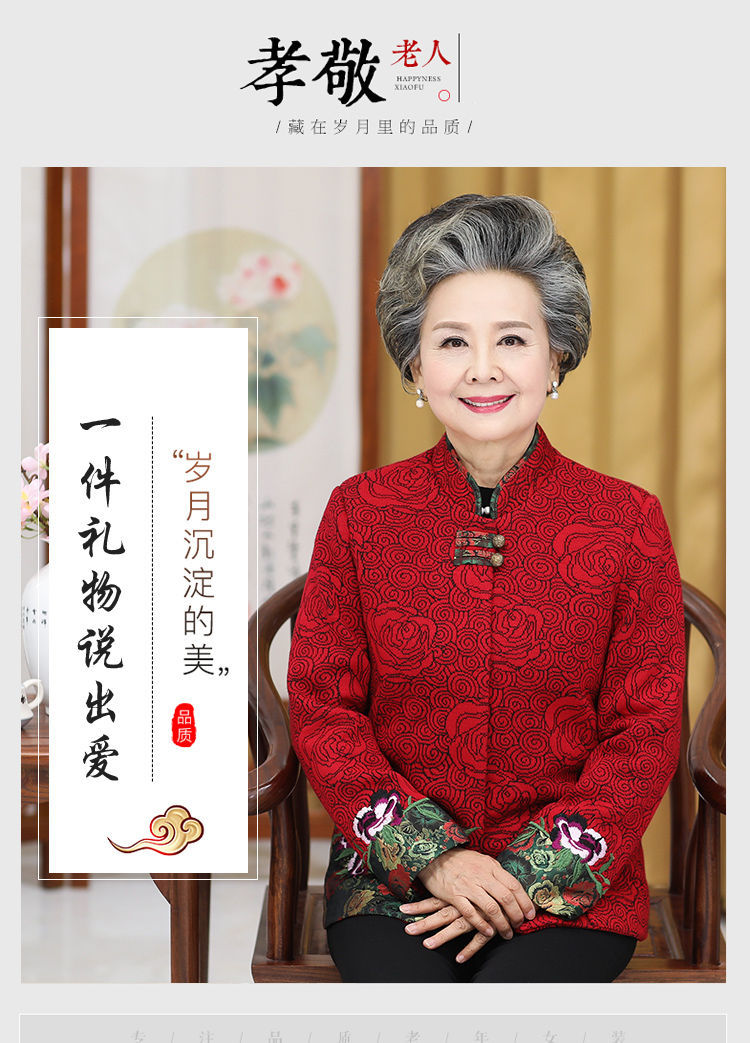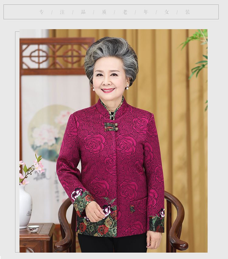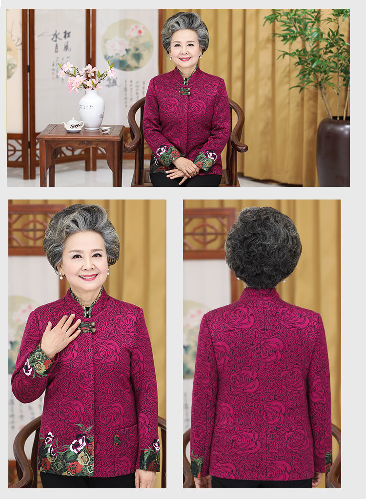 Осенняя одежда для пожилых людей Женское пальто Одежда для пожилых людей к 80-летию Бабушка Весенне-осеннее пальто на флисовой подкладке Костюм Тан на день рождения старой леди