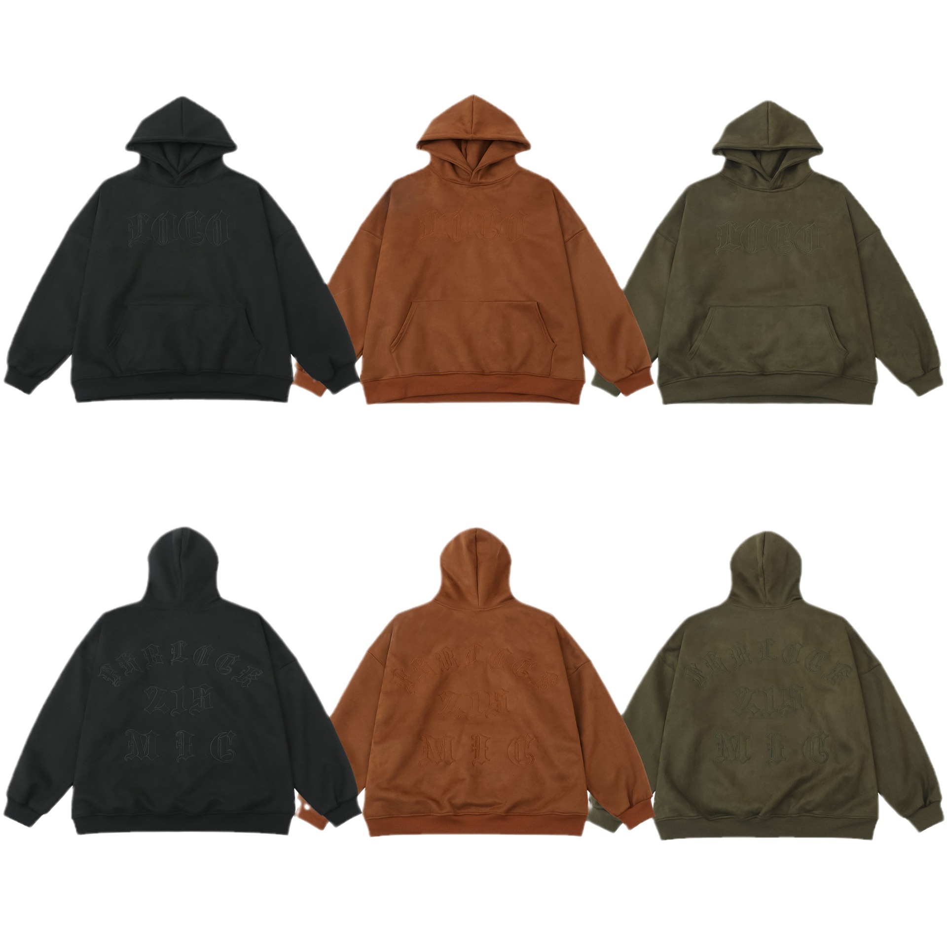Оптовая продажа: худи оверсайз в стиле ретро с вышивкой в виде готических букв, замшевое, на флисовой подкладке, американский ретро-стиль