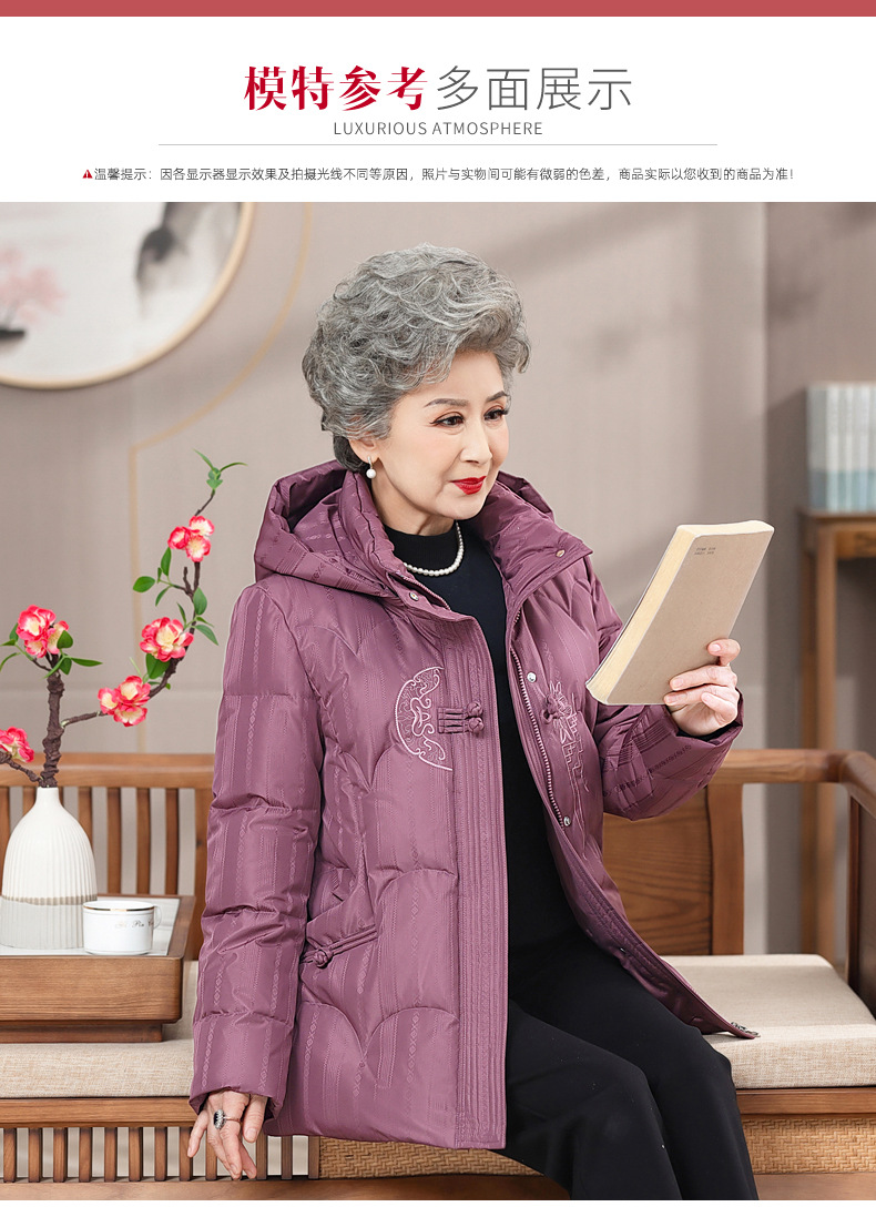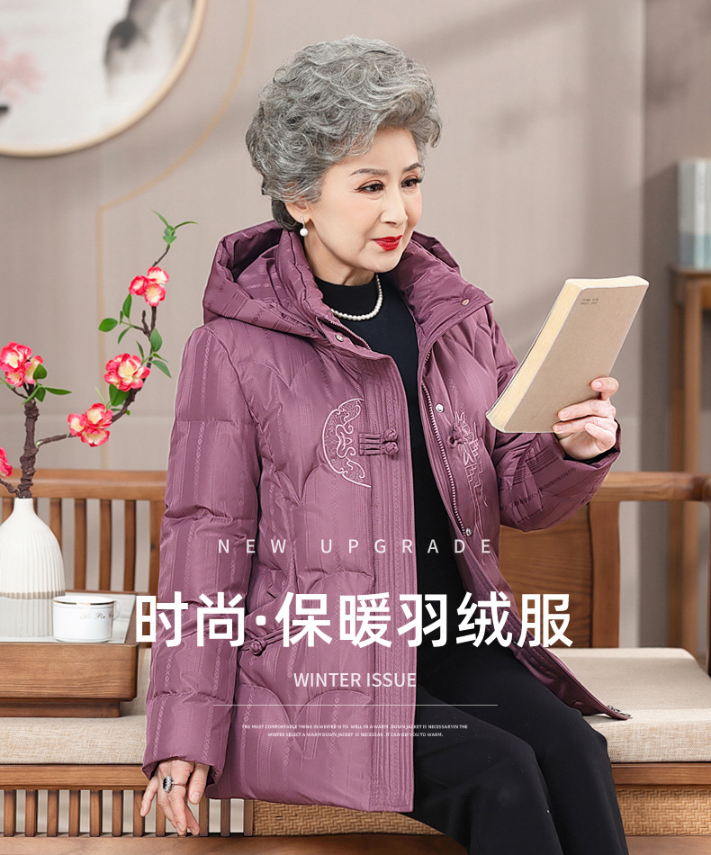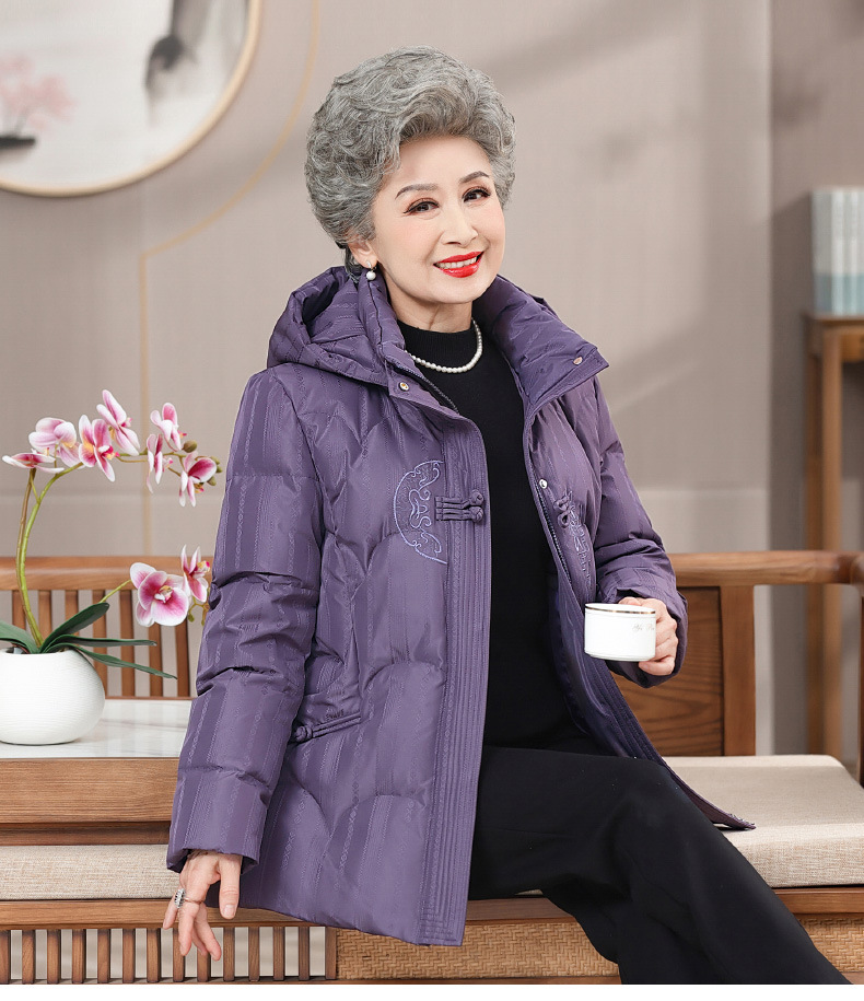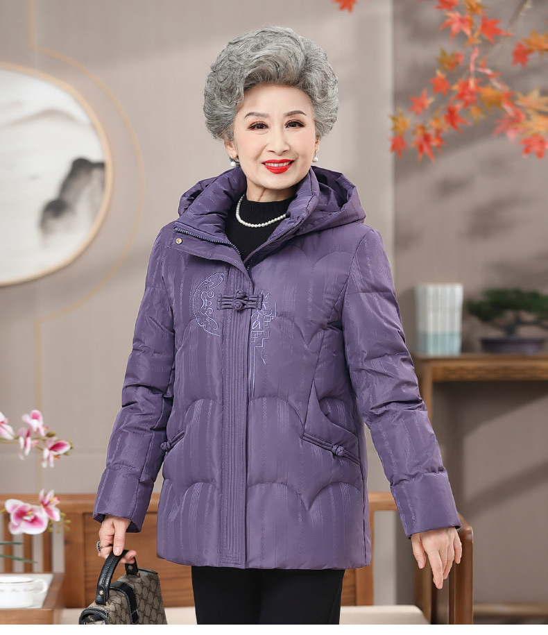 Пуховик для матери 2023, новинка зимы, шапка для 60-летней возраста, 70 лет, утепленное теплое пальто для бабушки среднего и пожилого возраста, 80 лет, женское