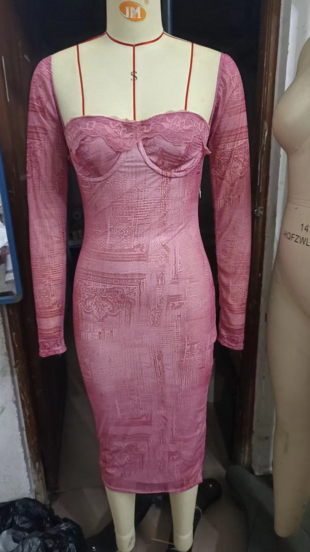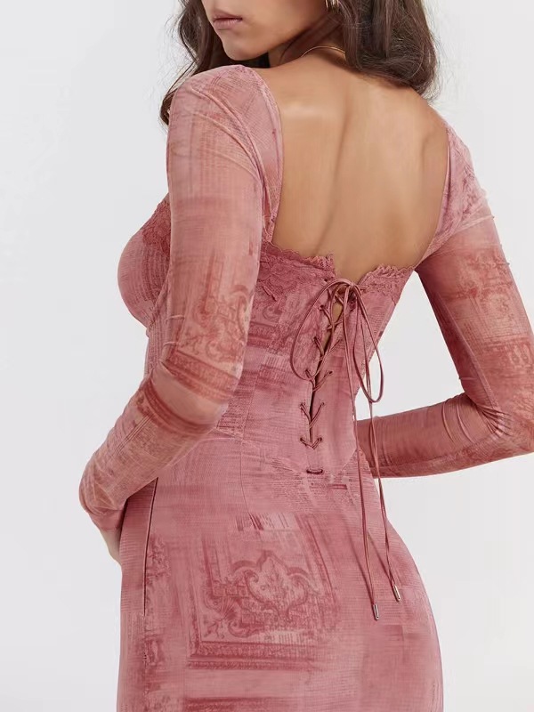 2024 Amazon: Женская одежда для трансграничной торговли, европейский и американский стиль, сексуальное платье-боди с кружевом и шнуровкой, приталенное, длинное, для дерзких девушек