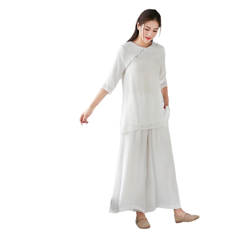 8051 комплект одежды для йоги Real Shot, весна-лето 2023, новые однотонные топы, свободные широкие брюки, тренировочная одежда, комплект из двух предметов