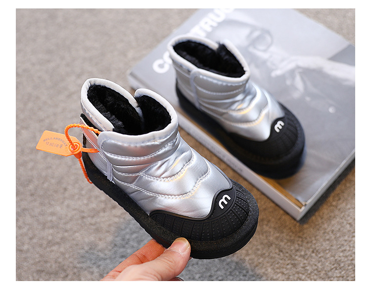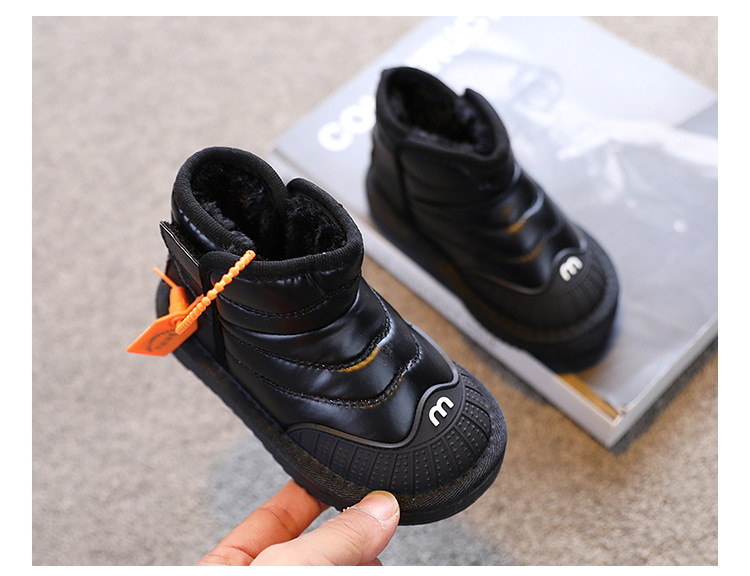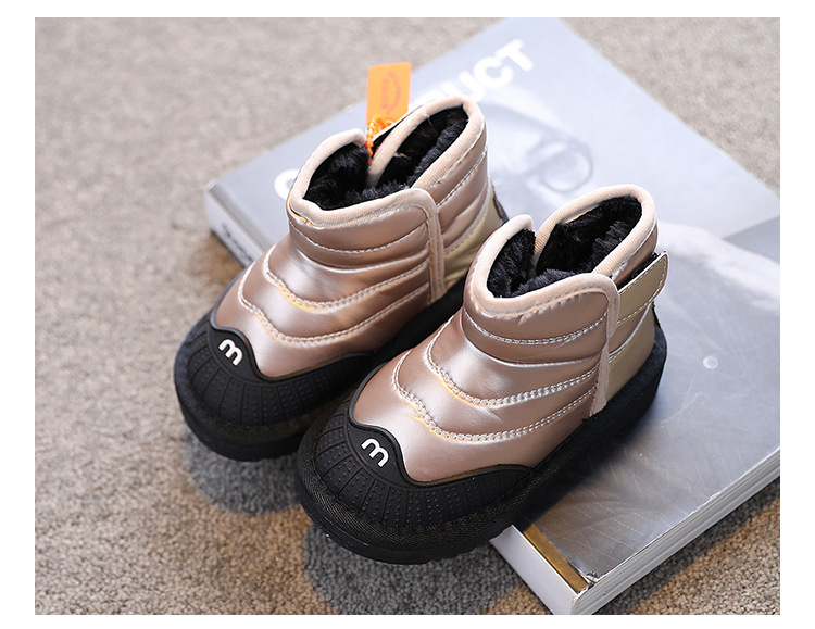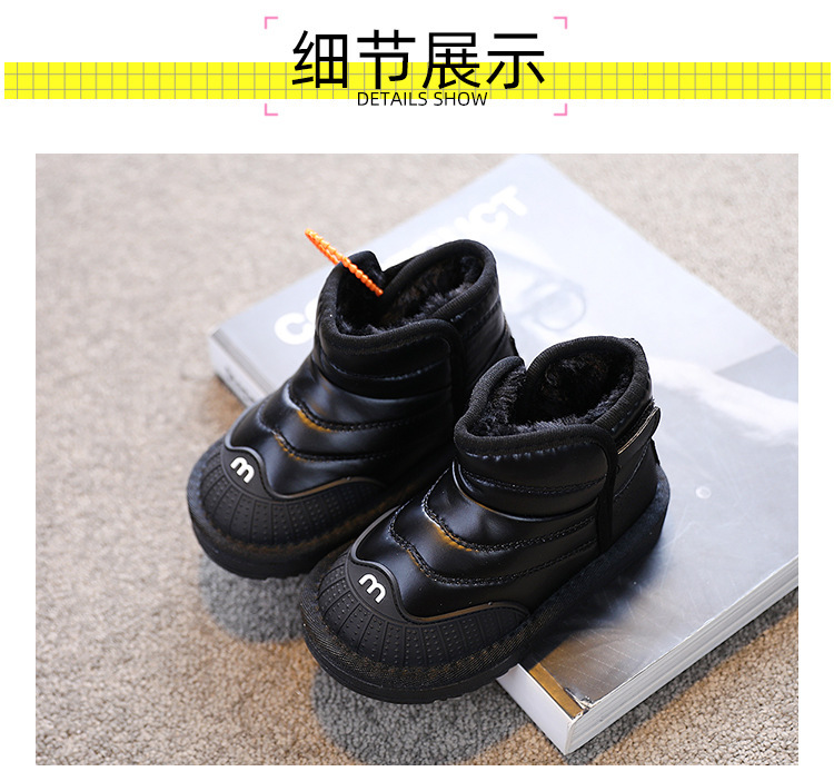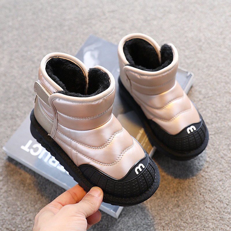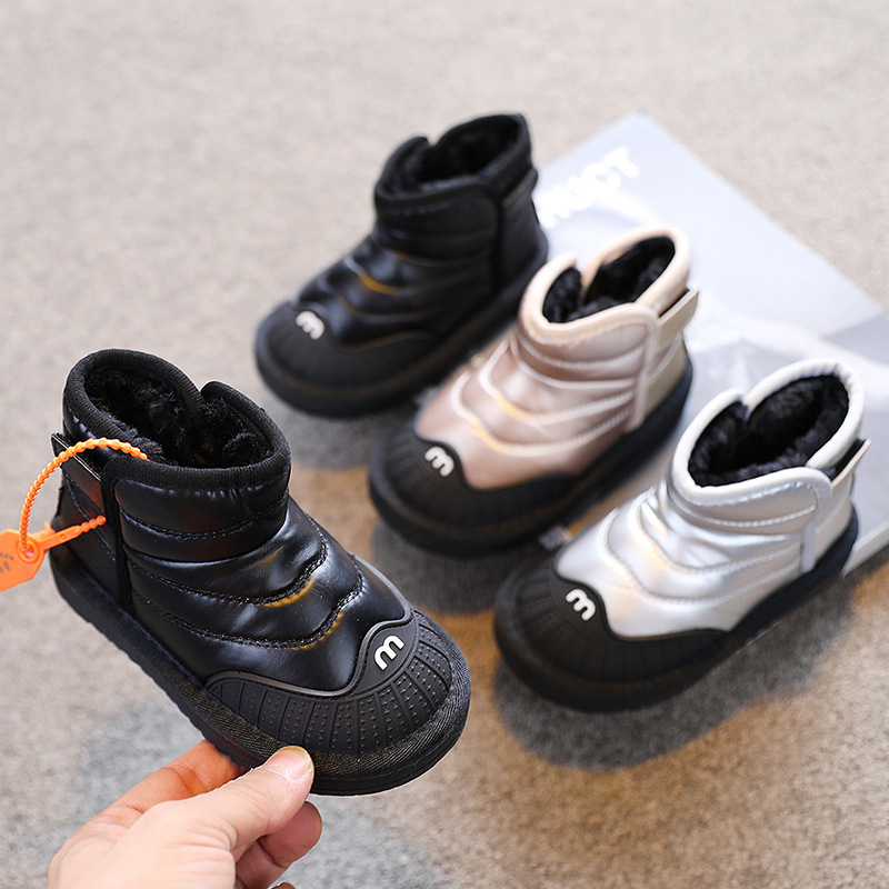 Детские хлопковые ботинки 2024, зимняя новинка, универсальная модель с защитным носком, короткие ботинки для мальчиков с флисовой подкладкой и утепленные зимние сапоги для девочек.