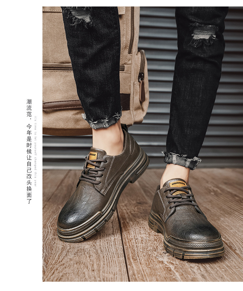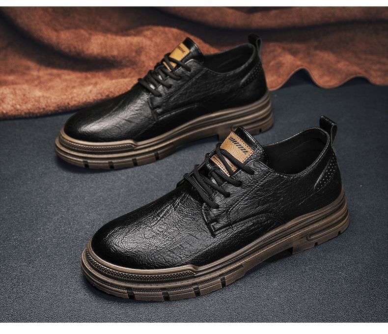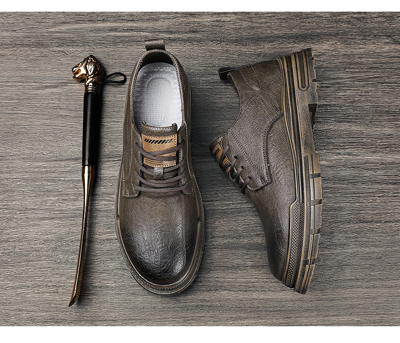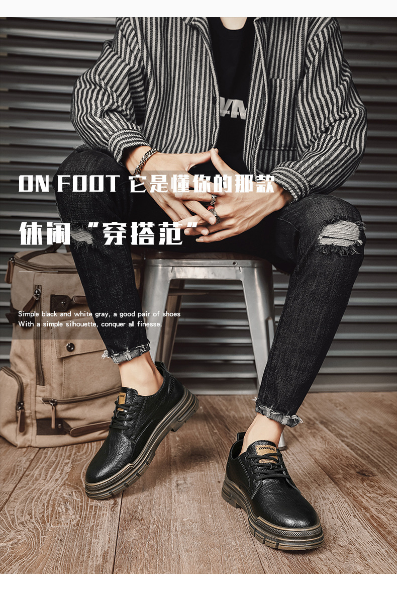 Кожаная обувь мужская обувь осенняя деловая одежда британский стиль повседневная мужская плоская подошва увеличена