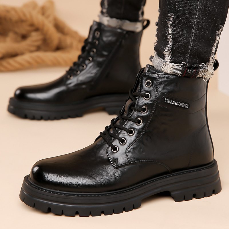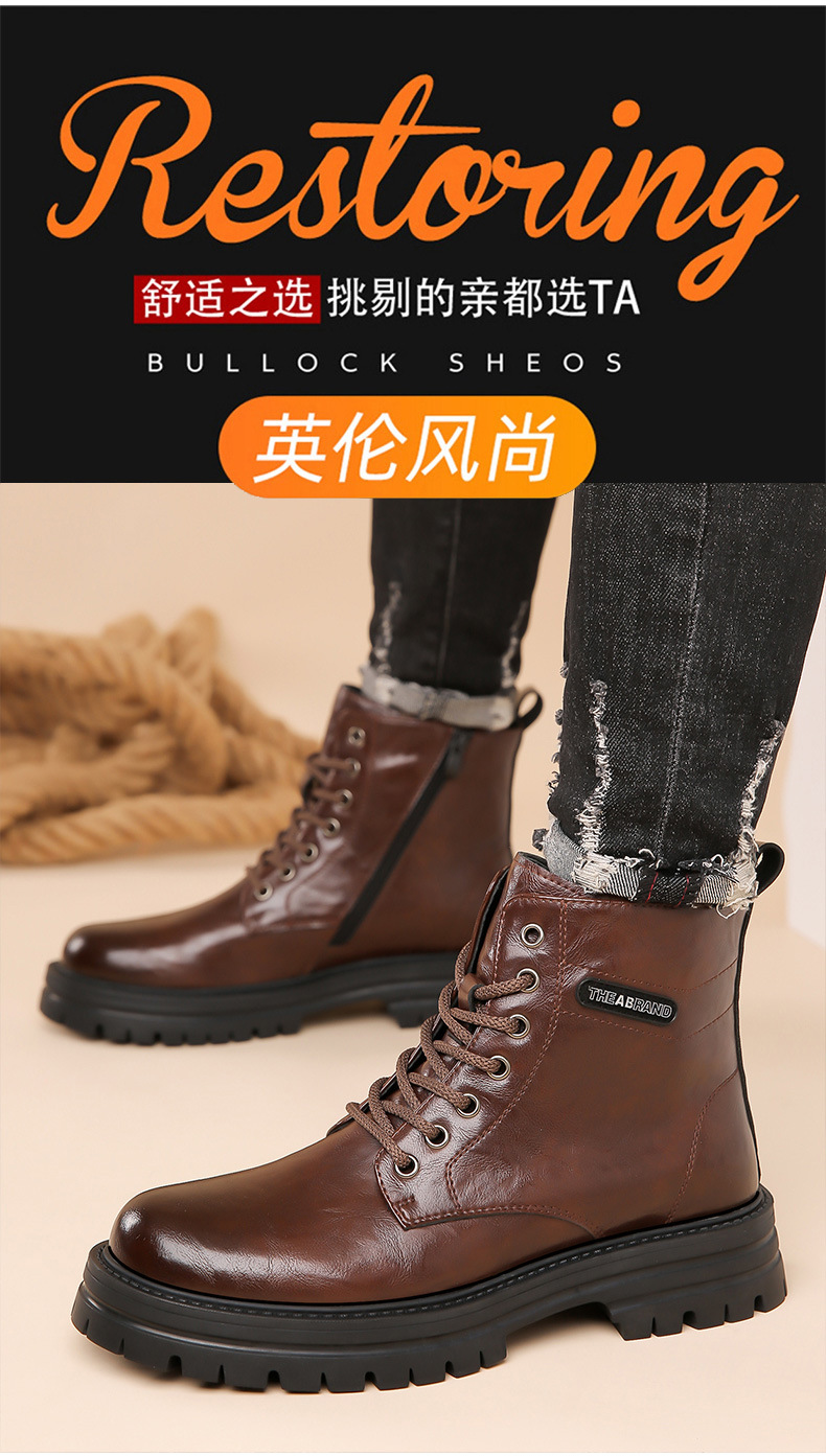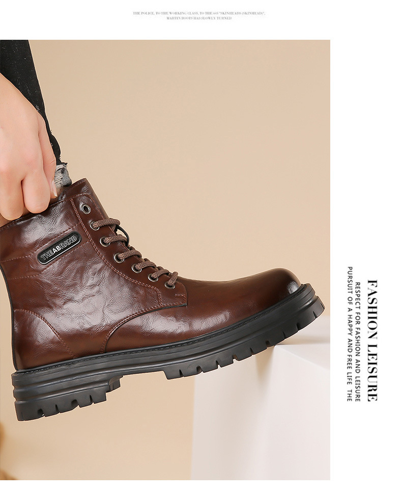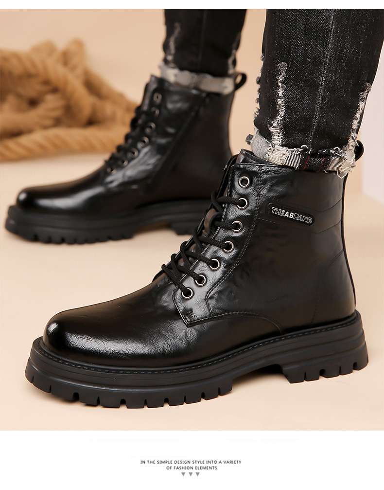 Ботинки Martin, мужские зимние теплые хлопчатобумажные ботинки на флисовой подкладке, мужская кожаная обувь с высоким берцем, зимние ботинки, модные мужские кожаные ботинки средней высоты из натуральной кожи