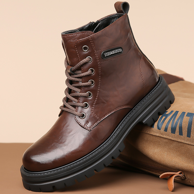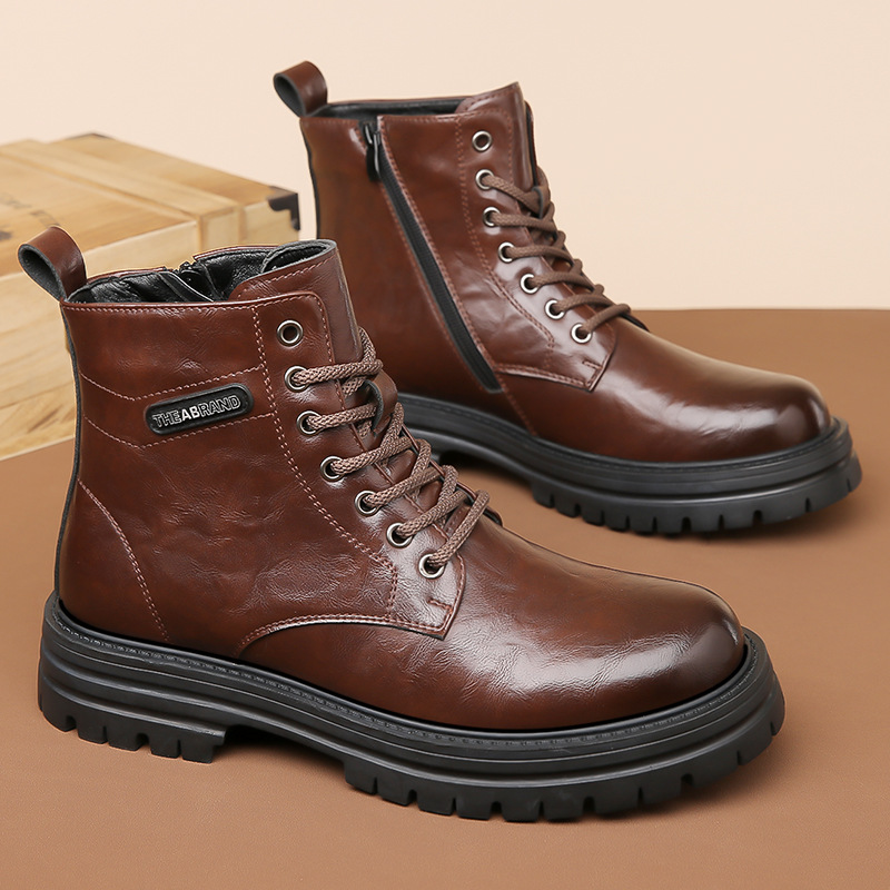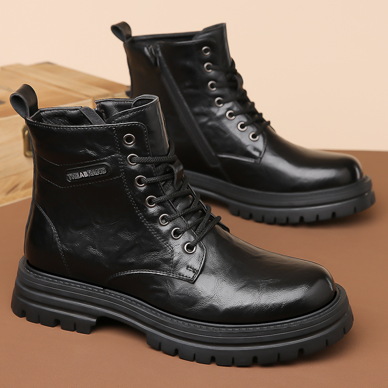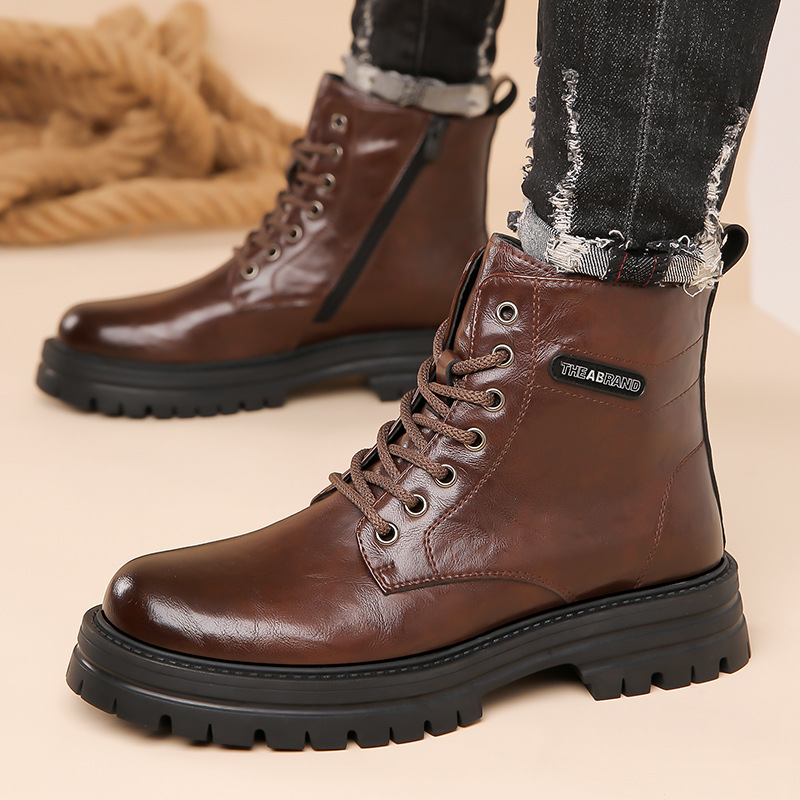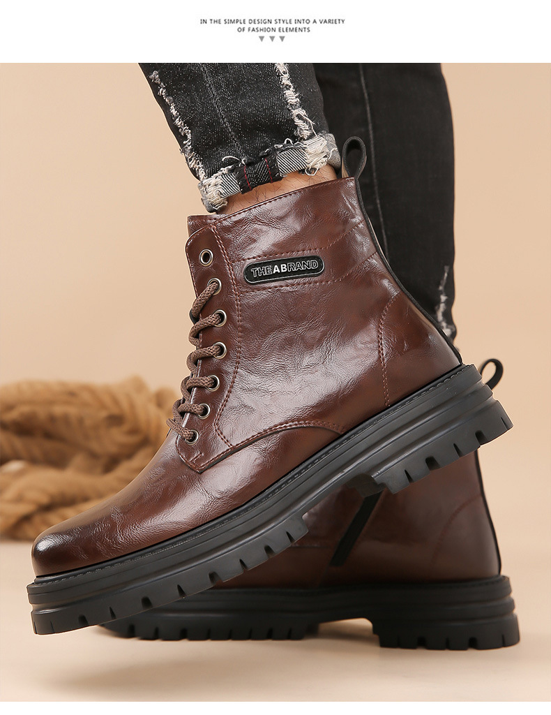 Ботинки Martin, мужские зимние теплые хлопчатобумажные ботинки на флисовой подкладке, мужская кожаная обувь с высоким берцем, зимние ботинки, модные мужские кожаные ботинки средней высоты из натуральной кожи