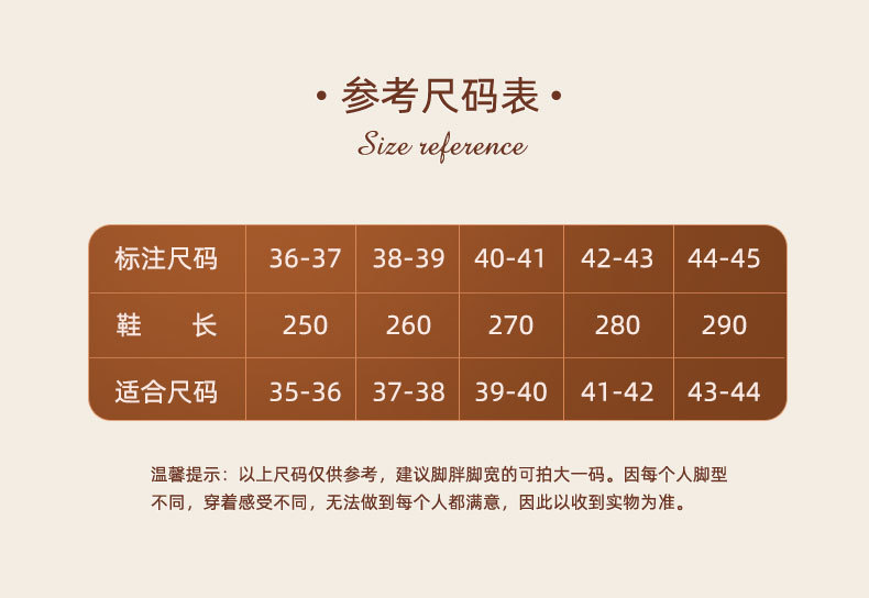 36-37 (подходит на размеры 35-36); 38-39 (подходит на размеры 37-38); 40-41 (подходит на размеры 39-40); 42-43 (подходит на размеры 41-42); 44-45 (подходит на размеры 43-44)
