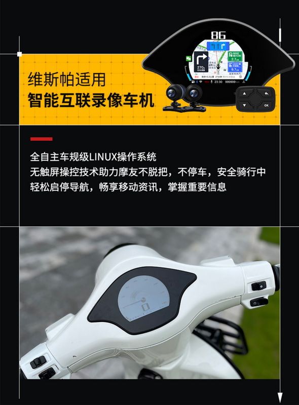 Система Smart Car для Vespa: оригинальный автомобильный интерфейс, неразрушающая установка, передняя одиночная камера, проекция на экран, навигация, электронное напоминание