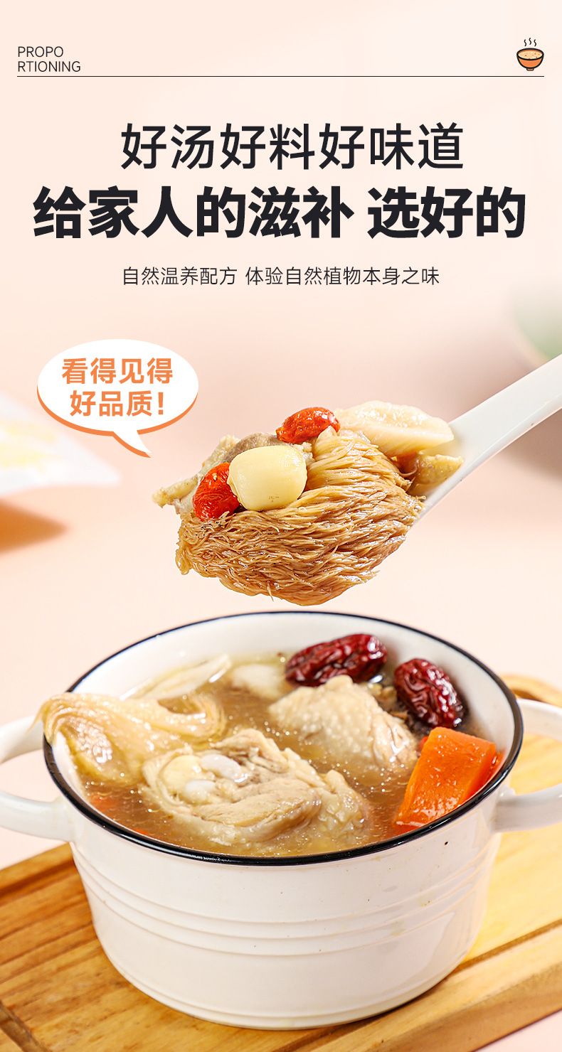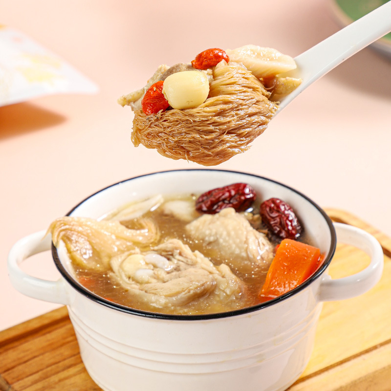 Грибной суп из головок обезьяньих грибов с приправами из старого куриного супа, полезный суп, грибной суп, питательный суп, натуральный согревающий для желудка