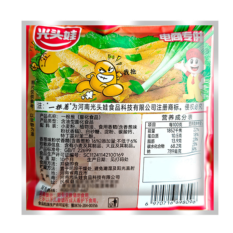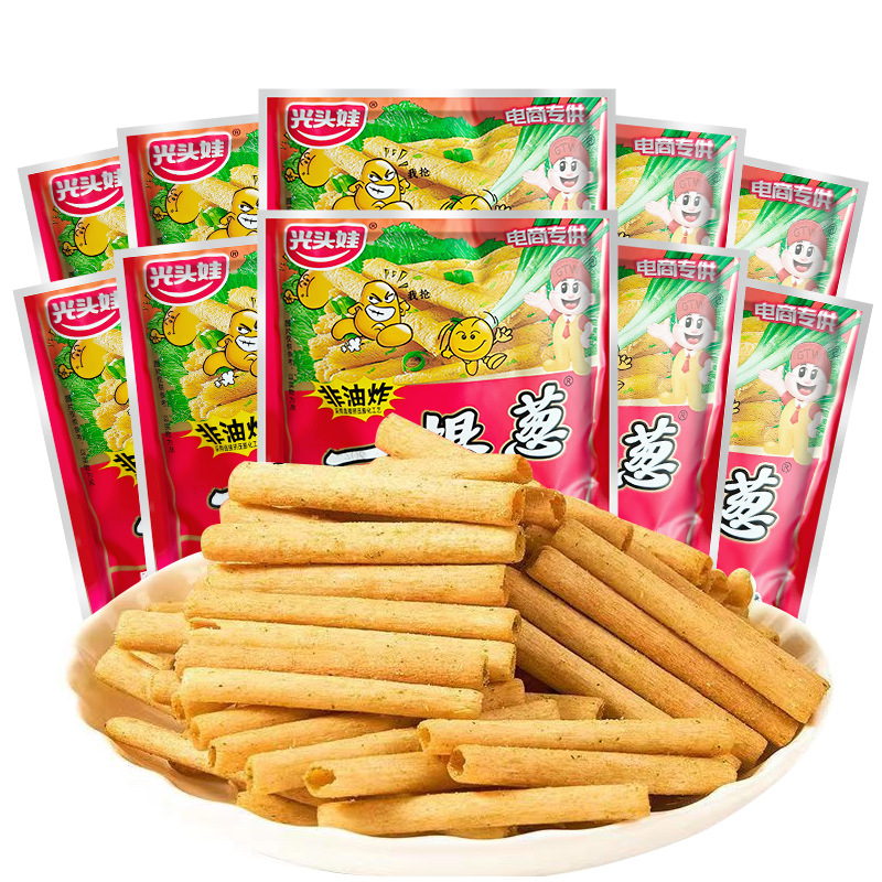 Лысый ребенок с зеленым ароматом в мешке для оптовой продажи пухленой еды для отдыха Ностальгические закуски в кампусе
