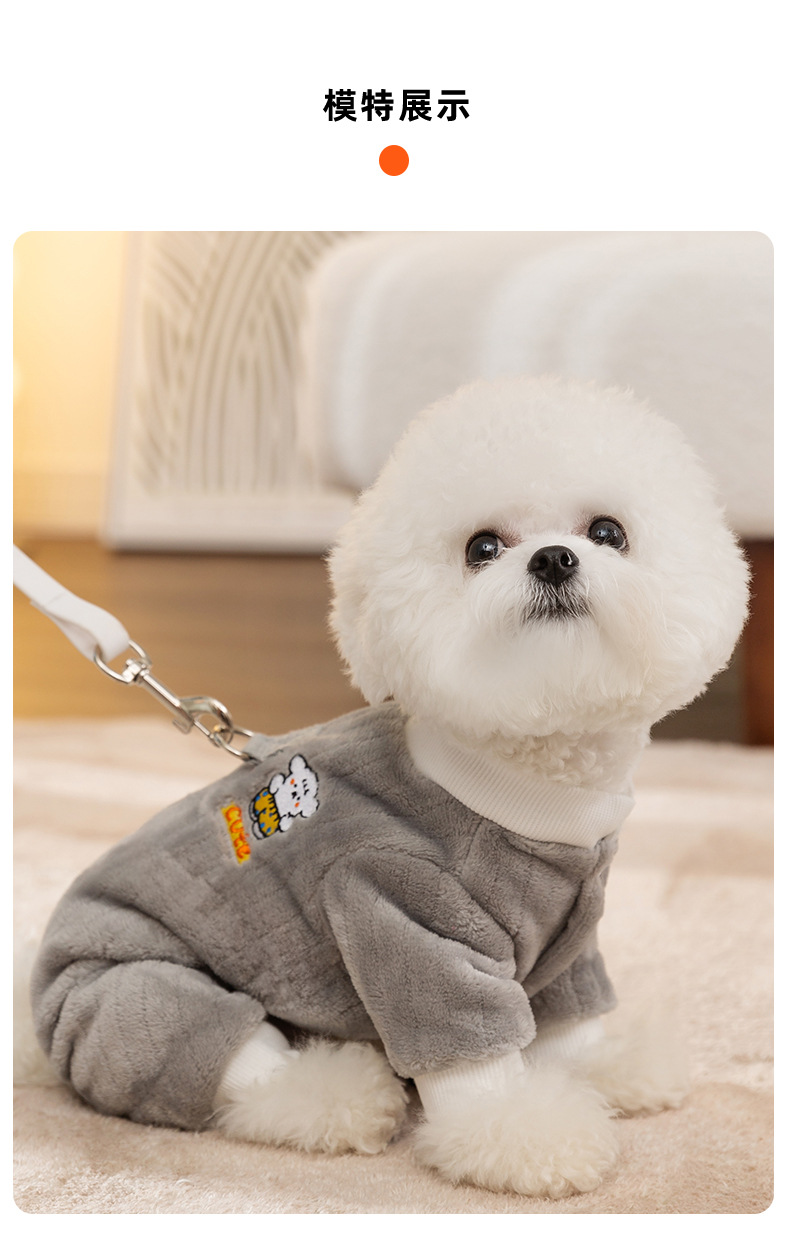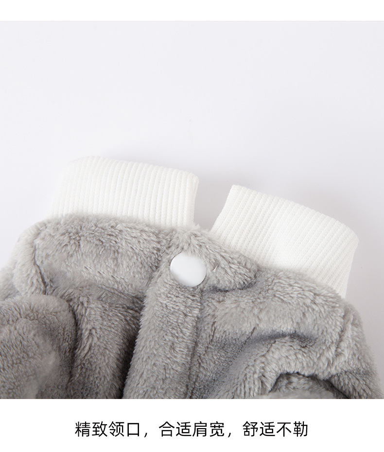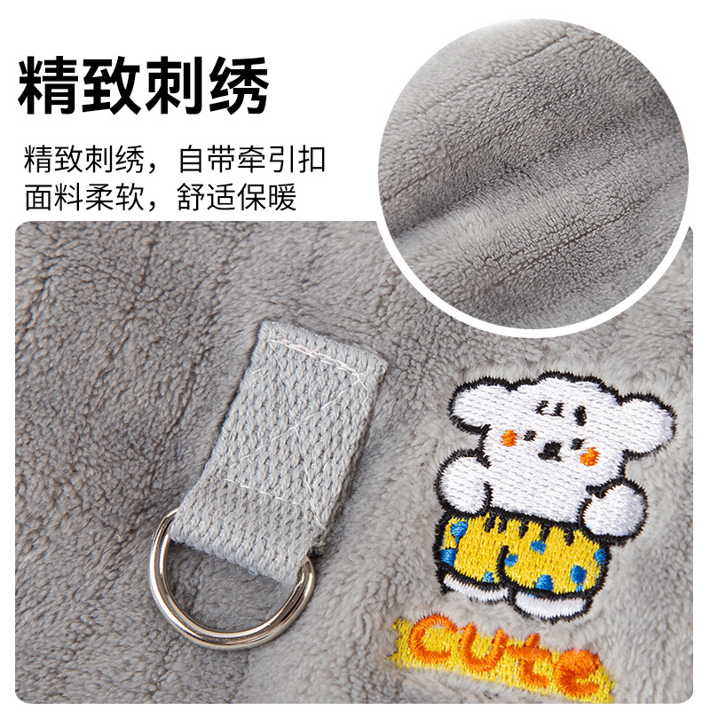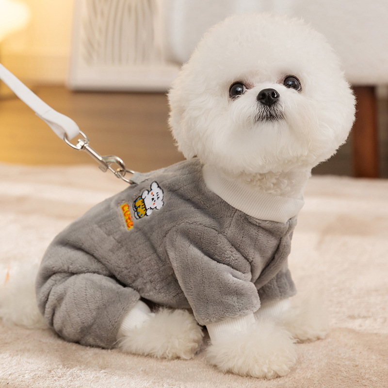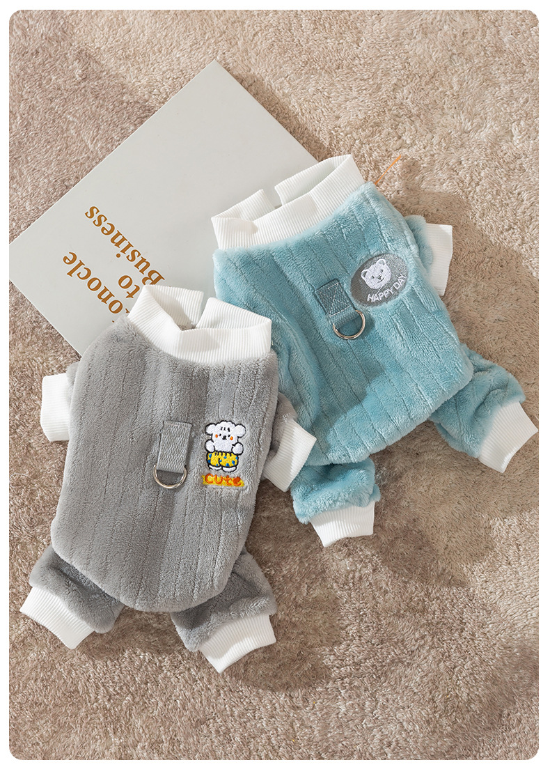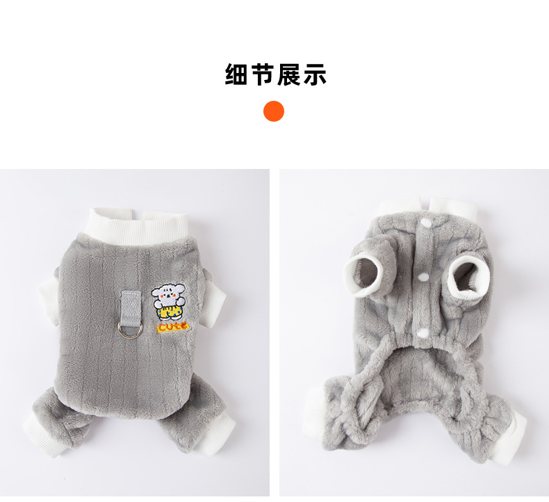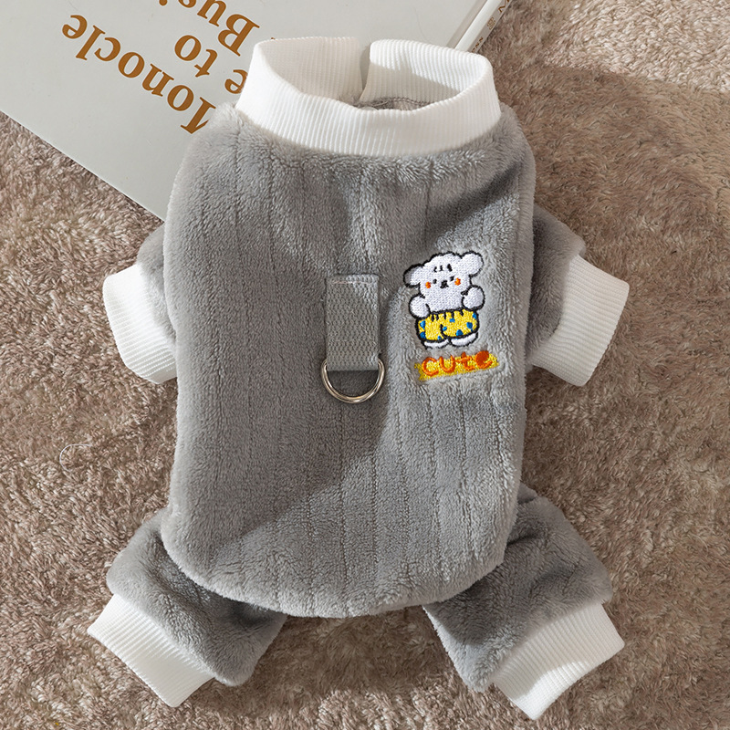 Серая полосатая фланелевая одежда для собак с вышивкой, на четырех лапах, с креплением для поводка, подходит для прогулок весной и осенью, теплая и толстая, оптом.