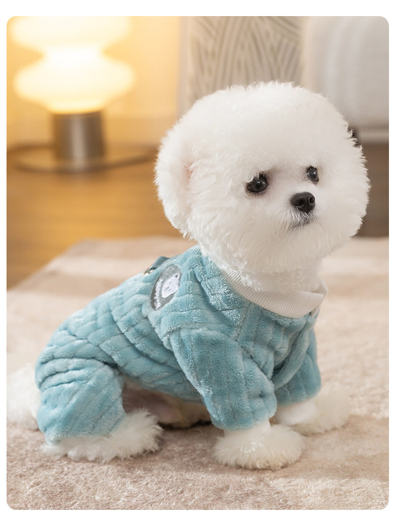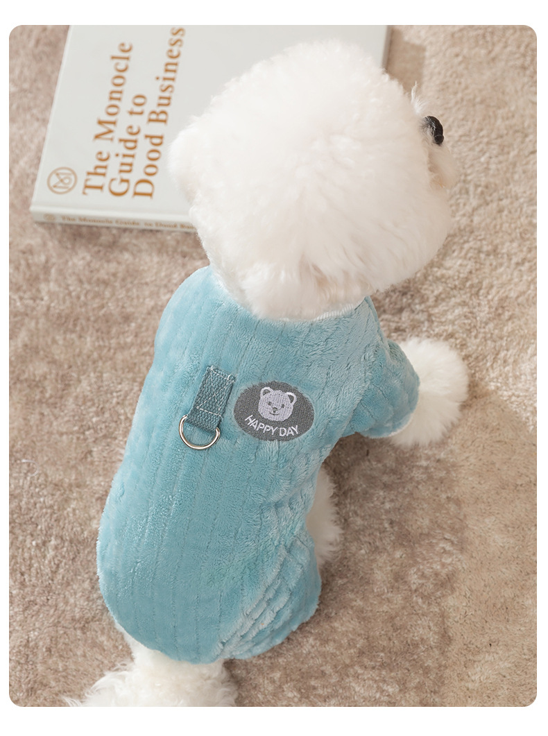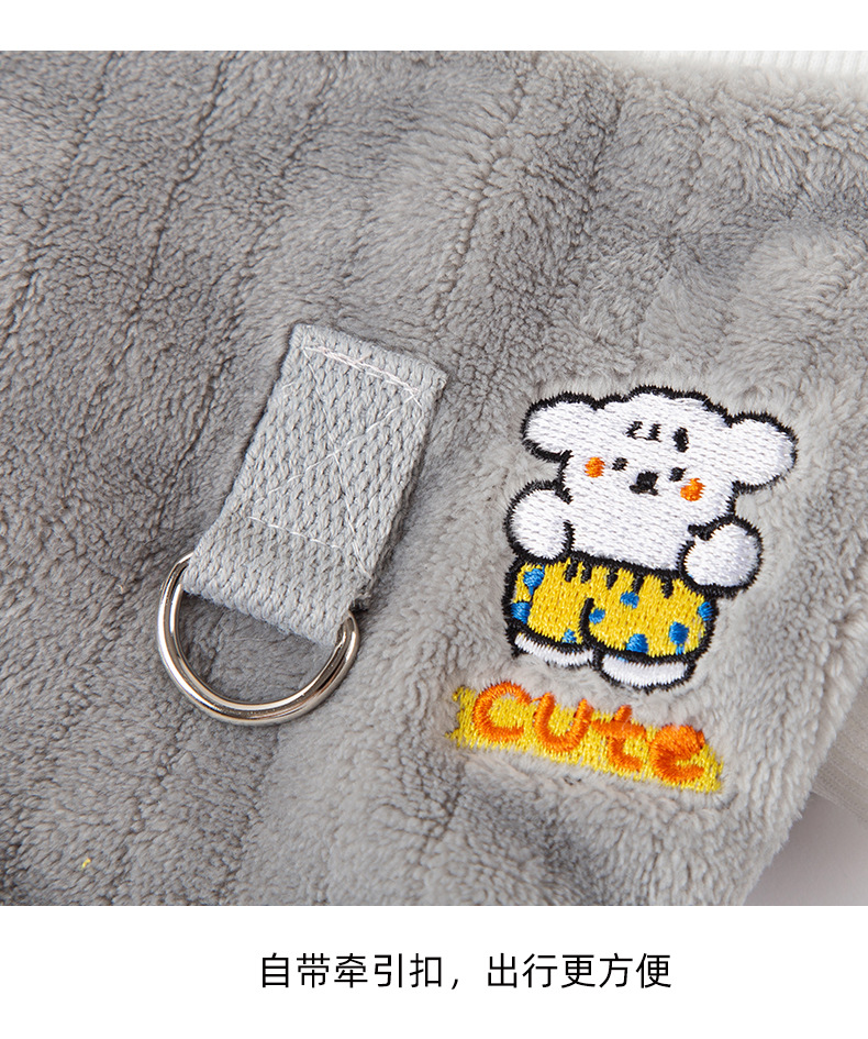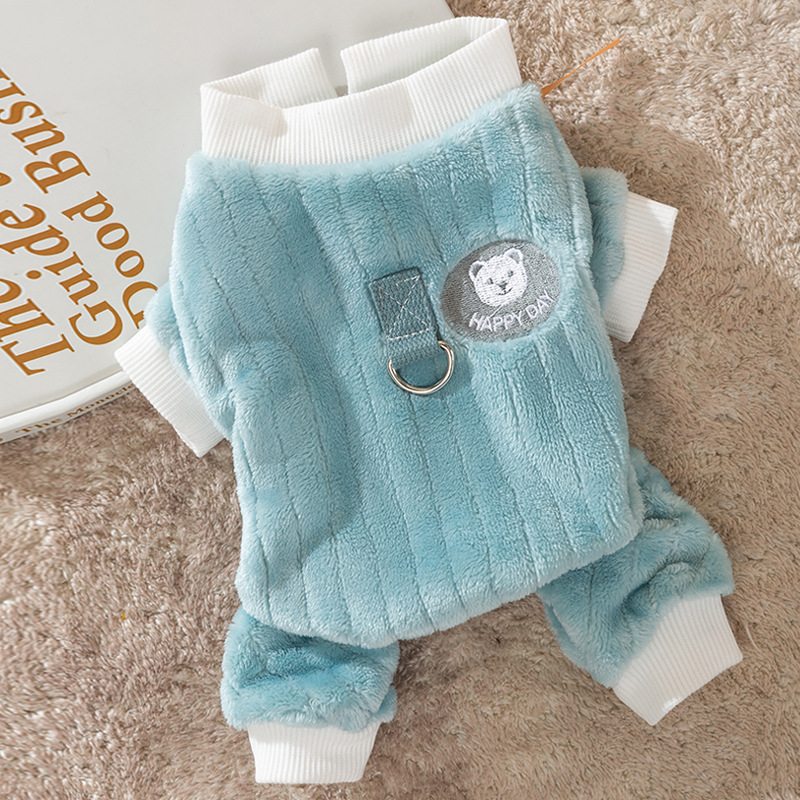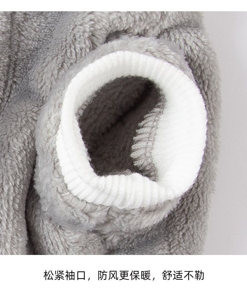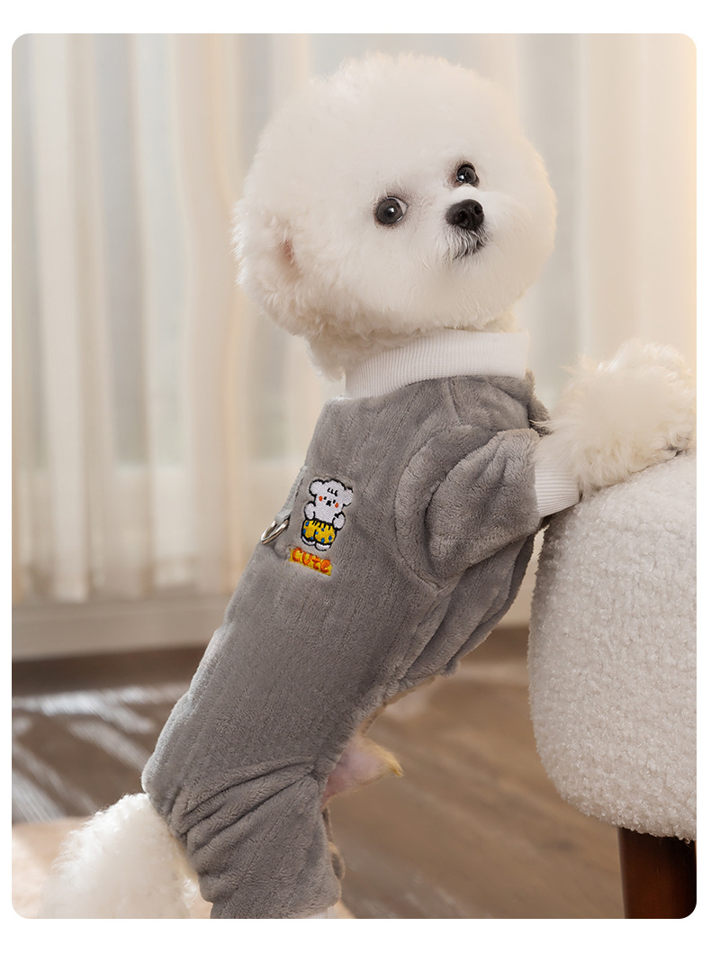 Серая полосатая фланелевая одежда для собак с вышивкой, на четырех лапах, с креплением для поводка, подходит для прогулок весной и осенью, теплая и толстая, оптом.
