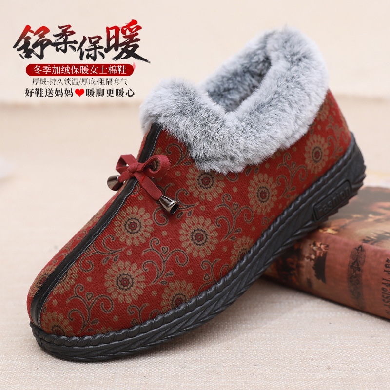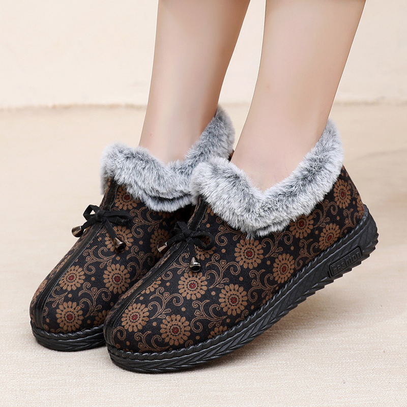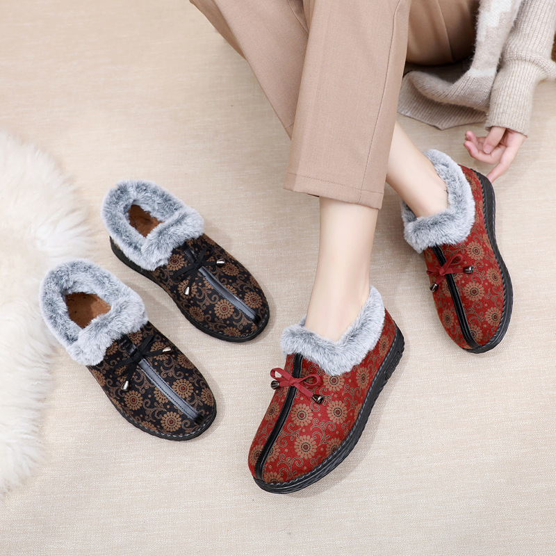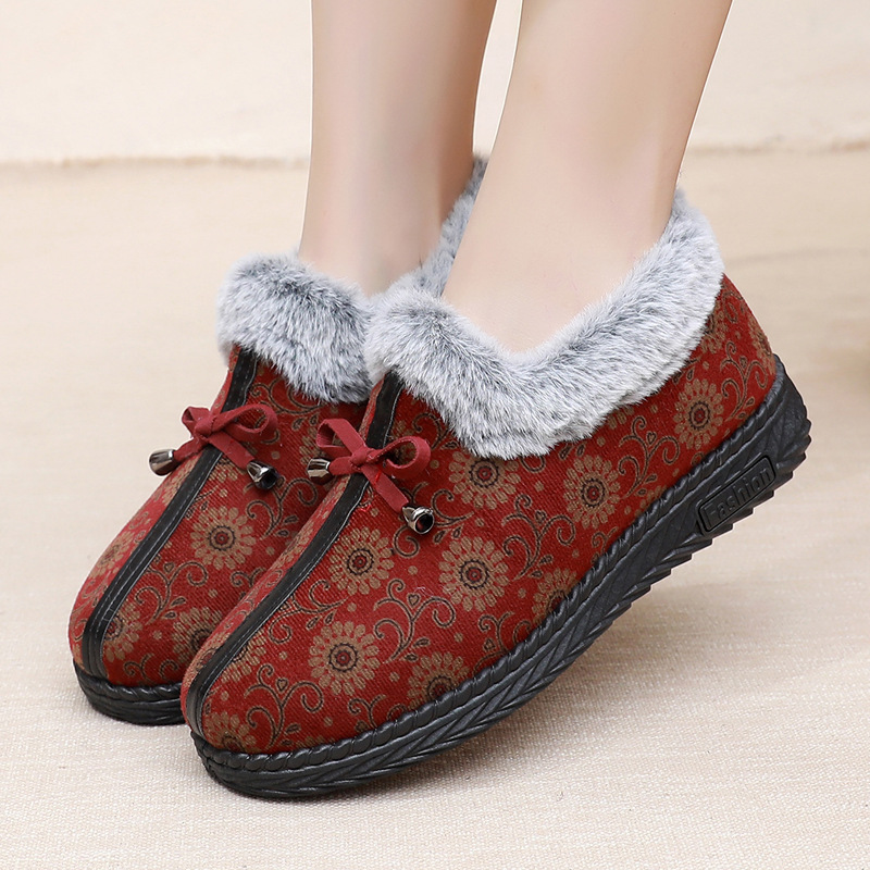 Новая зимняя Тканевая обувь Old Beijing, женские сапоги из плотной теплой хлопковой ткани на флисовой подкладке, Нескользящие хлопковые сапоги на мягкой подошве для женщин среднего и пожилого возраста, Женская хлопковая обувь