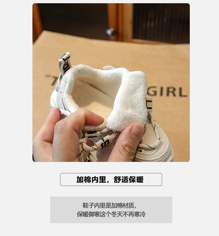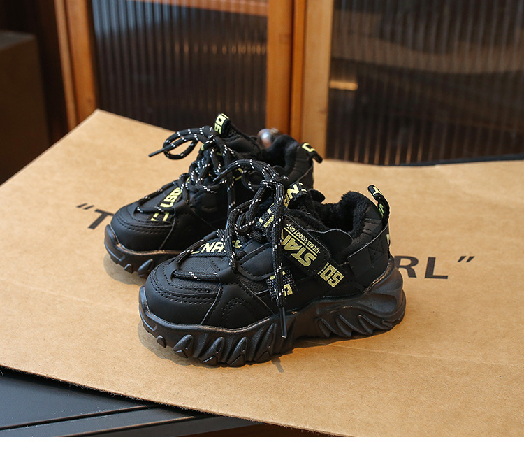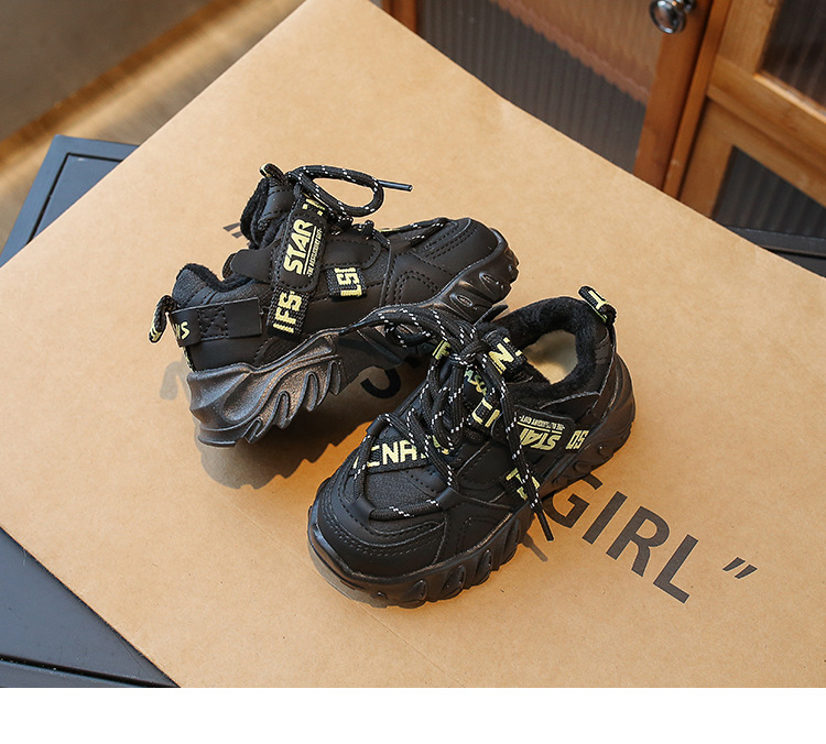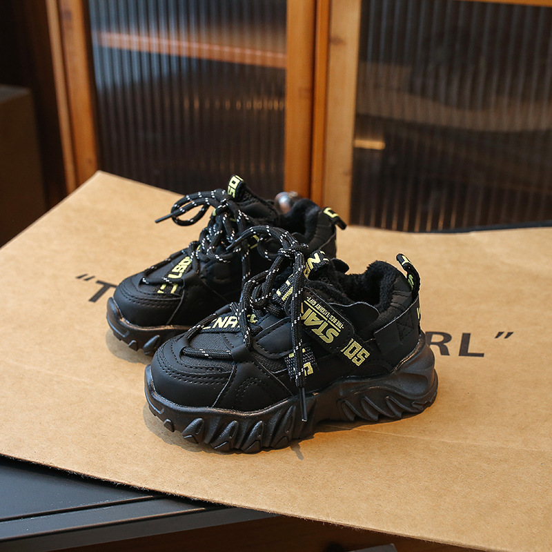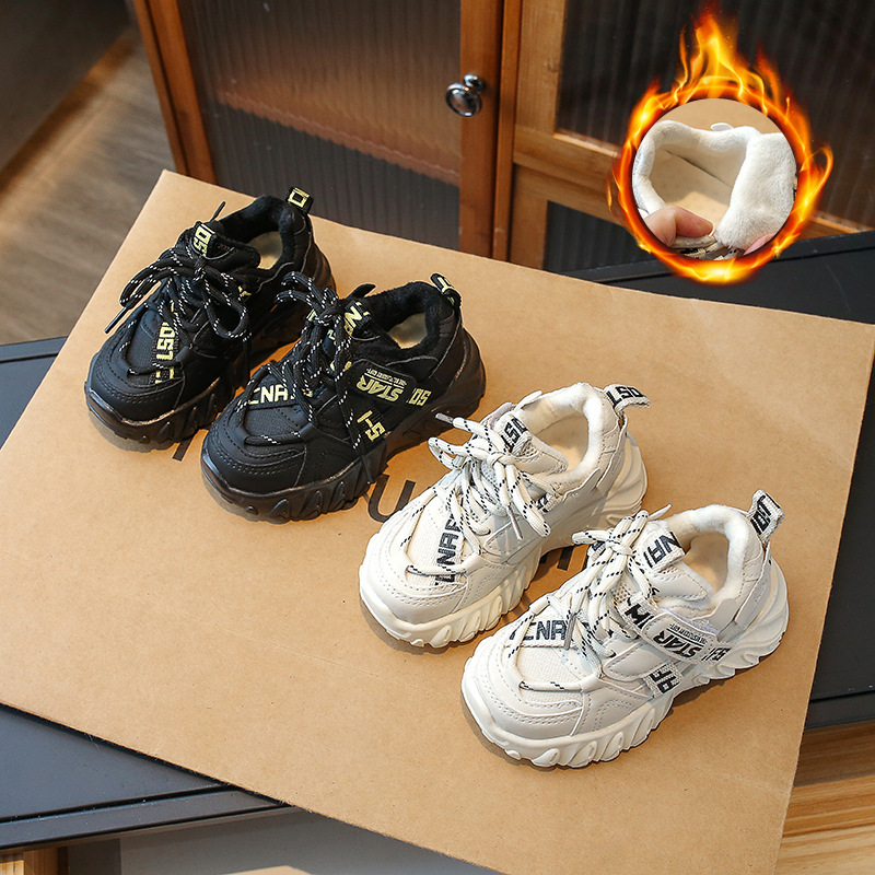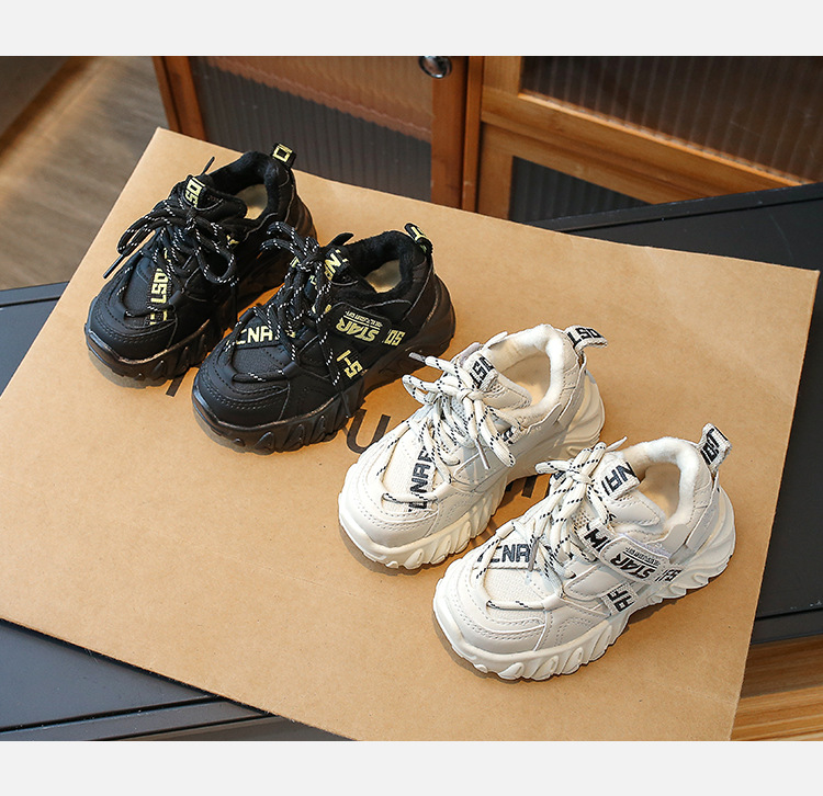 Обувь папы для мальчиков 2024 осень и зима новая детская теплая и бархатная спортивная обувь