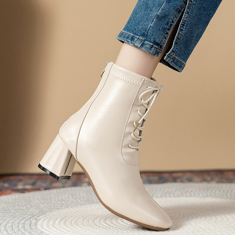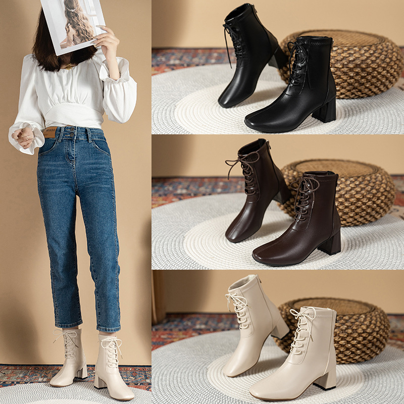 Ботинки женские 2023 осенне-зимние новые ботинки Martin на высоком каблуке на молнии с квадратным носком толстые короткие сапоги повседневные модные женские сапоги