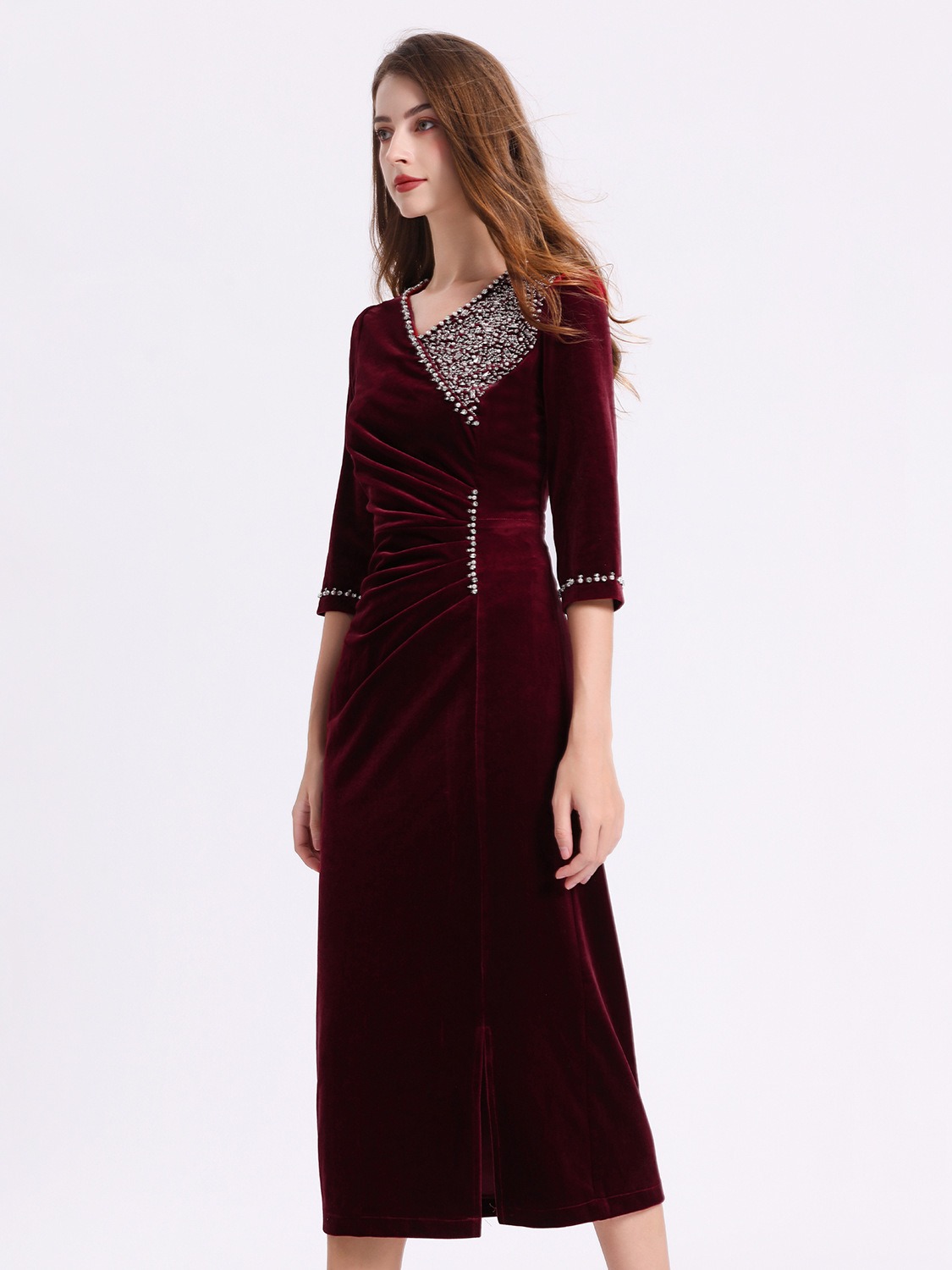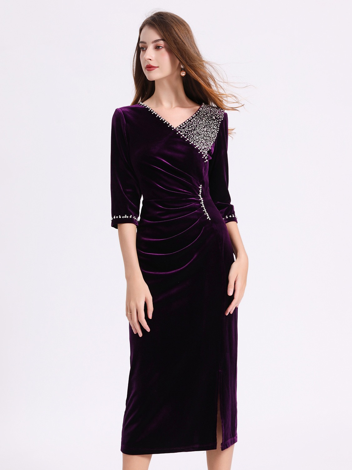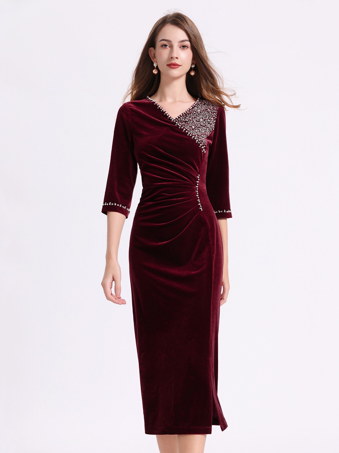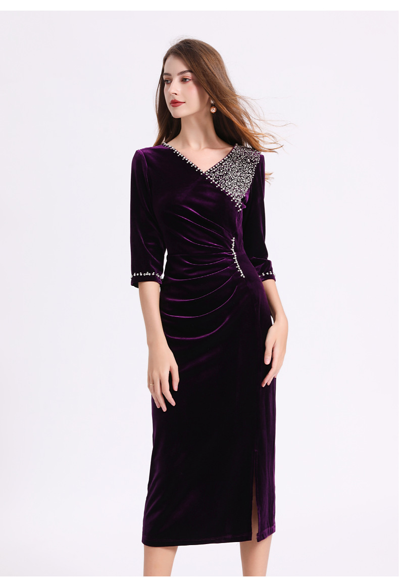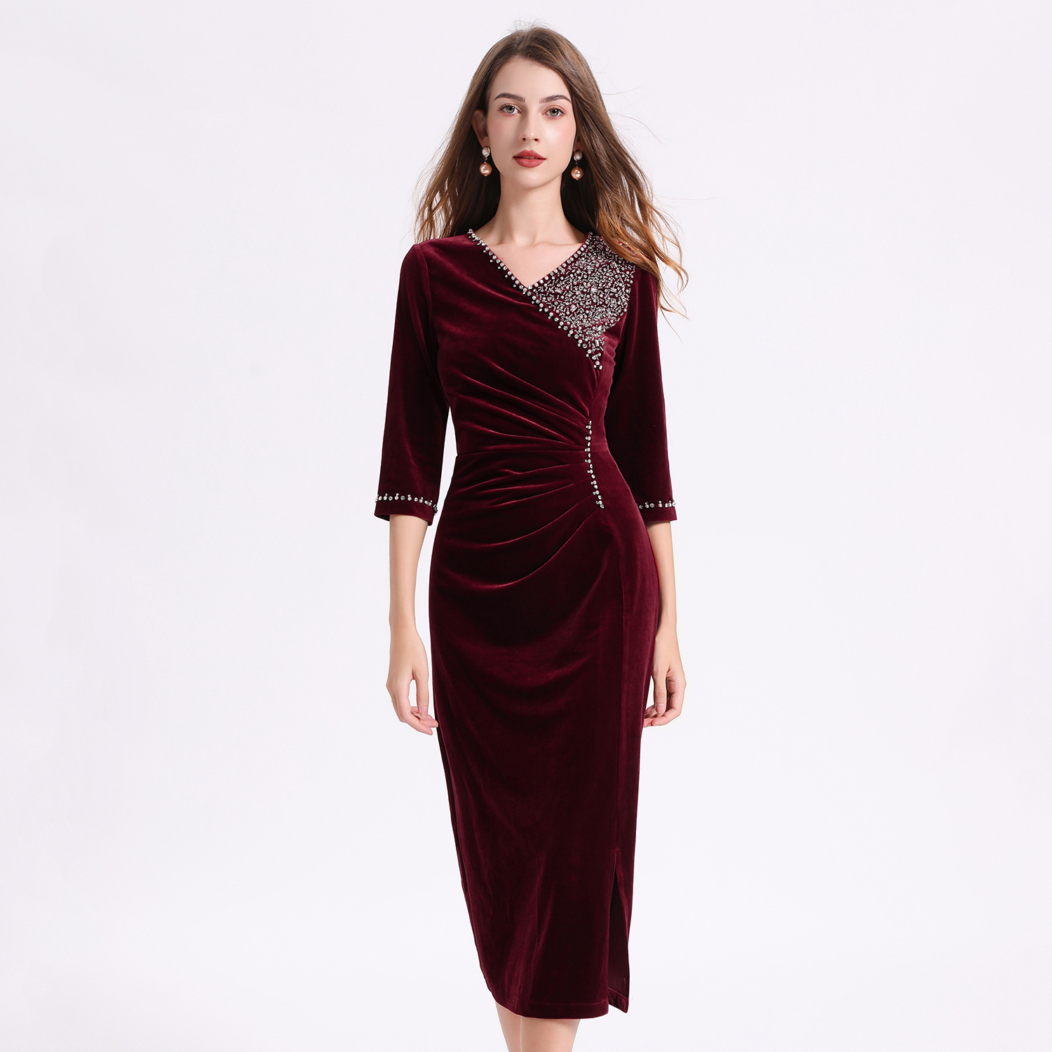 Шэньчжэнь бренд высокого класса свадебный банкет среднего возраста платье для посещения свадьбы Счастливая Мать-в-законе мать-в-законе платье осень и зима бархатное платье женщин