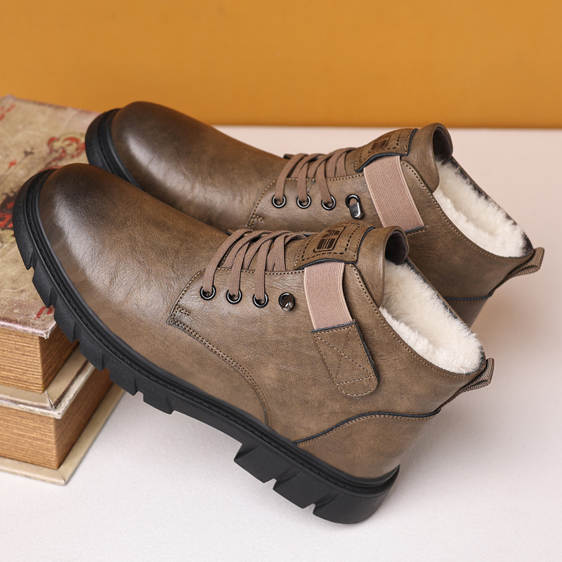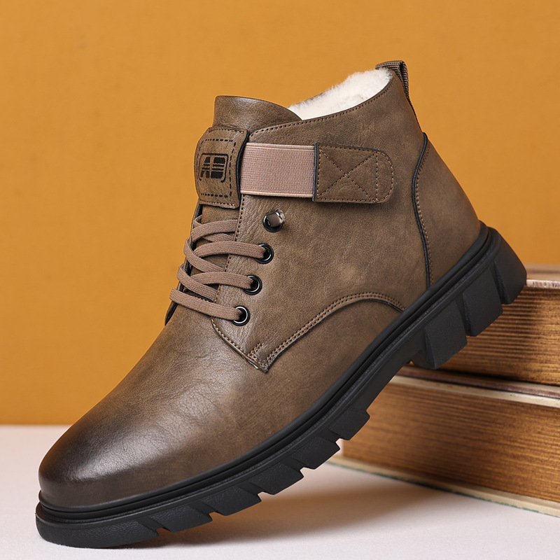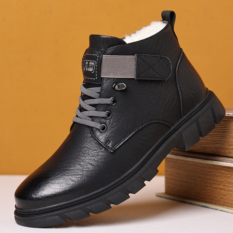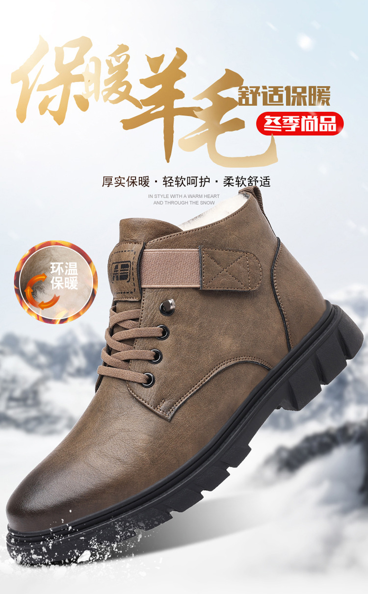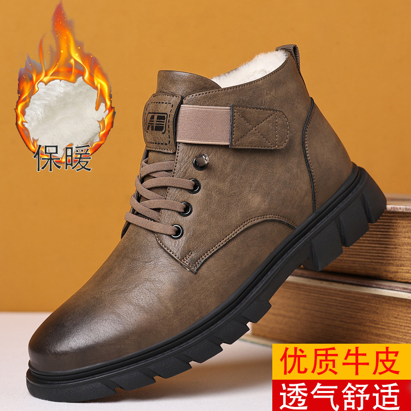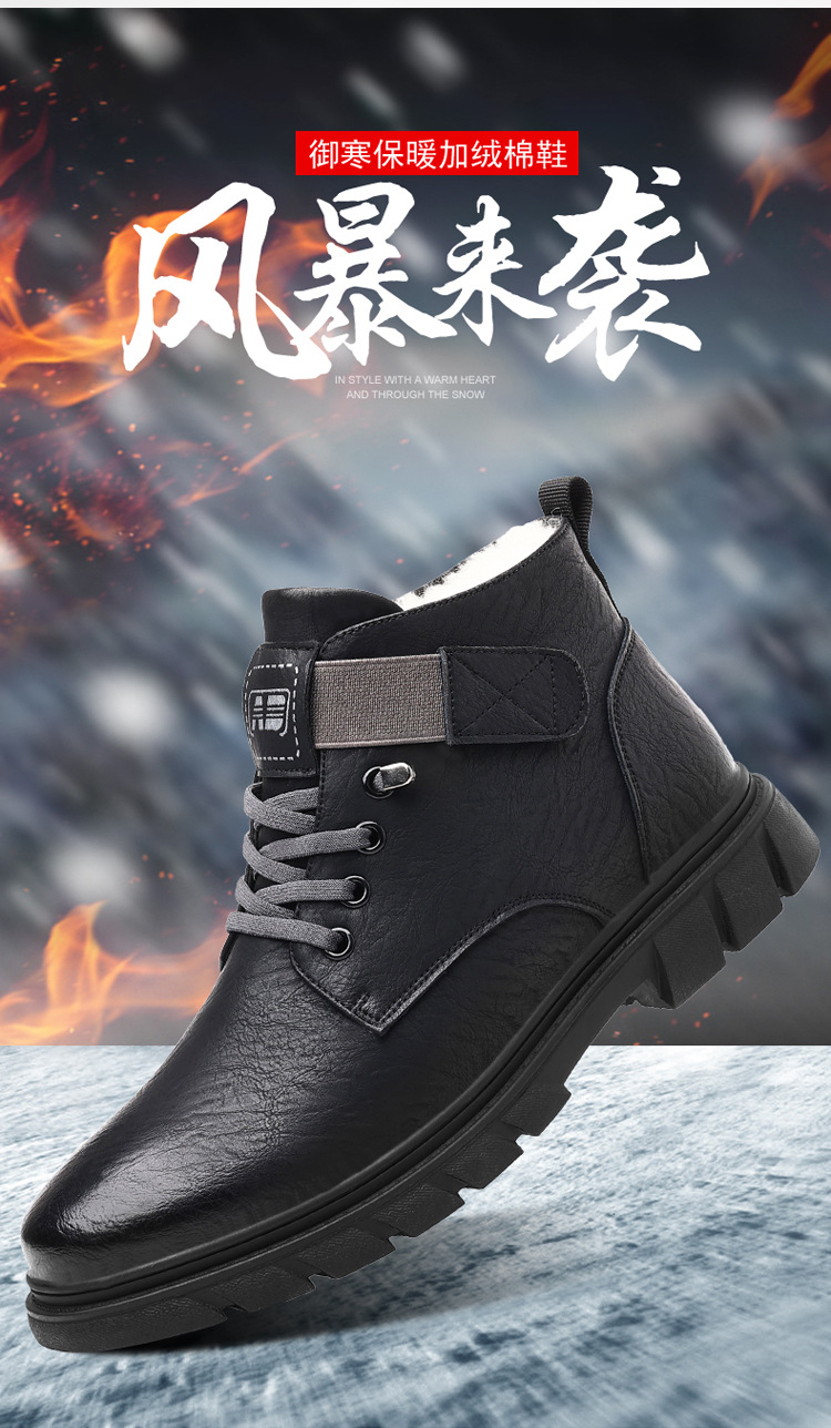 Осенне-зимняя новая мужская хлопковая обувь, утолщенная теплая износостойкая Нескользящая повседневная мужская хлопковая обувь с высоким берцем на флисовой подкладке, Уличная обувь оптом